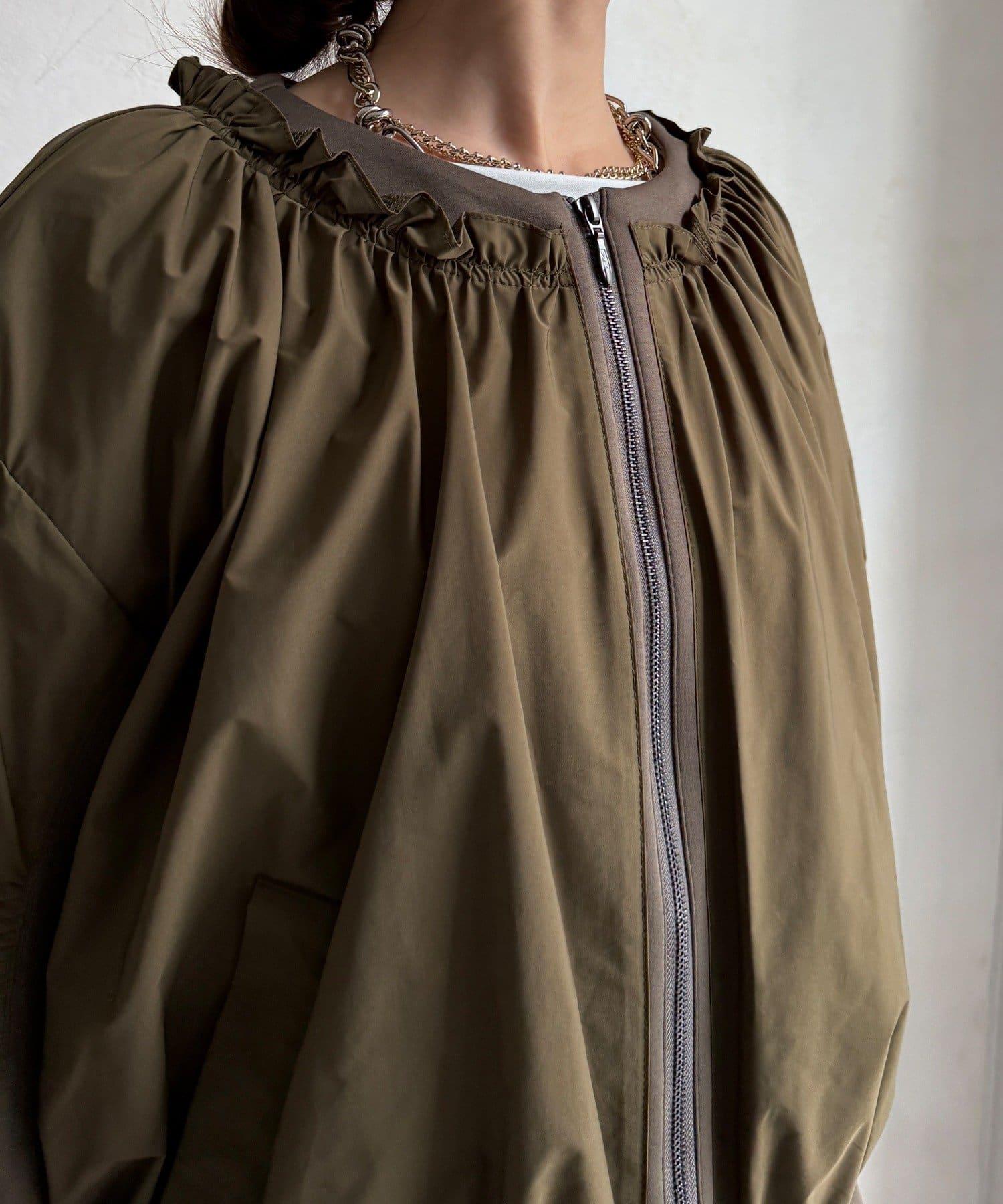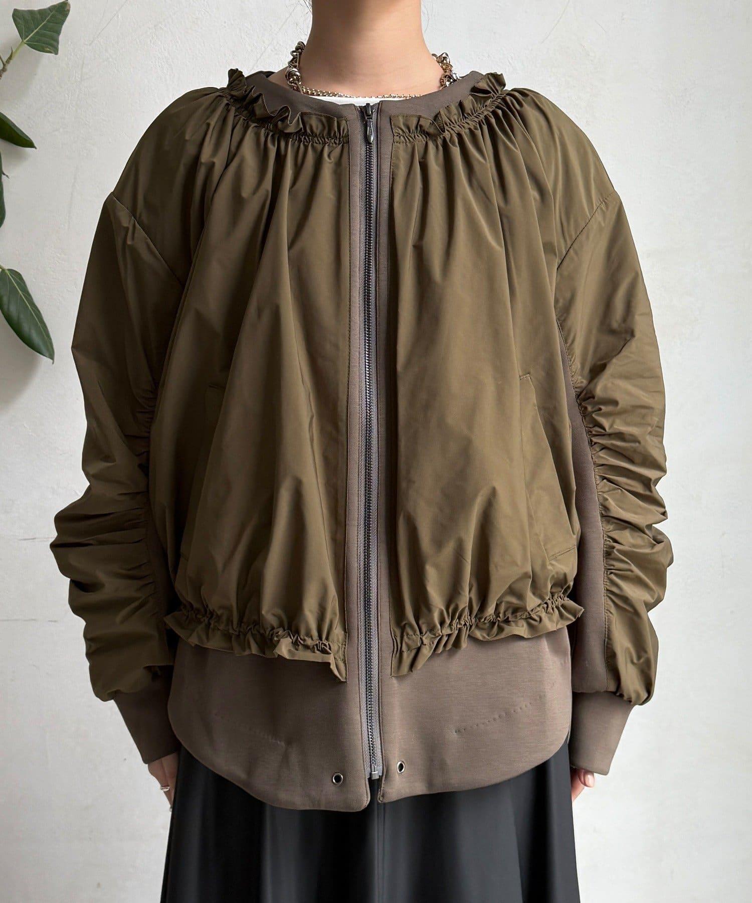 不同質地的組合呈現出立體感,下襬、袖子和頸部的褶皺增添了女性的蓬鬆感和動感!