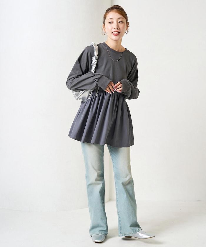 為了減弱層疊造型的甜美感,可搭配修身牛仔褲或直筒長褲,以達到良好的平衡!