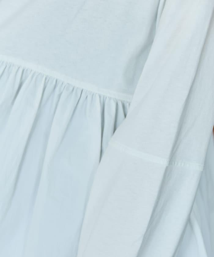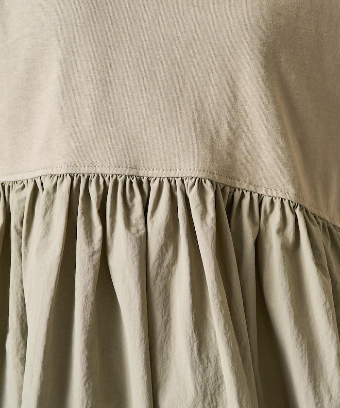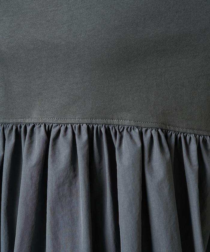 不同材質的混搭,衣身採用柔軟的剪裁和縫製,下襬則採用輕薄的編織面料。