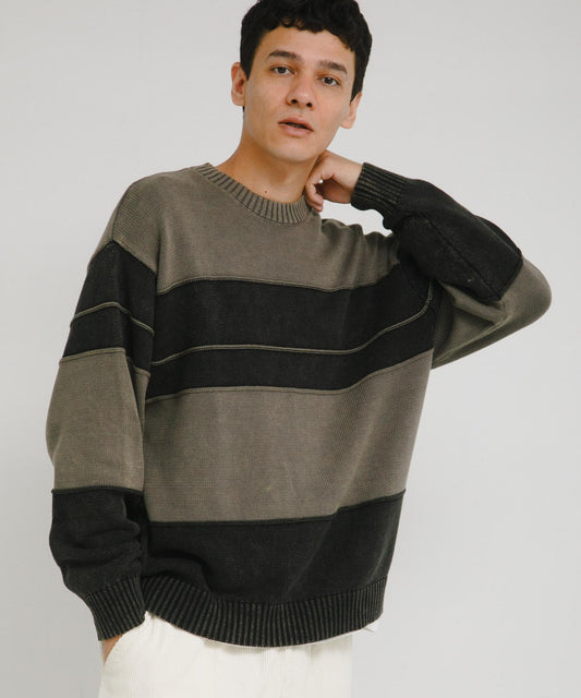 這款針織套衫將不同的線形設計組合在一起,就像拼接一樣。
