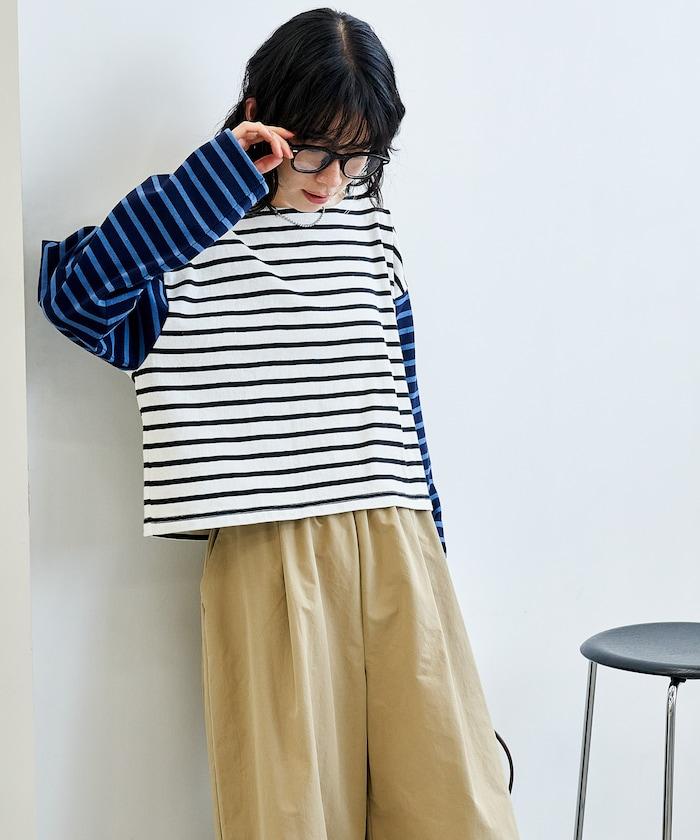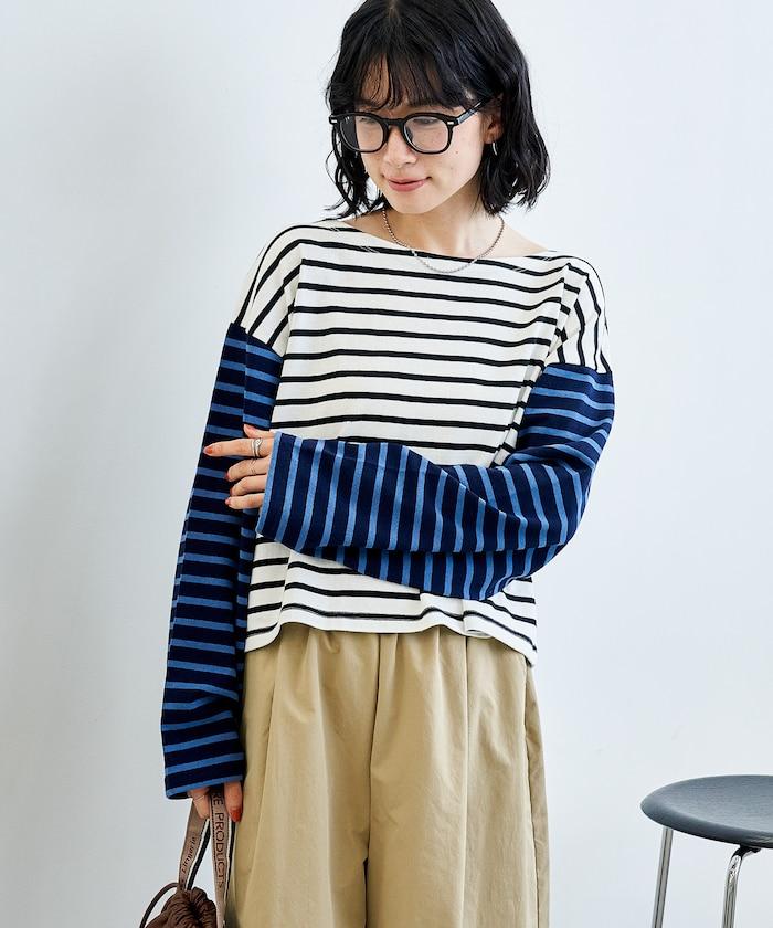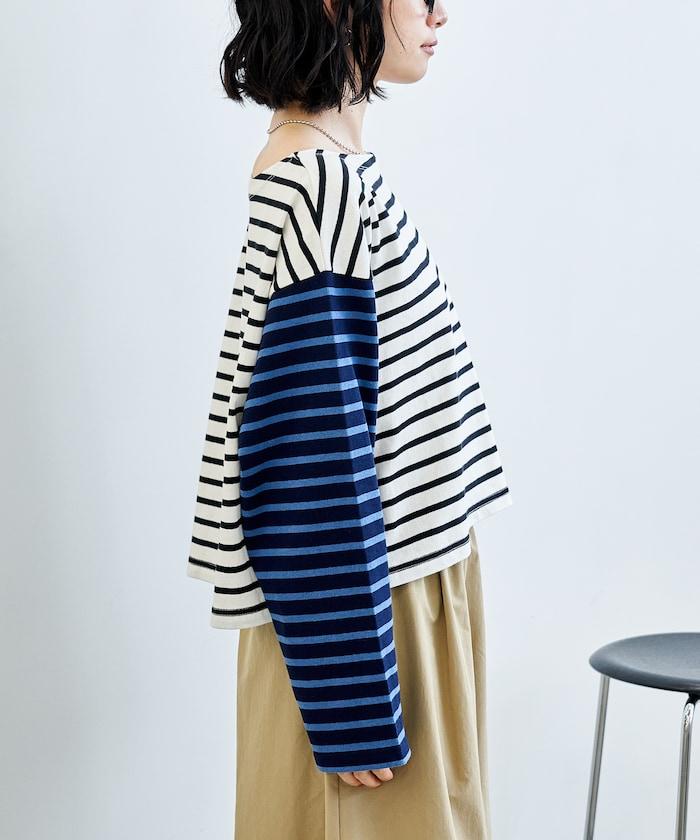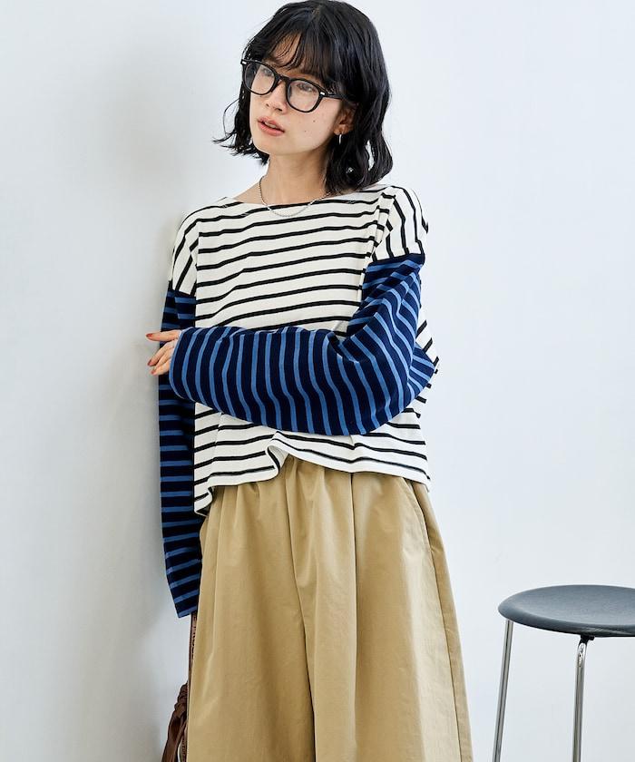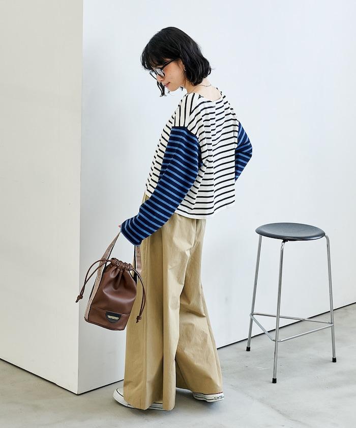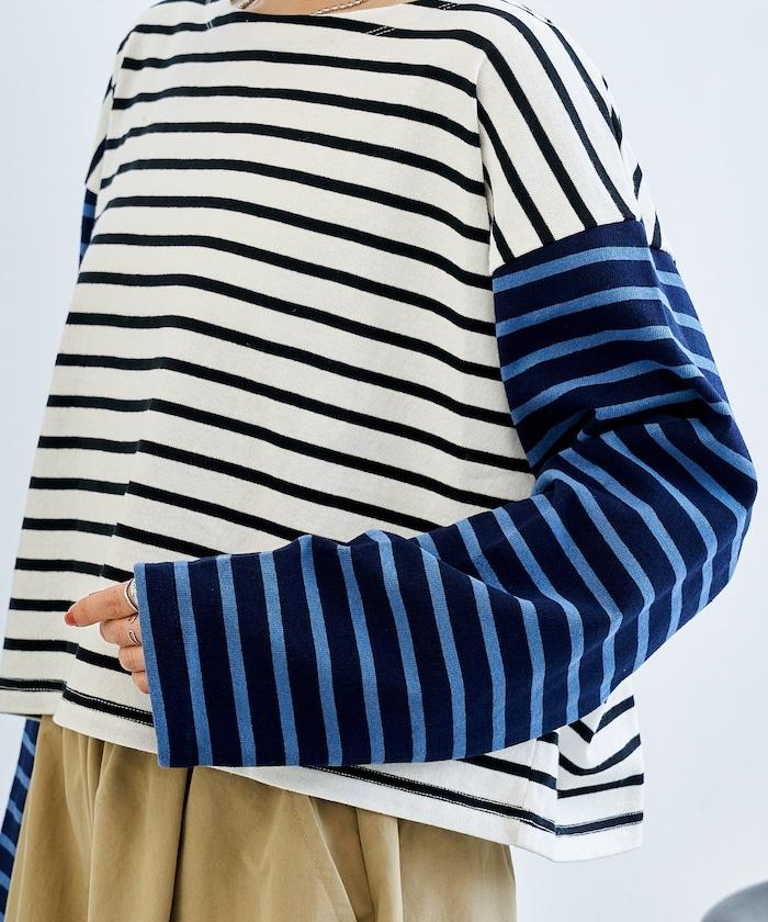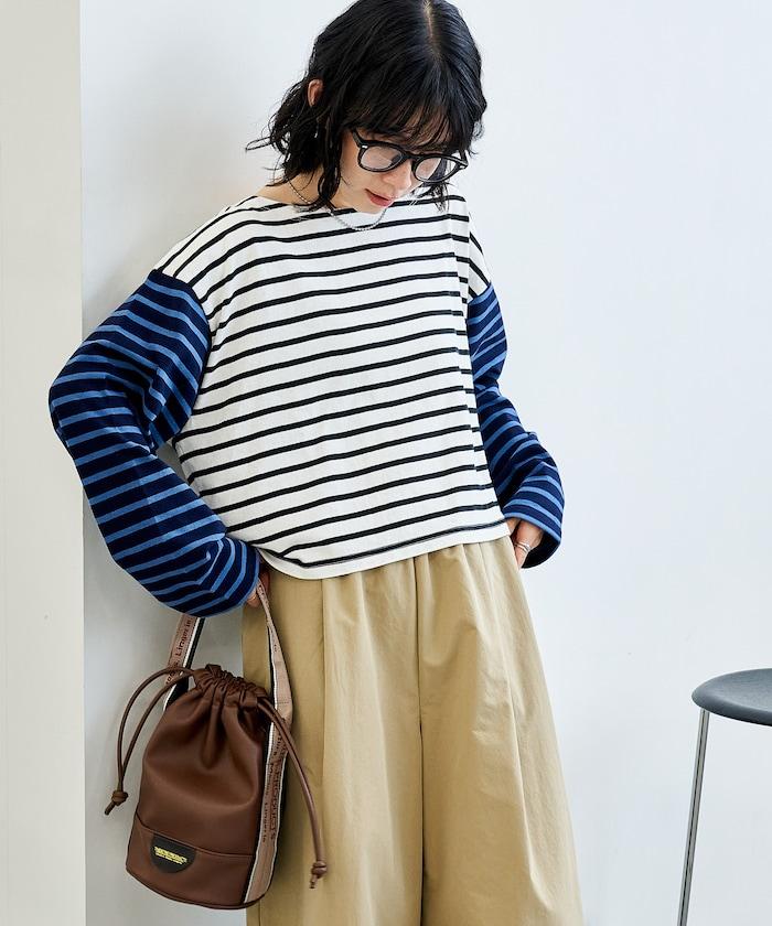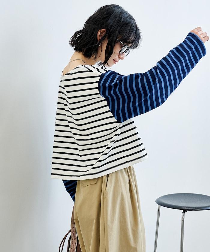 邊飾上衣,衣身和衣袖採用撞色設計,令人眼前一亮。