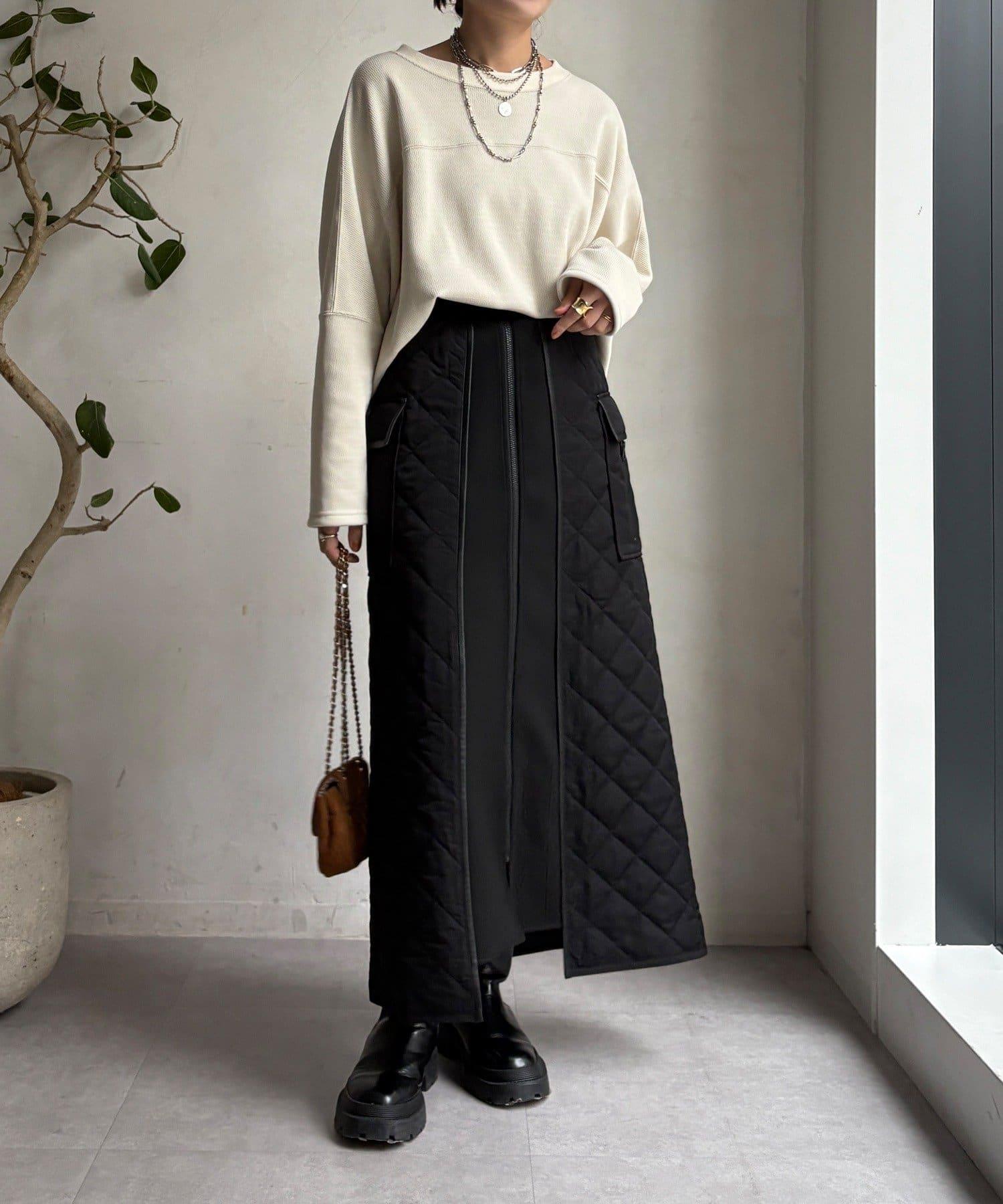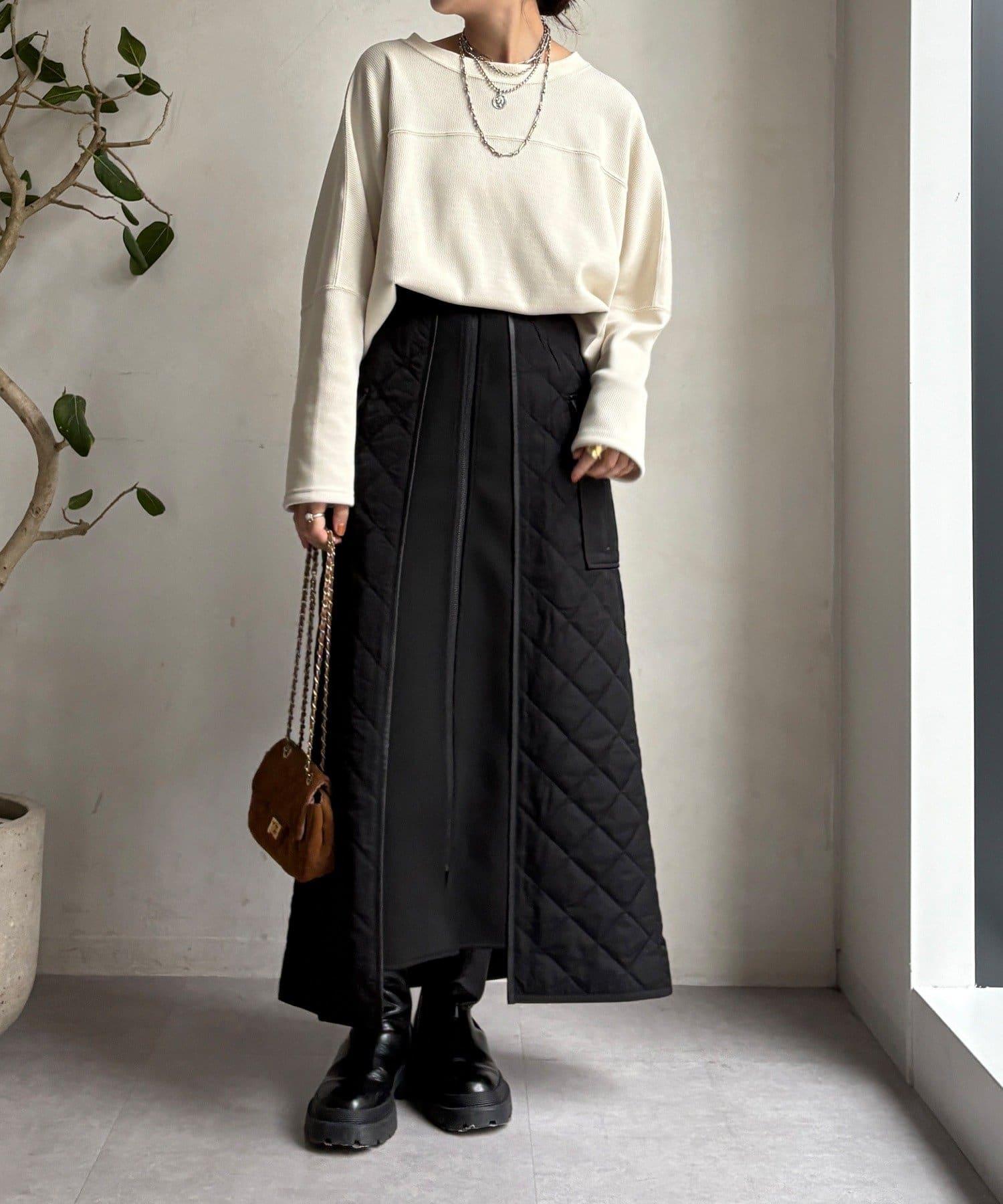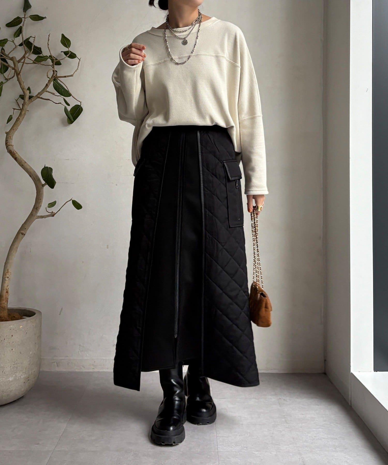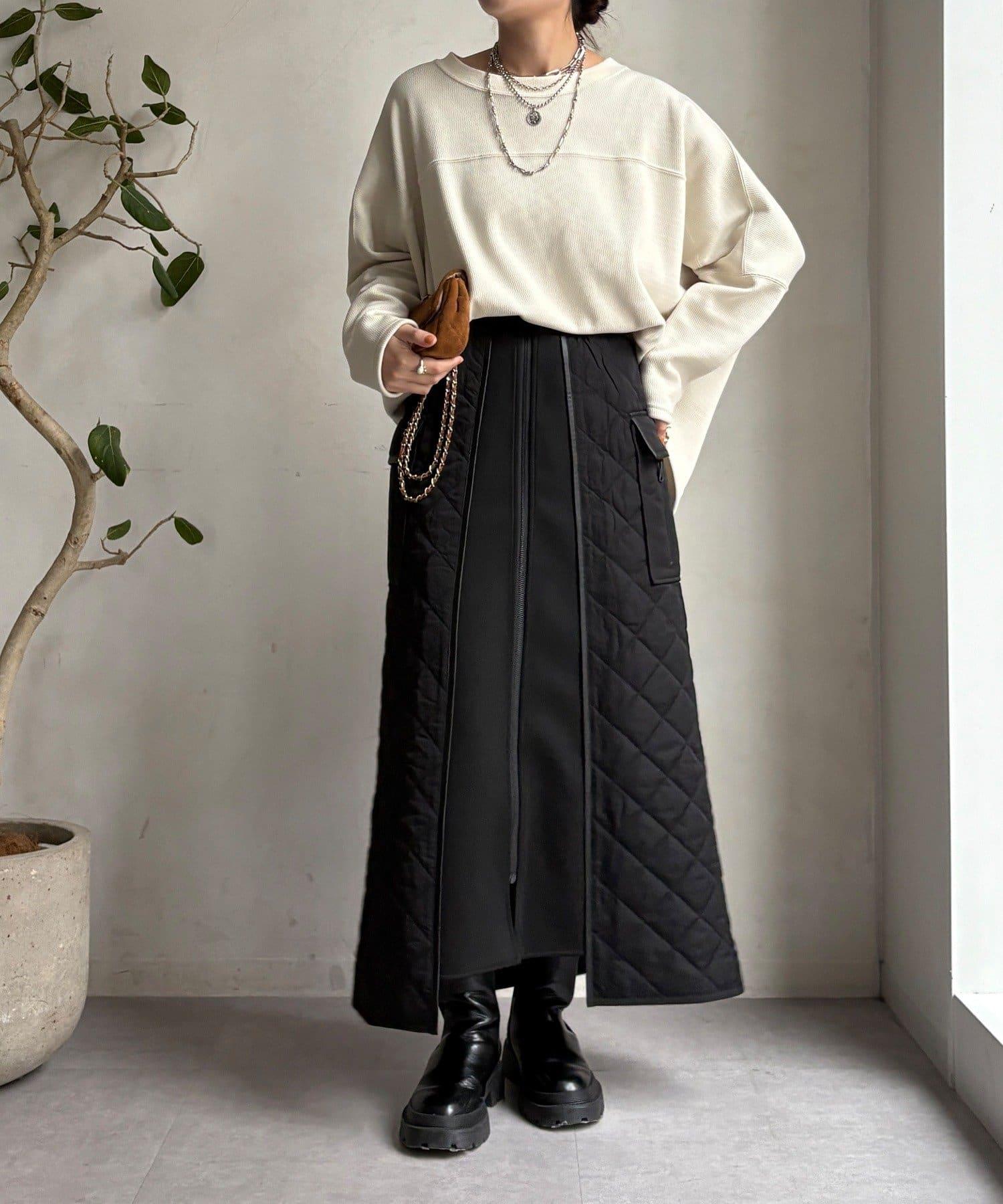 富有表現力的絎縫面料和不同面料之間的切換使這款設計十分搶眼。