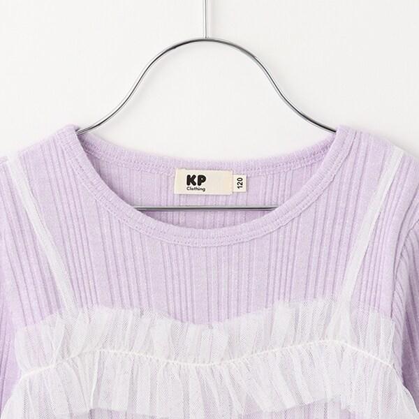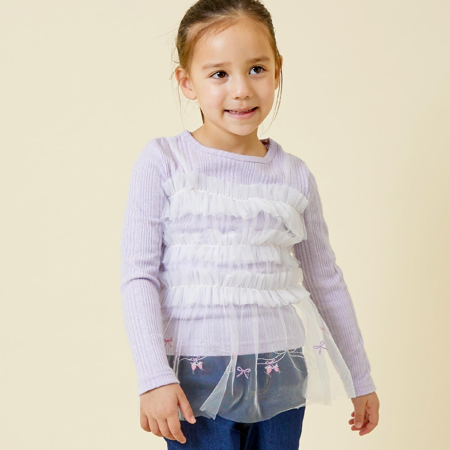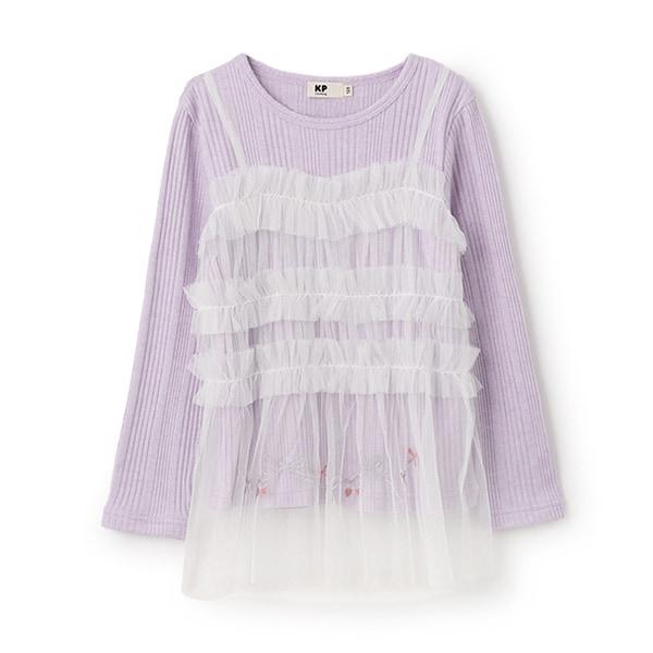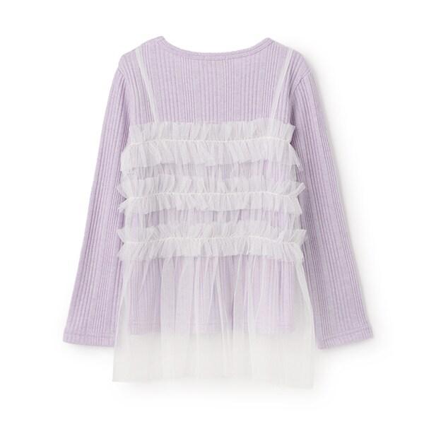 拼接網紗亮絲長袖長款上衣