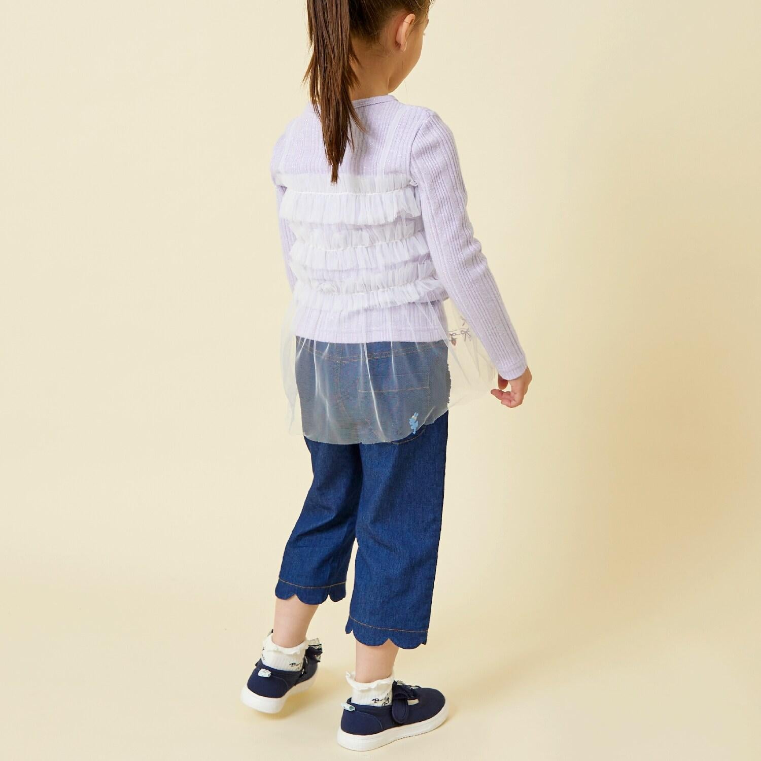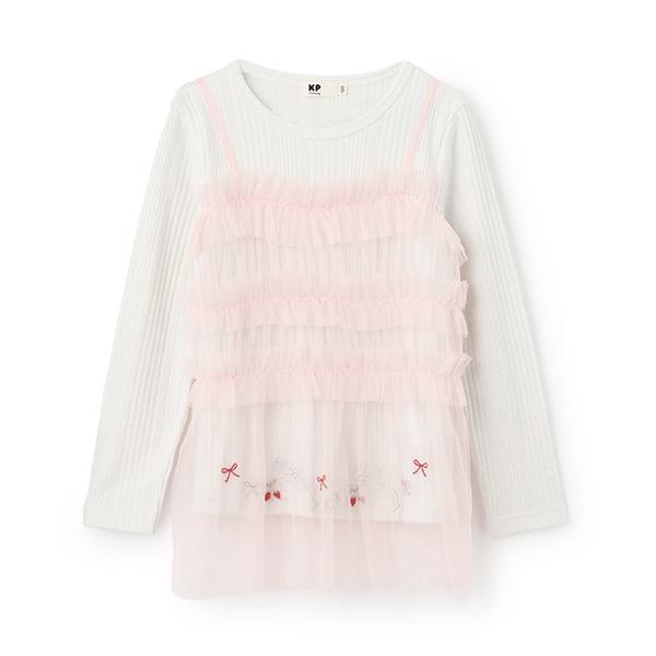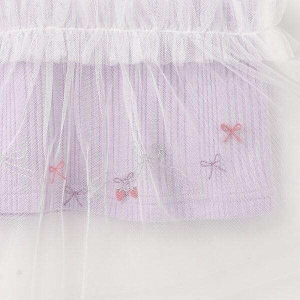薄紗下襬飾有絲帶和草莓圖案。薄紗下襬飾有絲帶和草莓圖案。