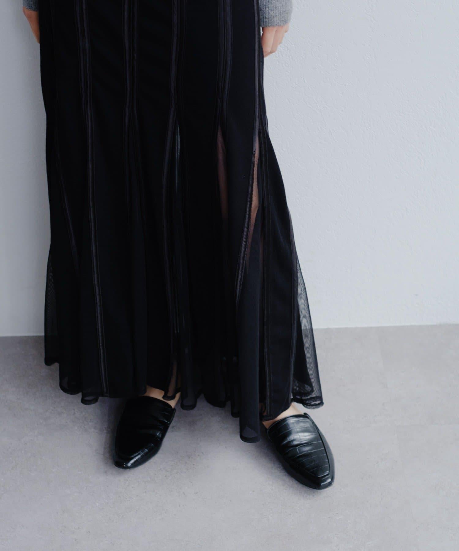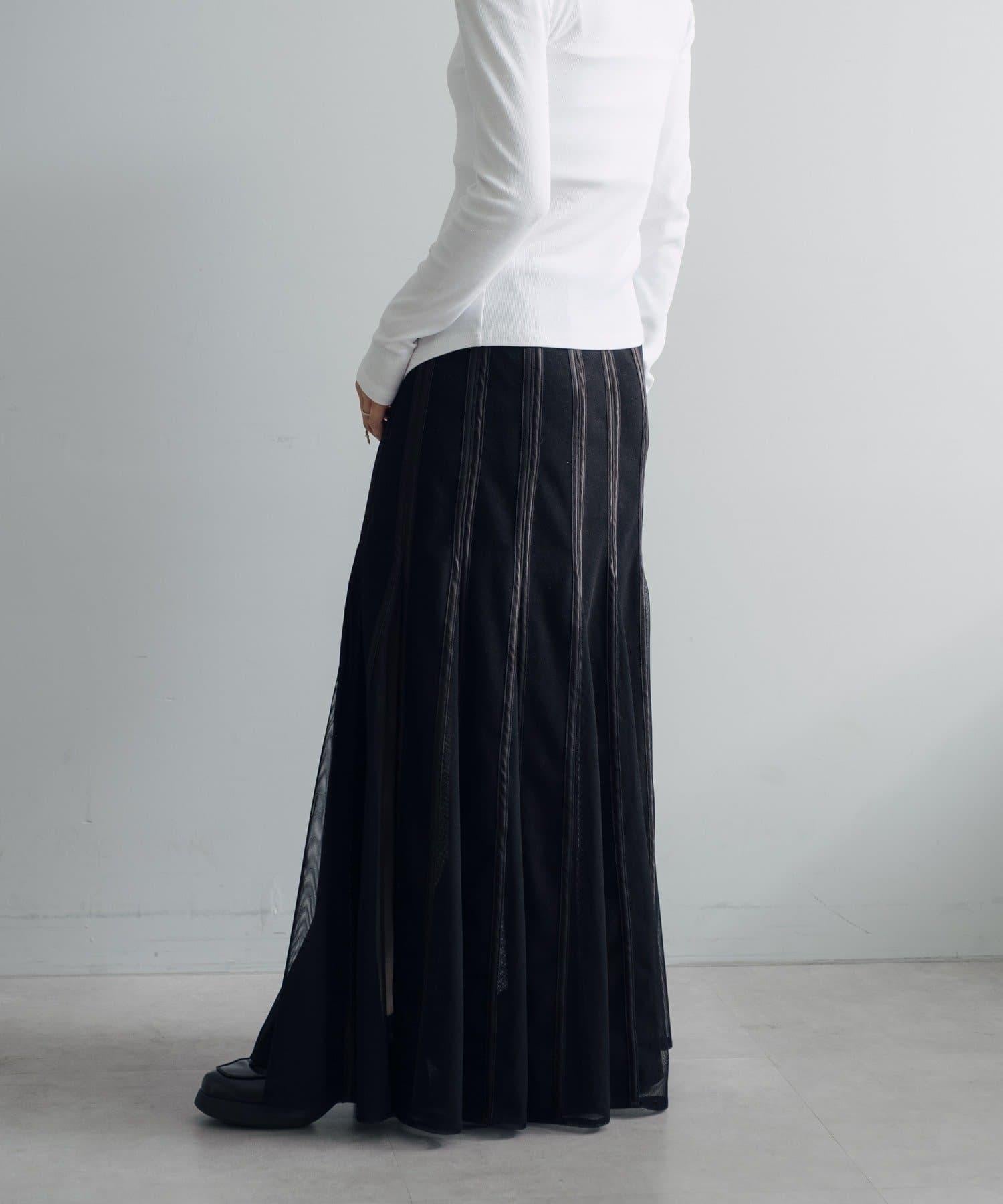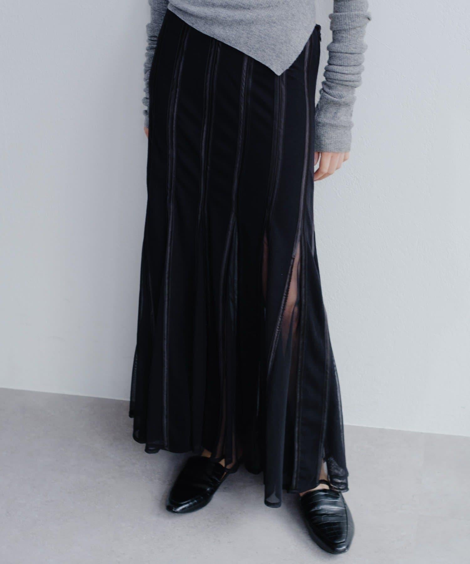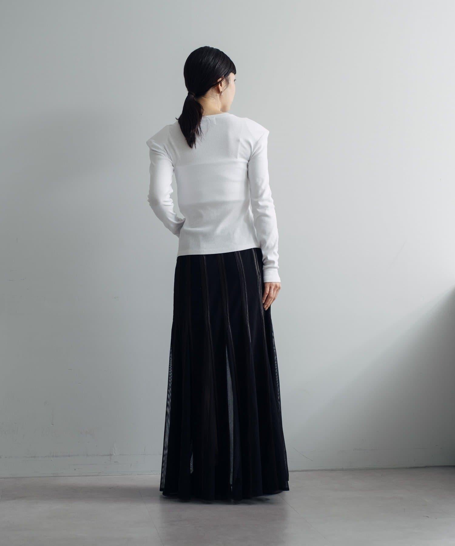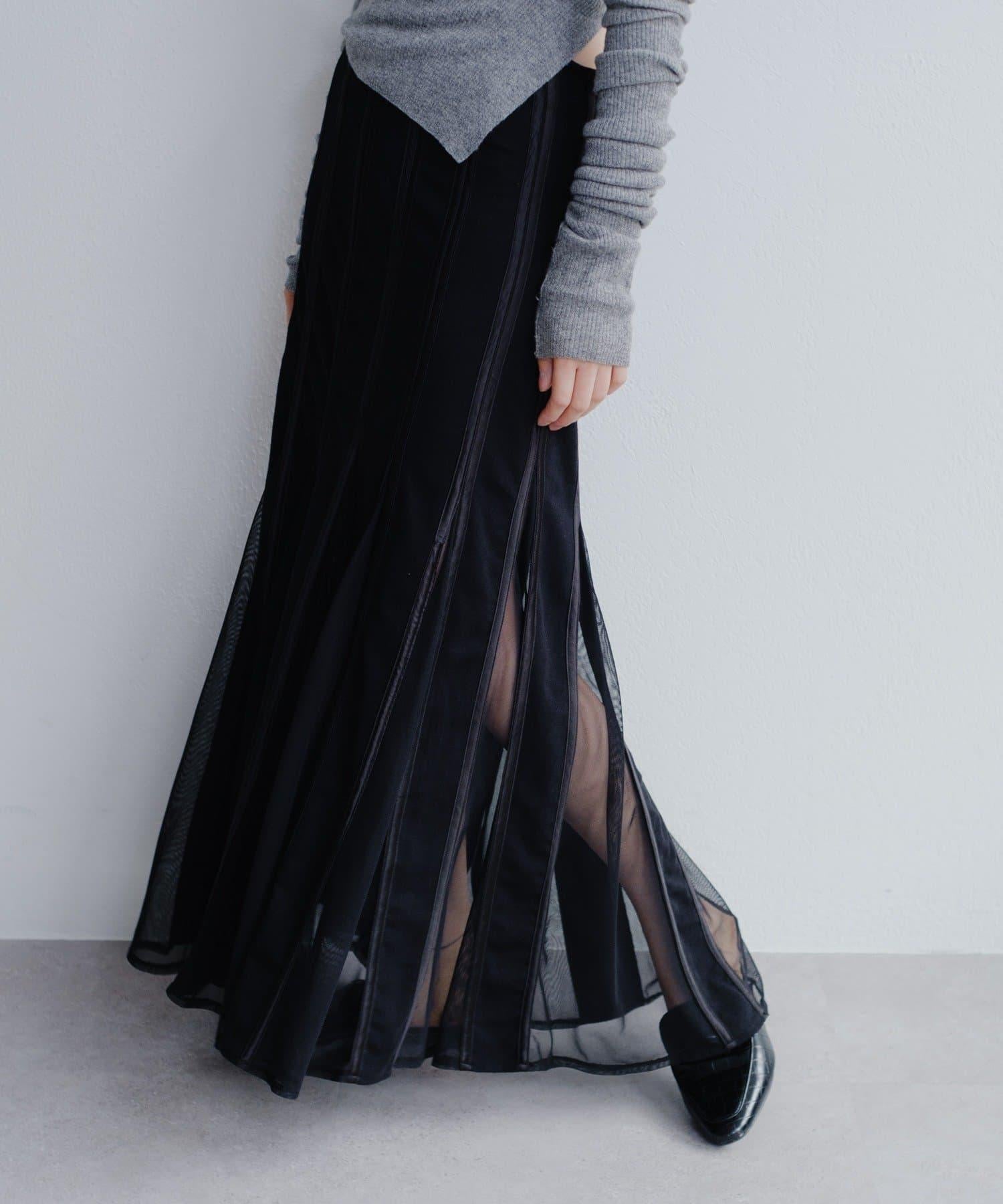 這是一款非常漂亮的薄紗裙,適合搭配針織衫和夾克。利用薄紗的透明性和裁剪縫製面料的彈性,裙子的形狀像百褶裙一樣,由多塊面料組合而成。腰部區域不是透明的,但從膝蓋以上到下襬,該裝置可以讓裙襬飄動,在您移動時變得透明。