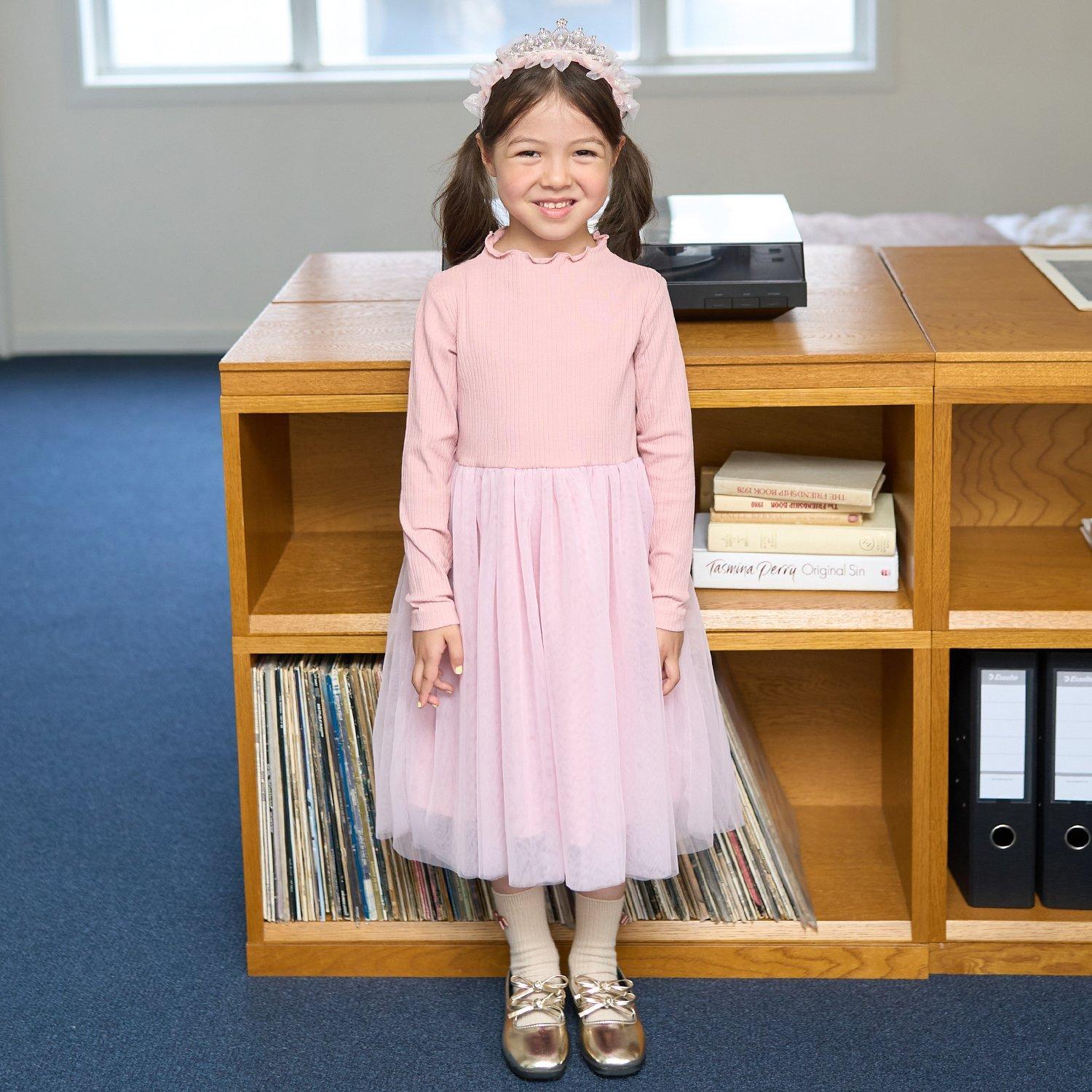 裙襬部分採用輕盈的薄紗,營造出少女般的輪廓。