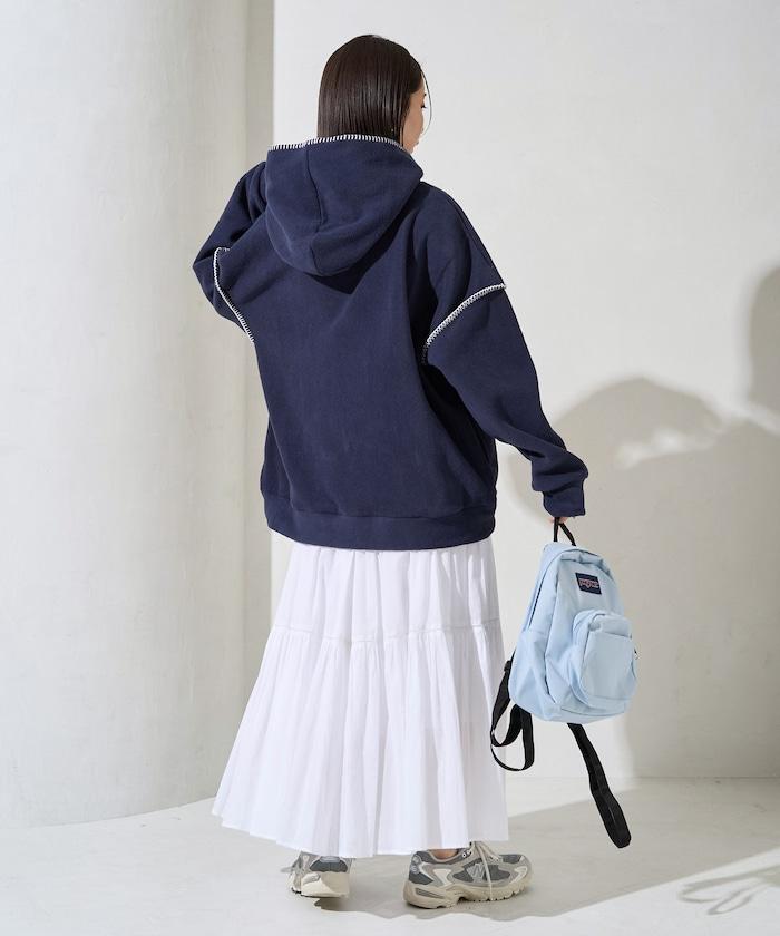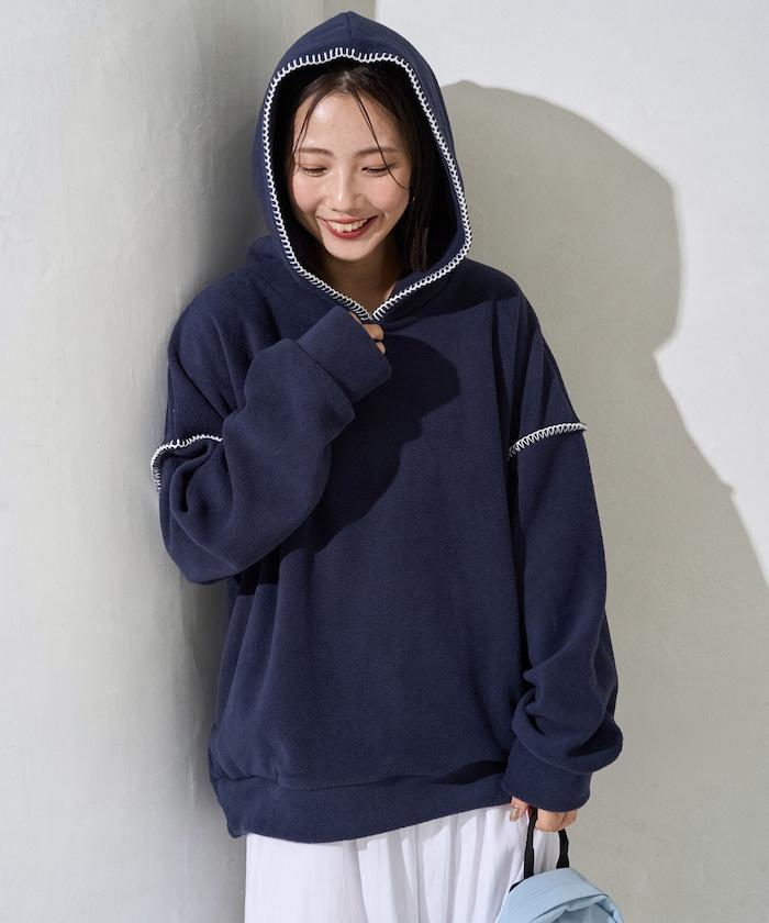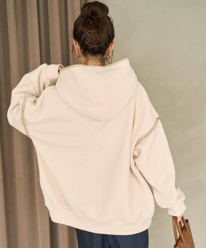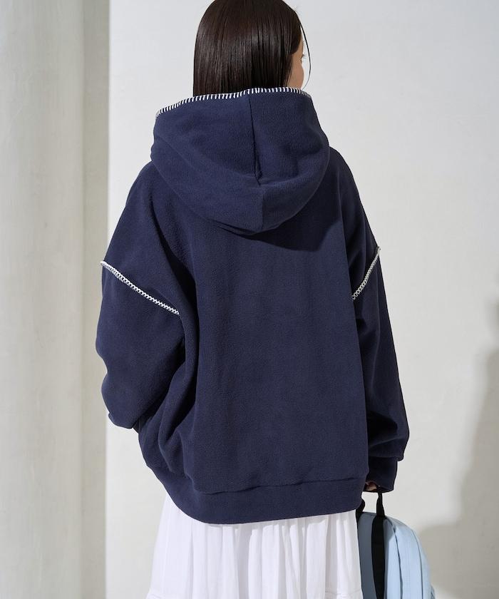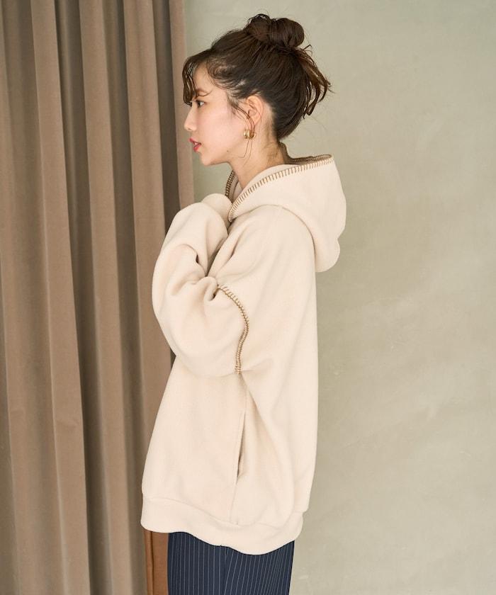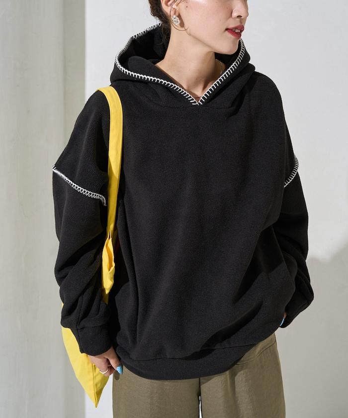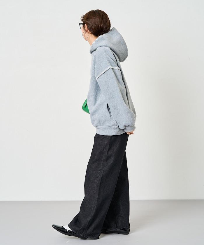 羊毛連帽衫採用醒目的毯子縫線設計。