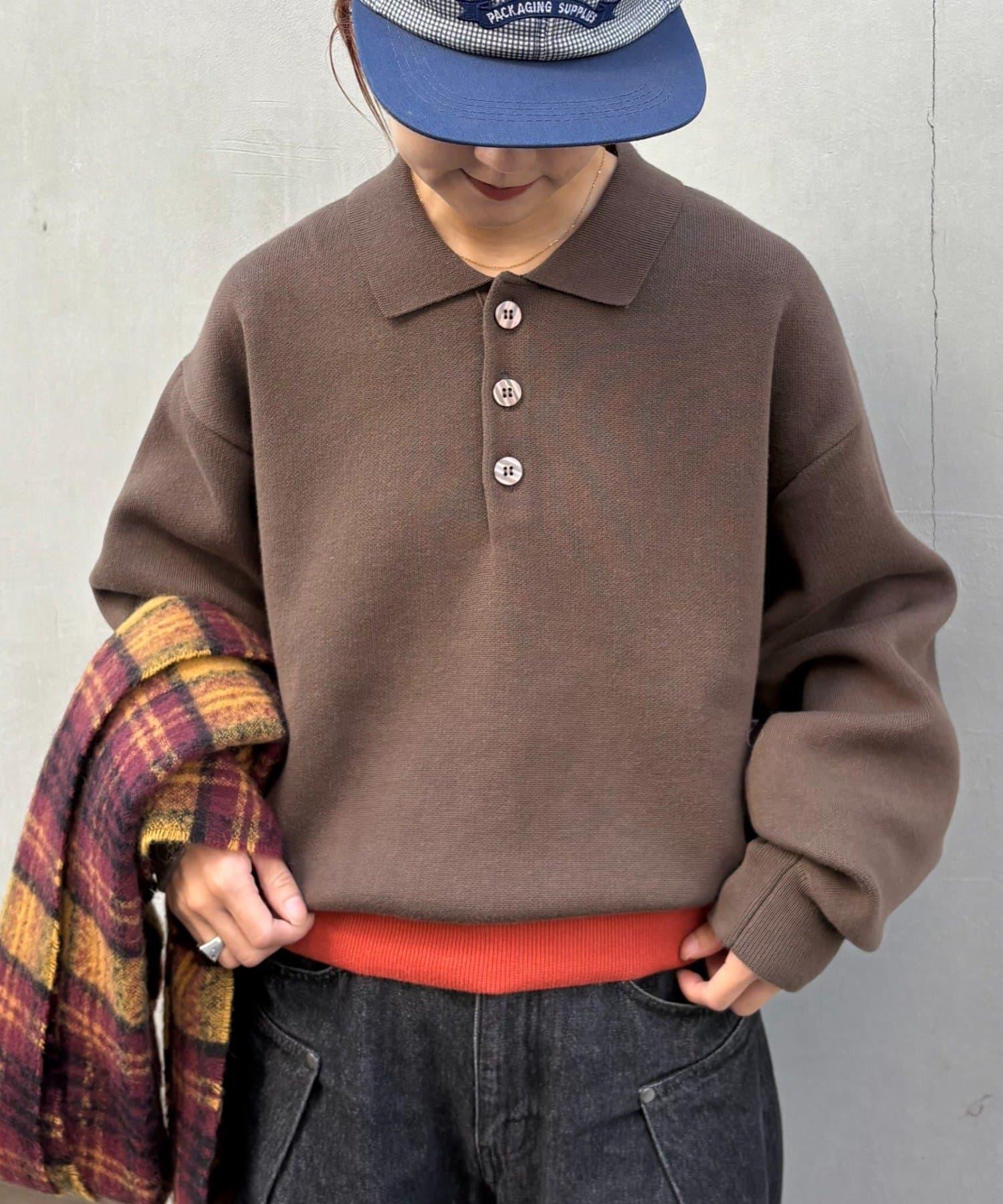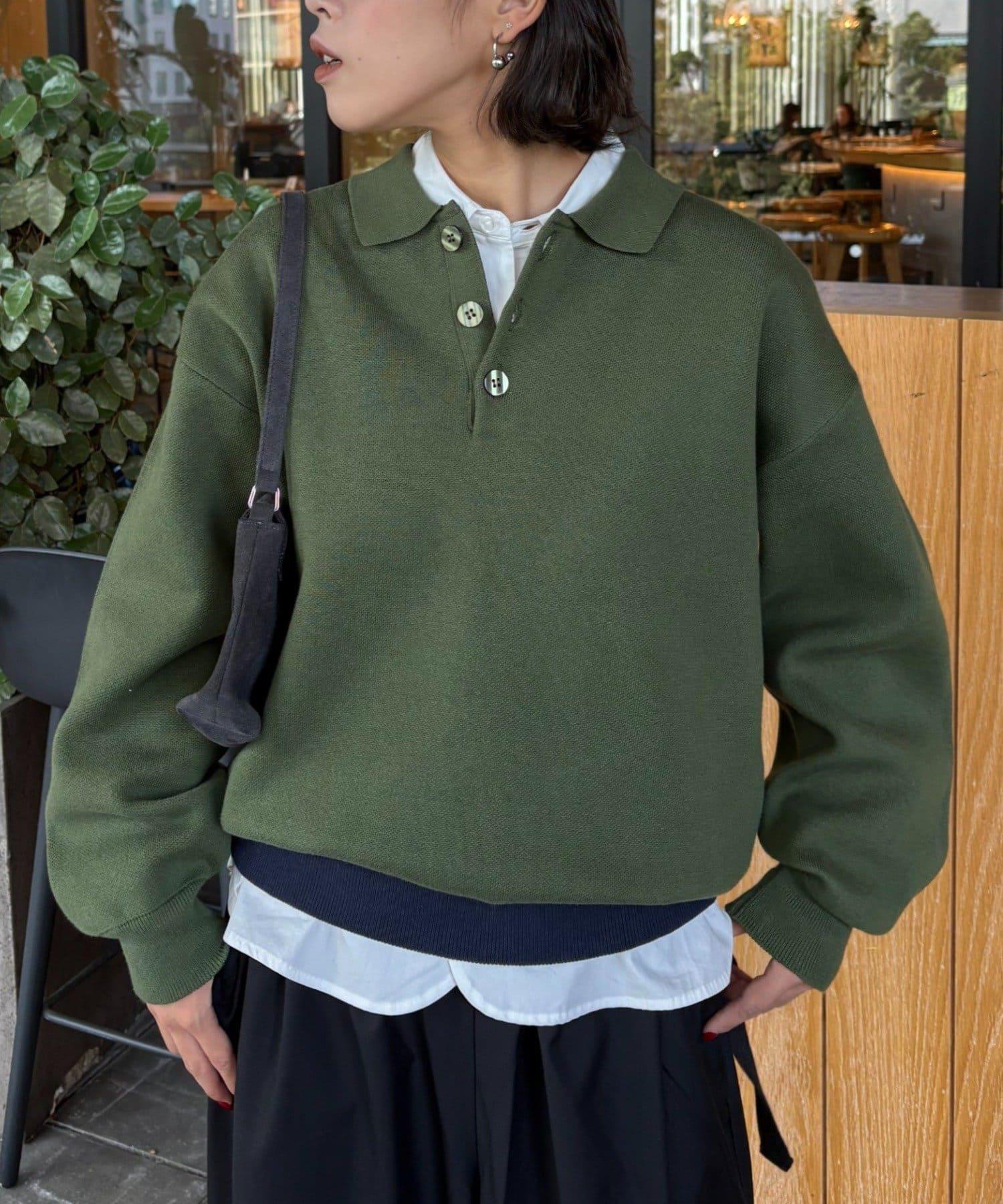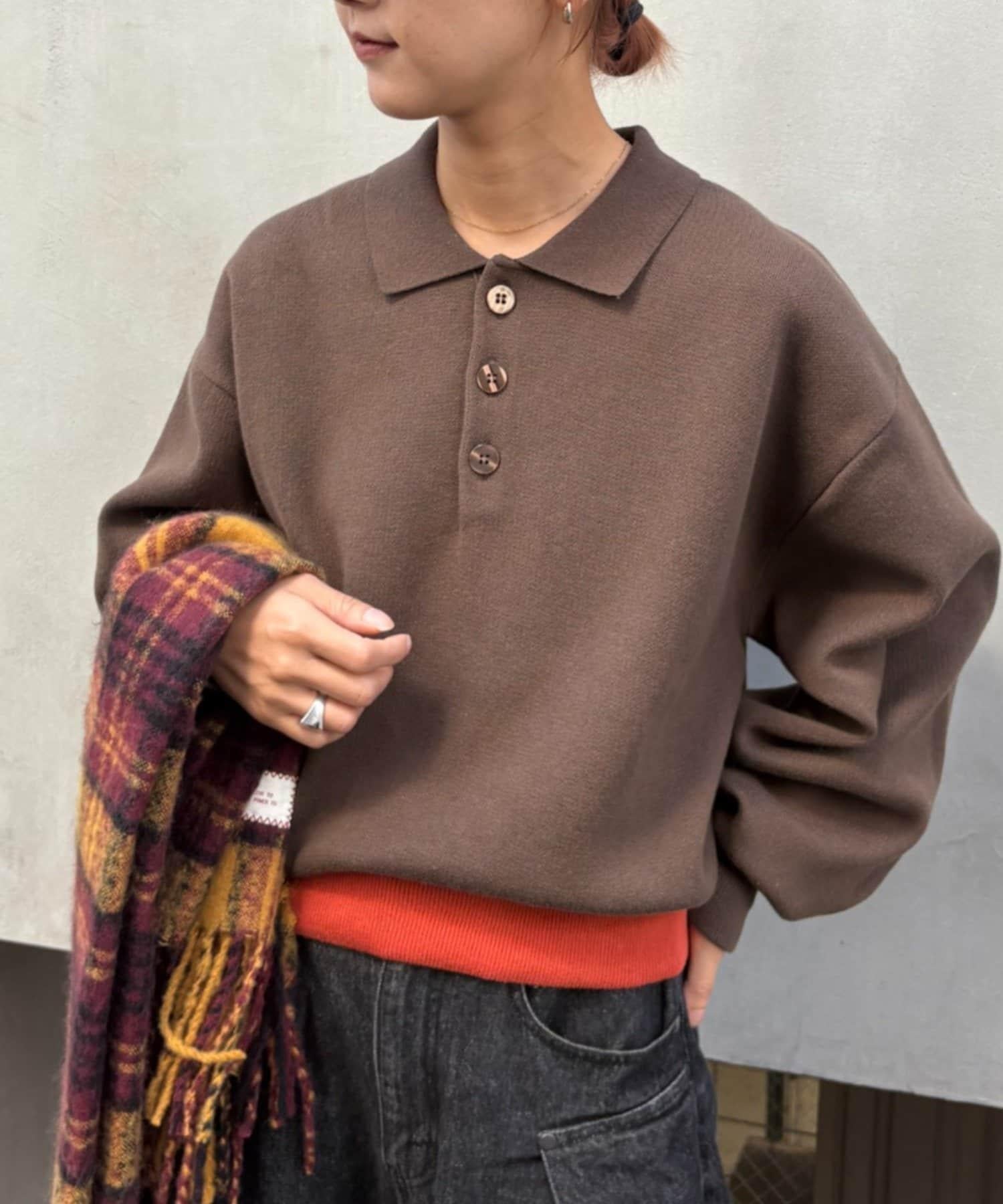 這款糯米色針織 polo 採用羅紋下襬配色方案,與周圍的