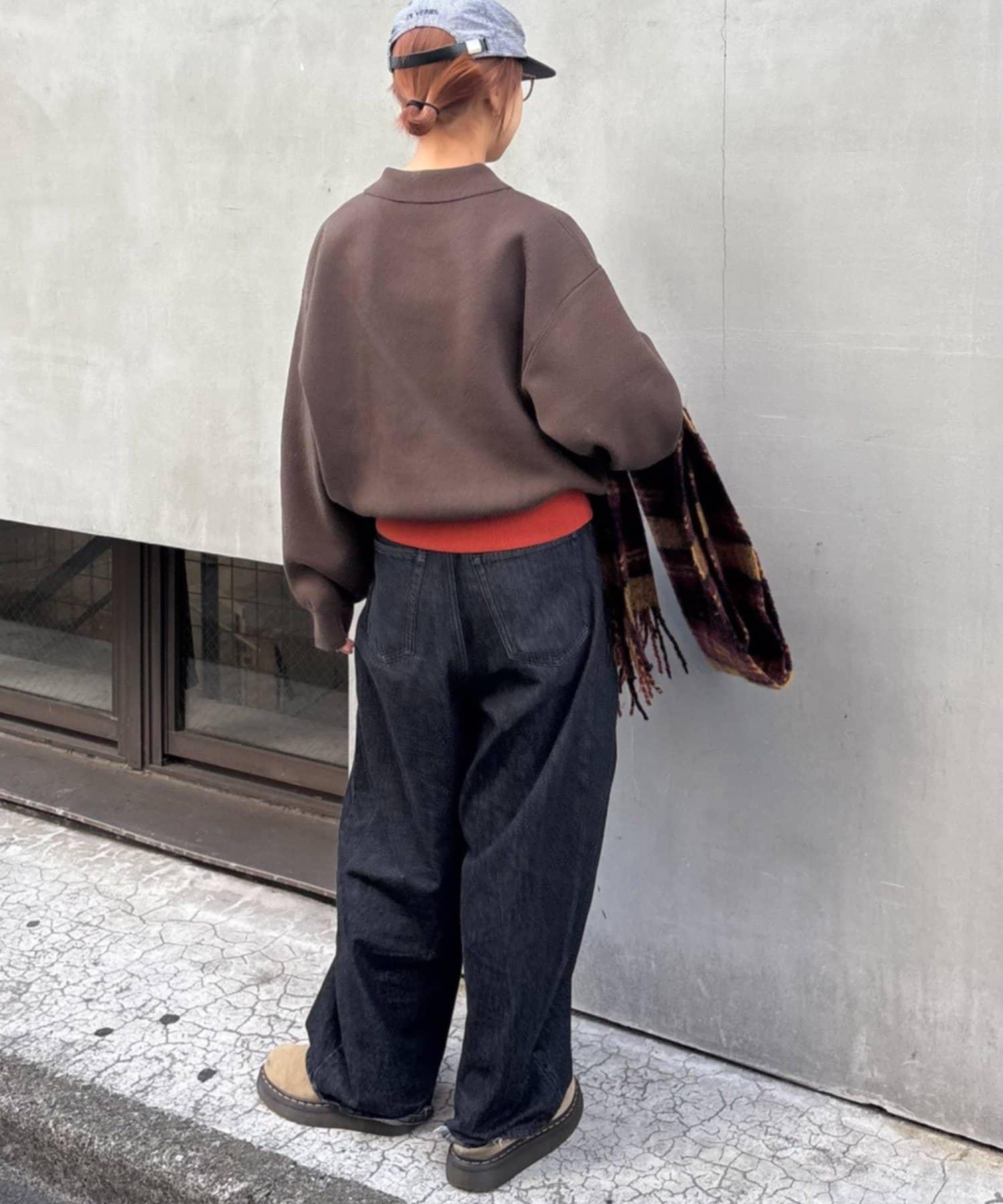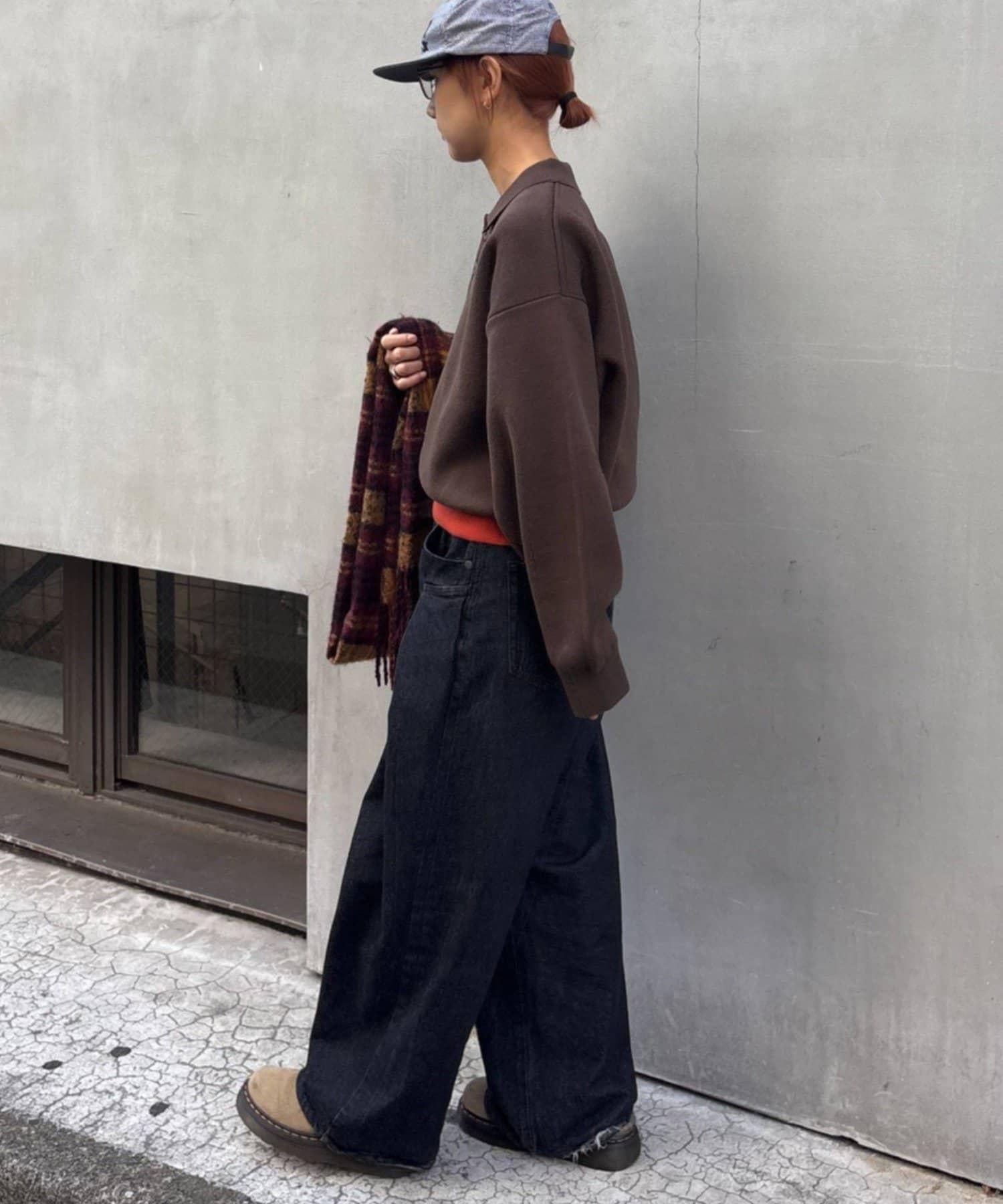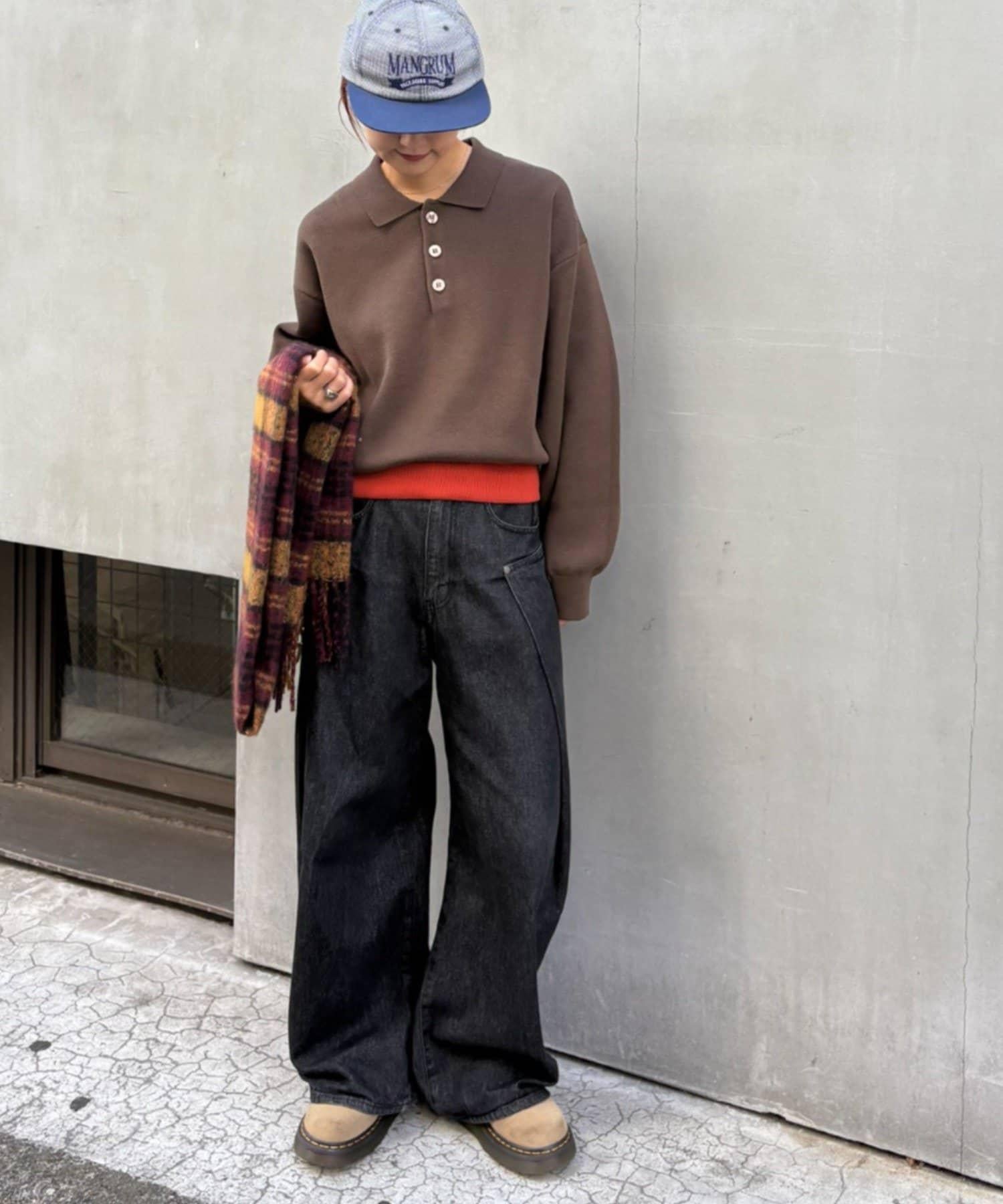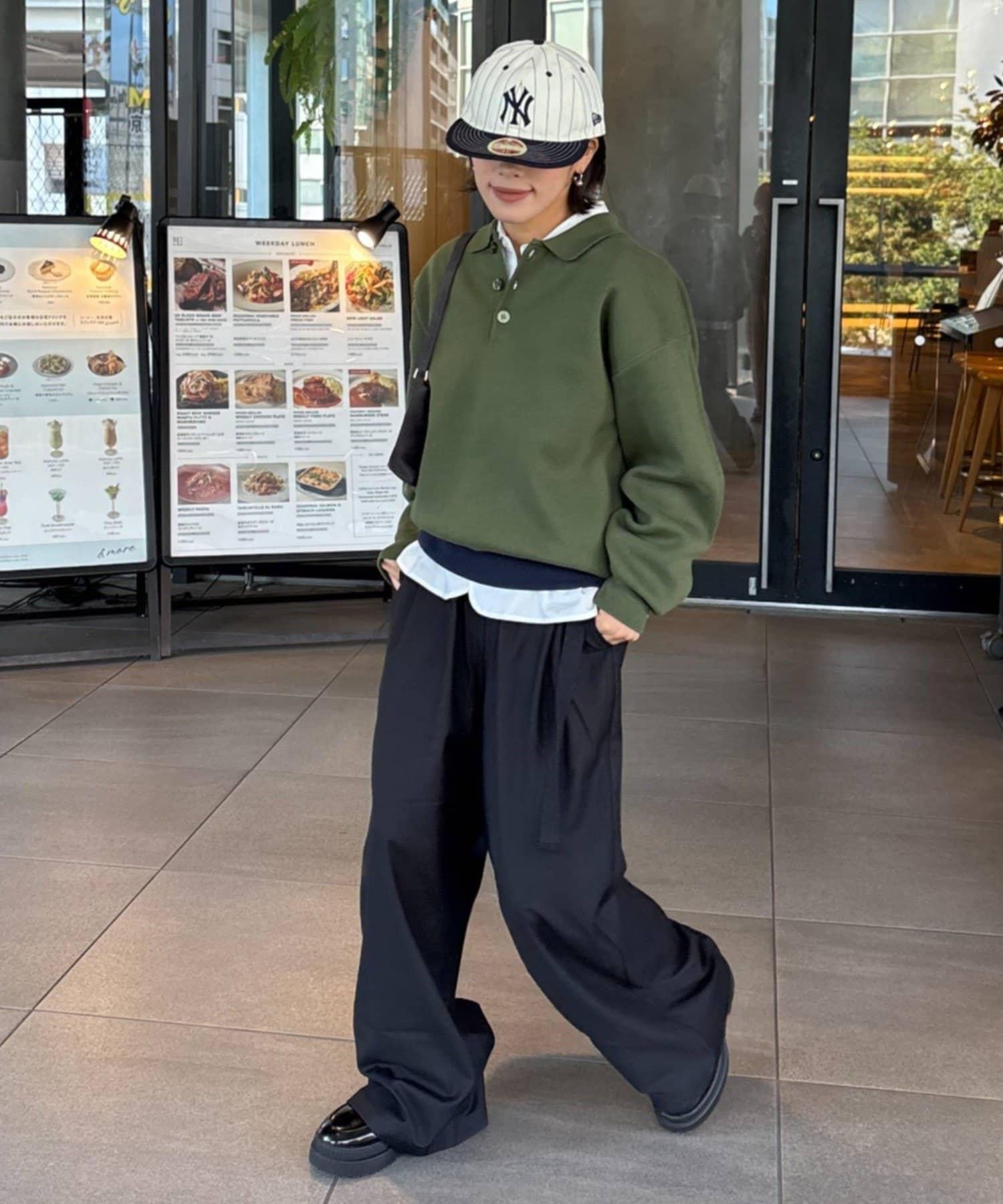 寬鬆的廓形給人一種放鬆的感覺,但下襬的羅紋配色又增加了利落的協調感。