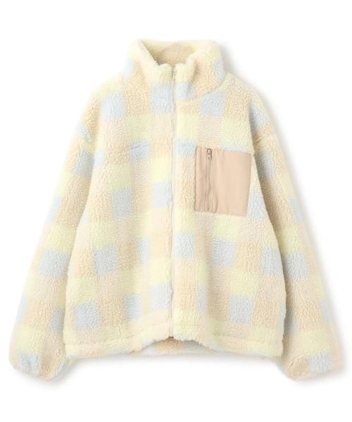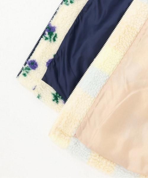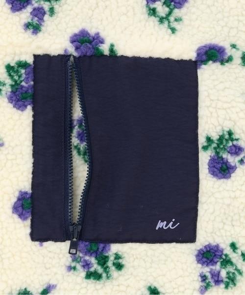 胸袋上的 mi 刺繡為紫色,與象牙白上的花卉圖案相呼應;淺藍色與米色上的棋盤格圖案相呼應。