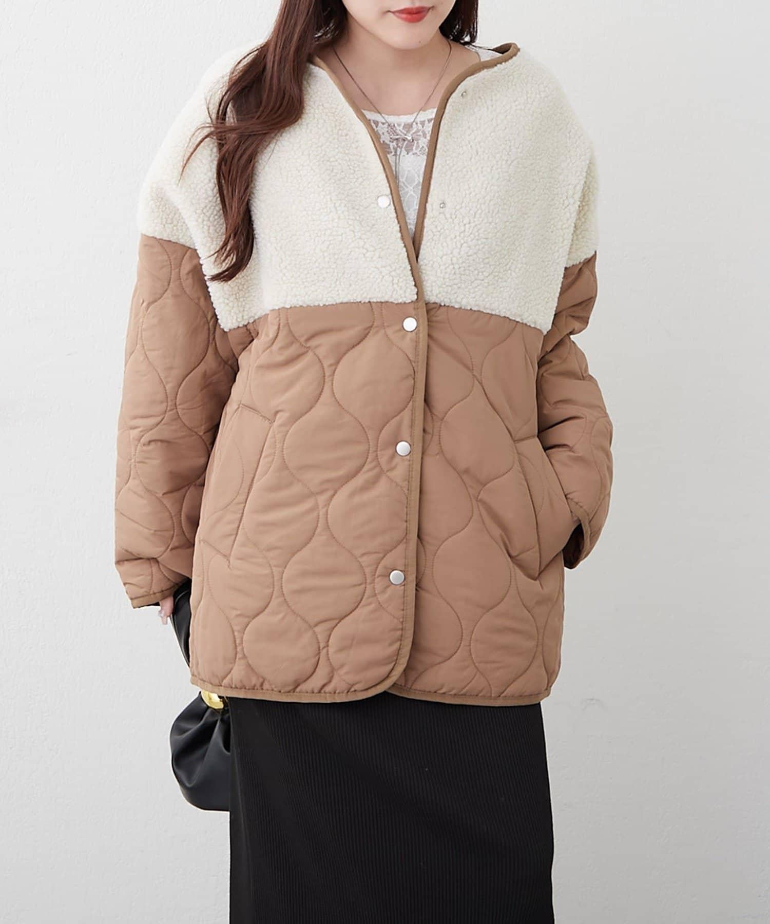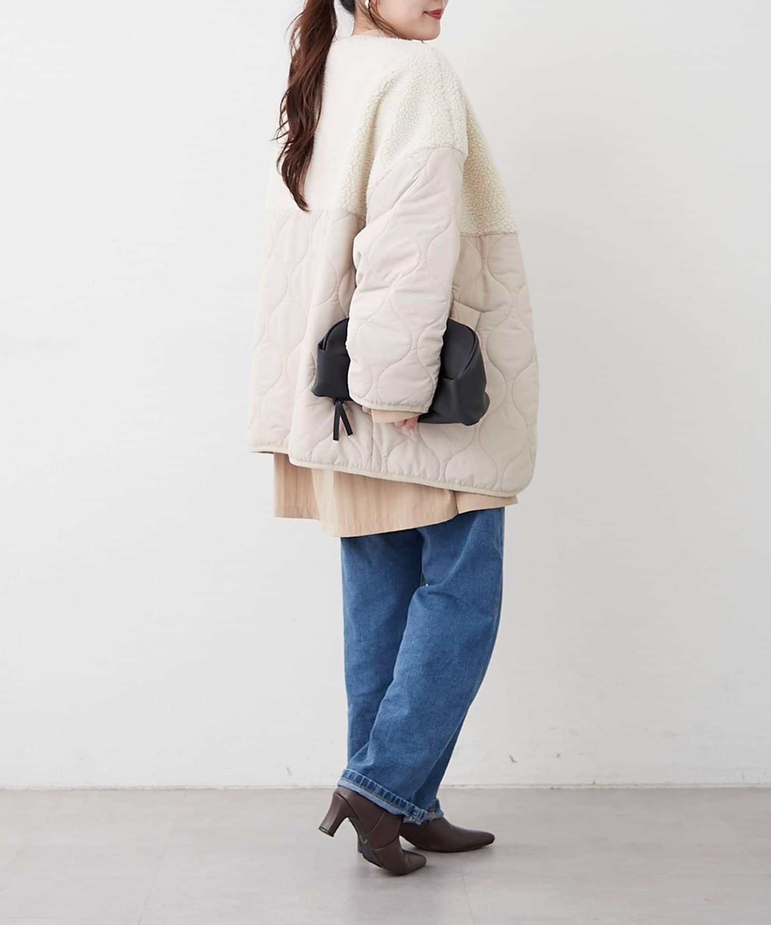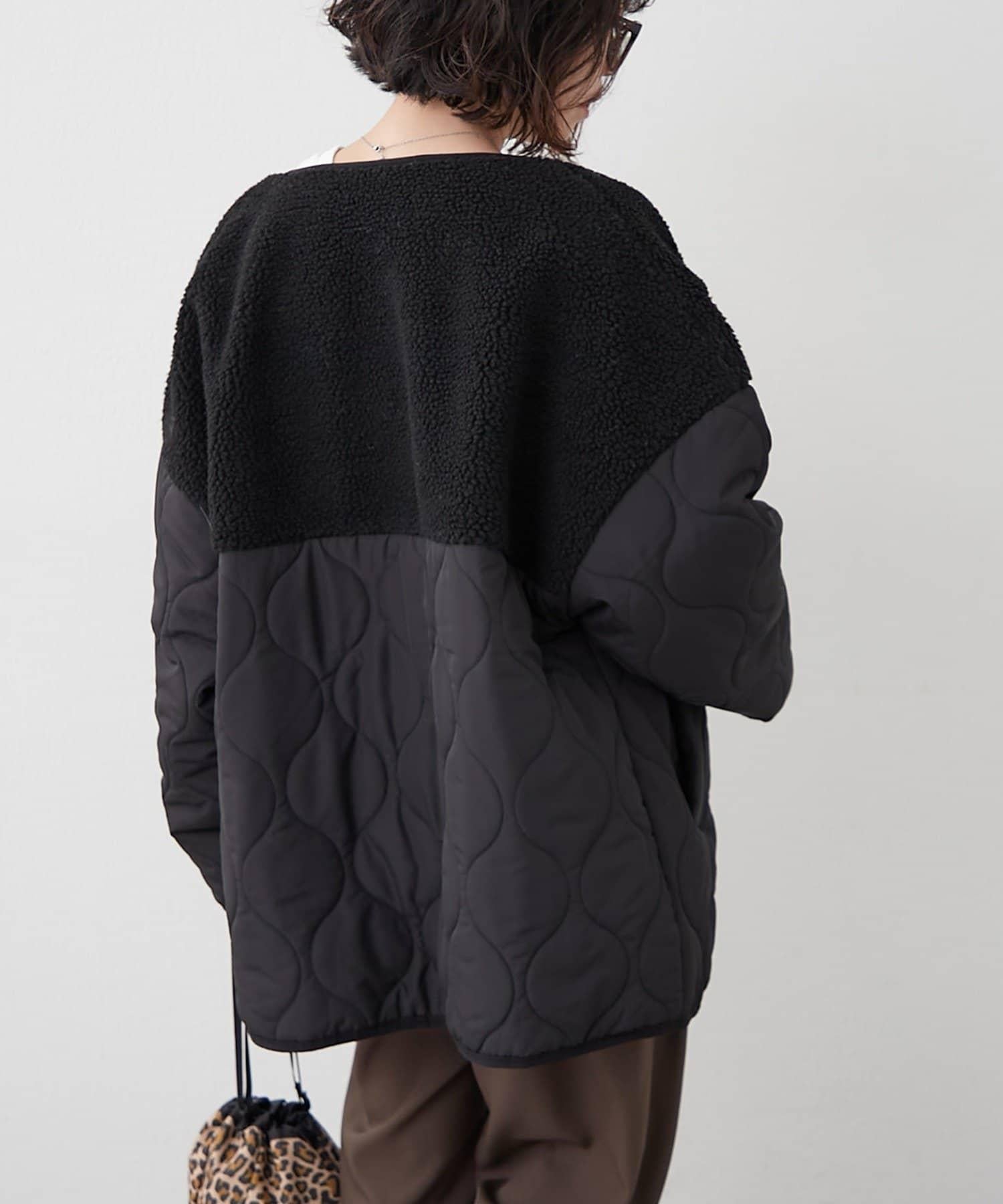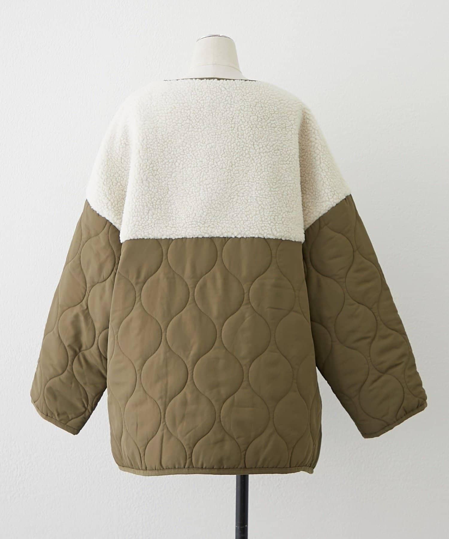 這款夾克採用了蟒蛇絨和絎縫兩種面料,具有季節感。