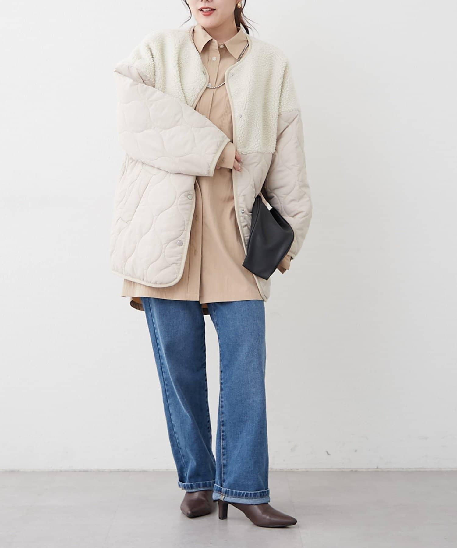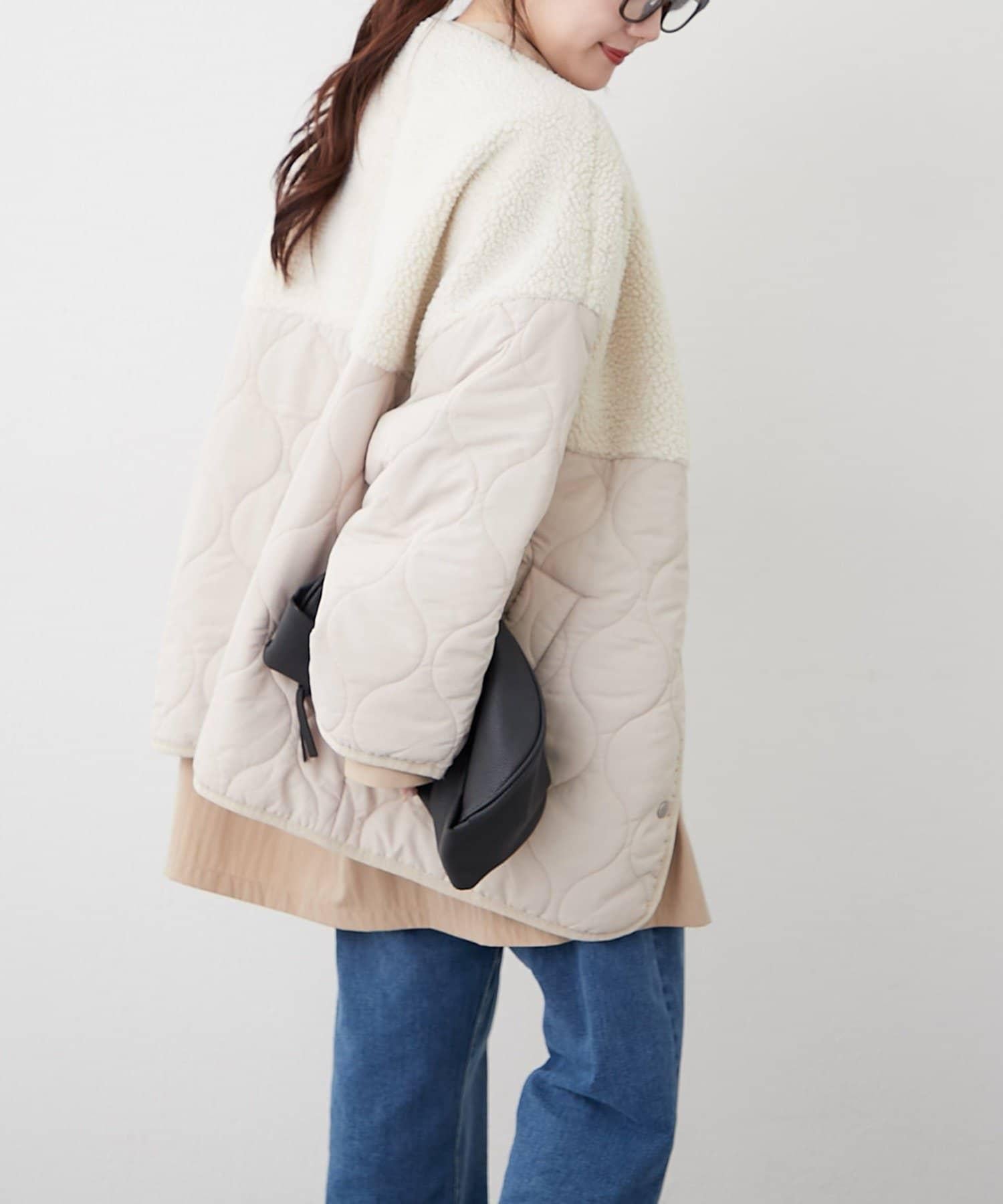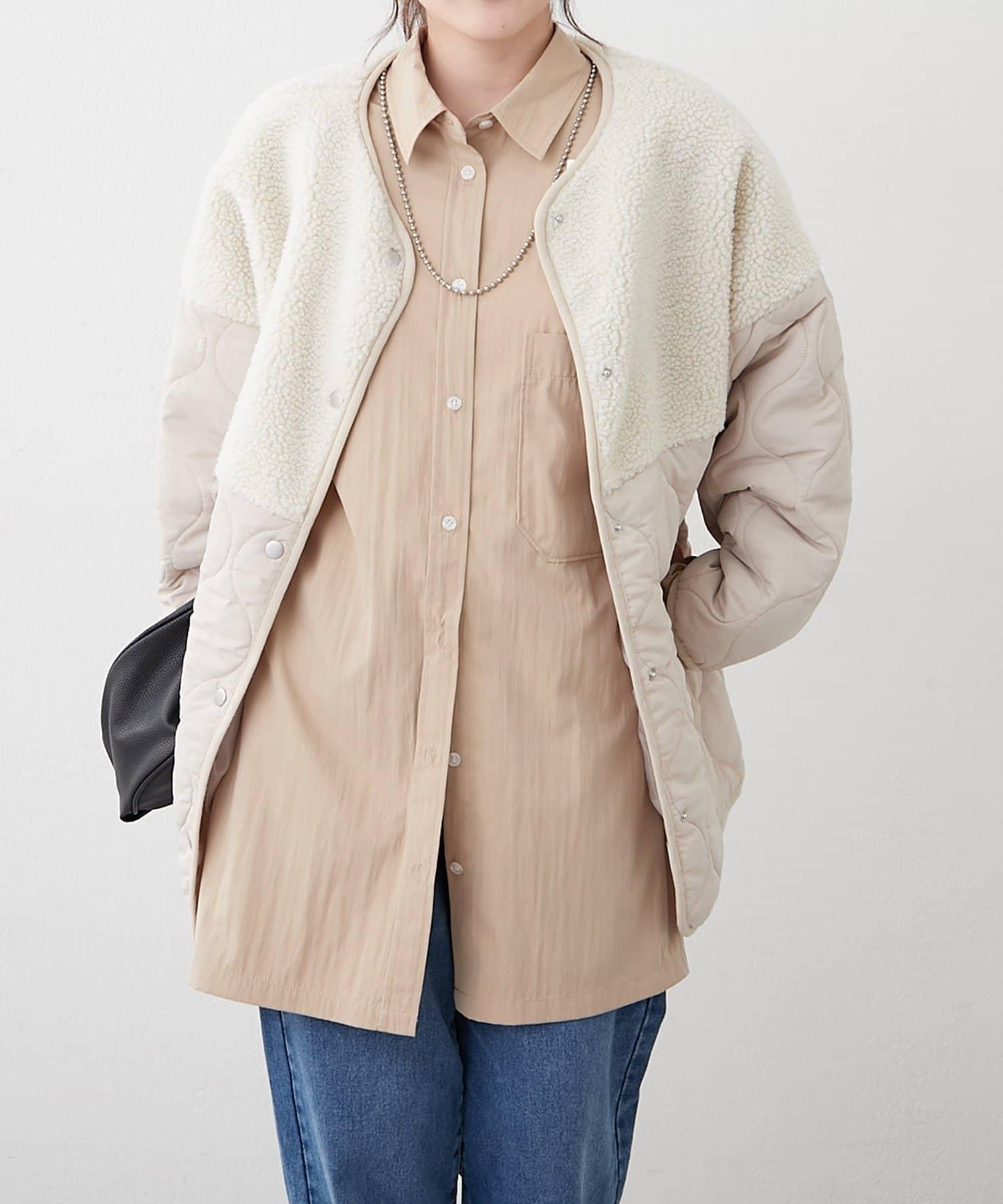 這款夾克採用了蟒蛇絨和絎縫兩種面料,具有季節感。