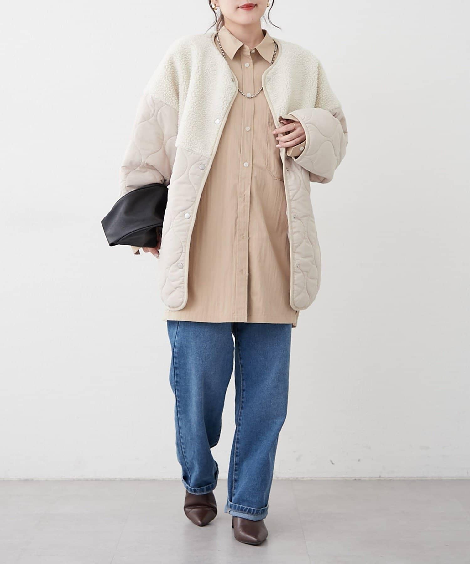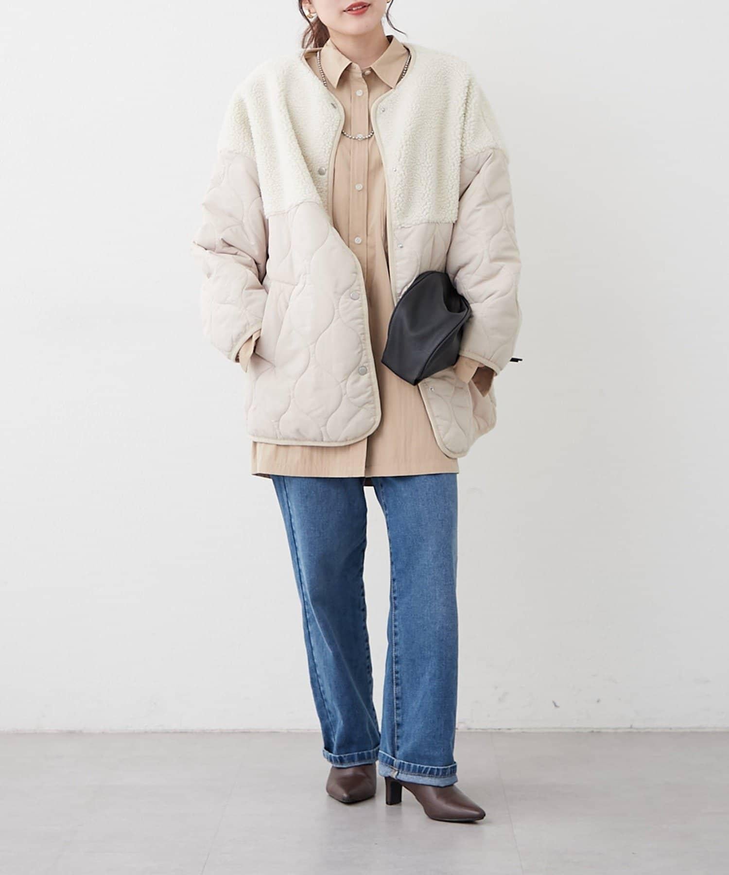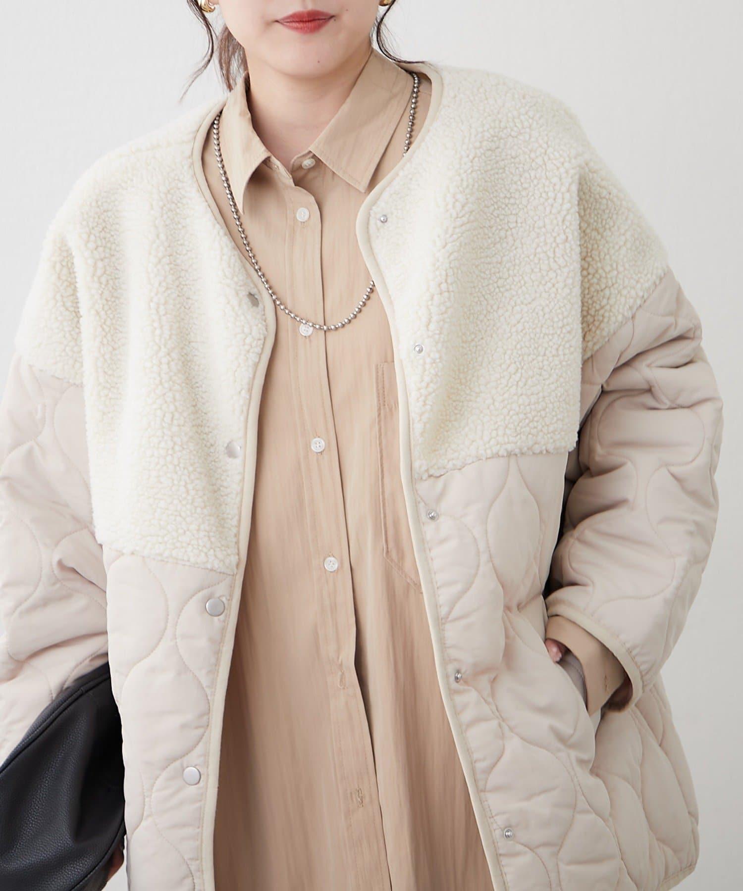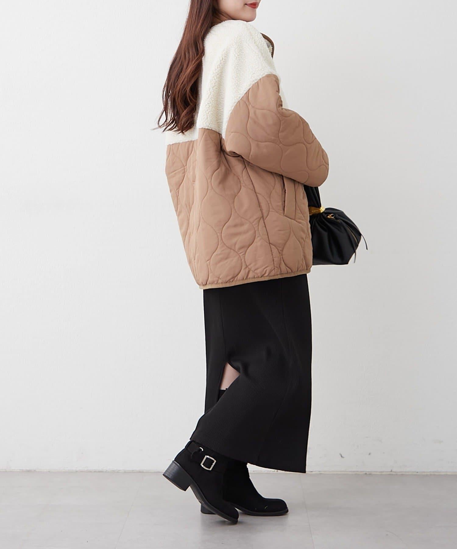 這款夾克採用了蟒蛇絨和絎縫兩種面料,具有季節感。