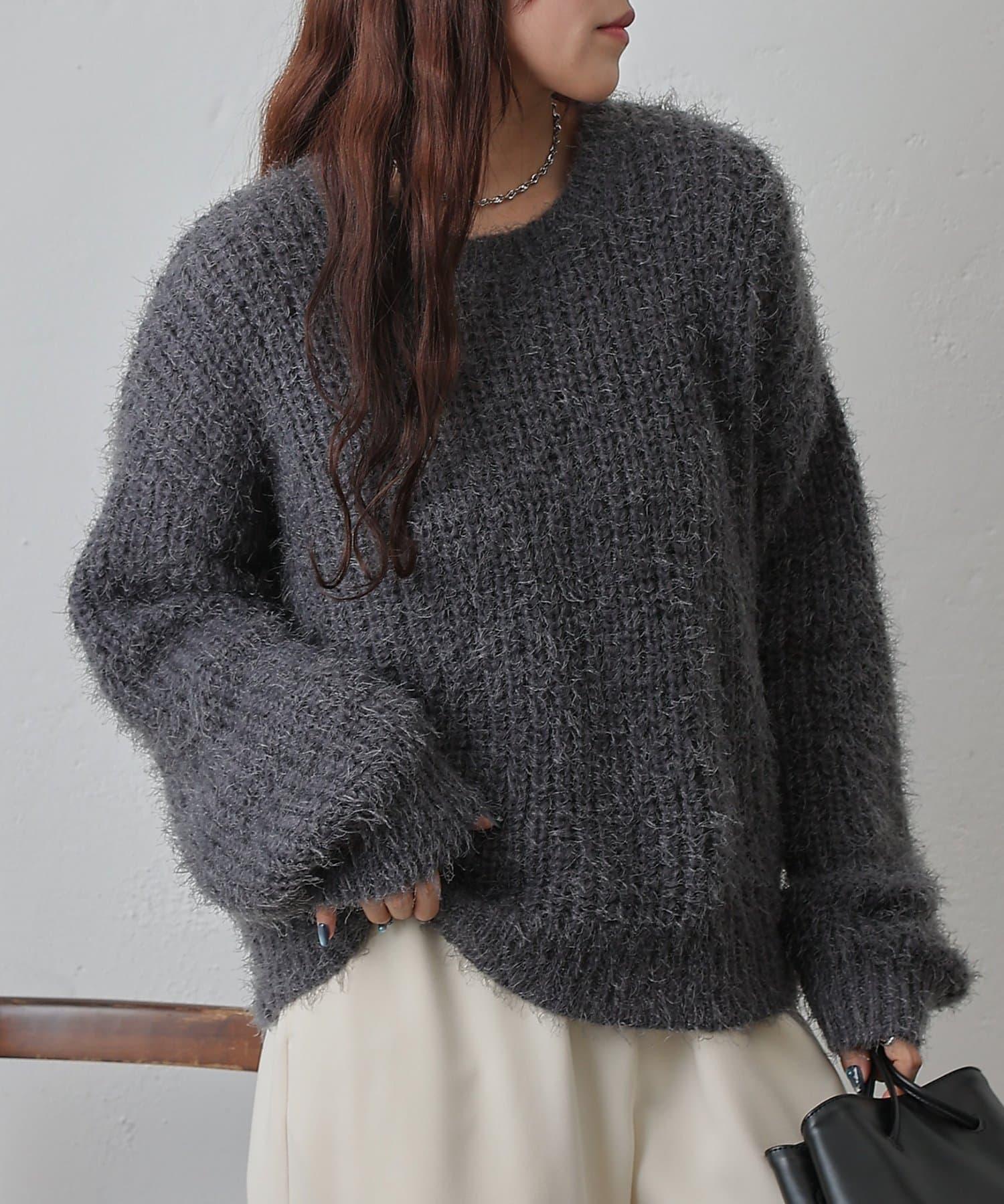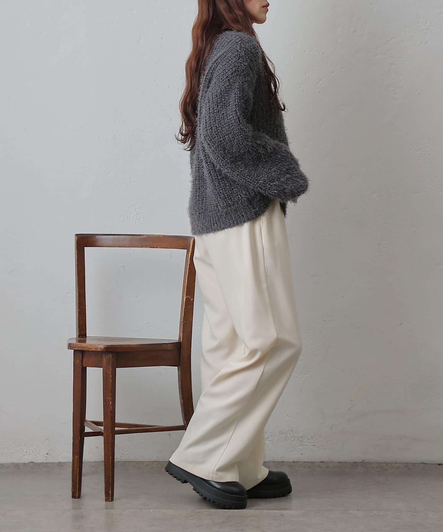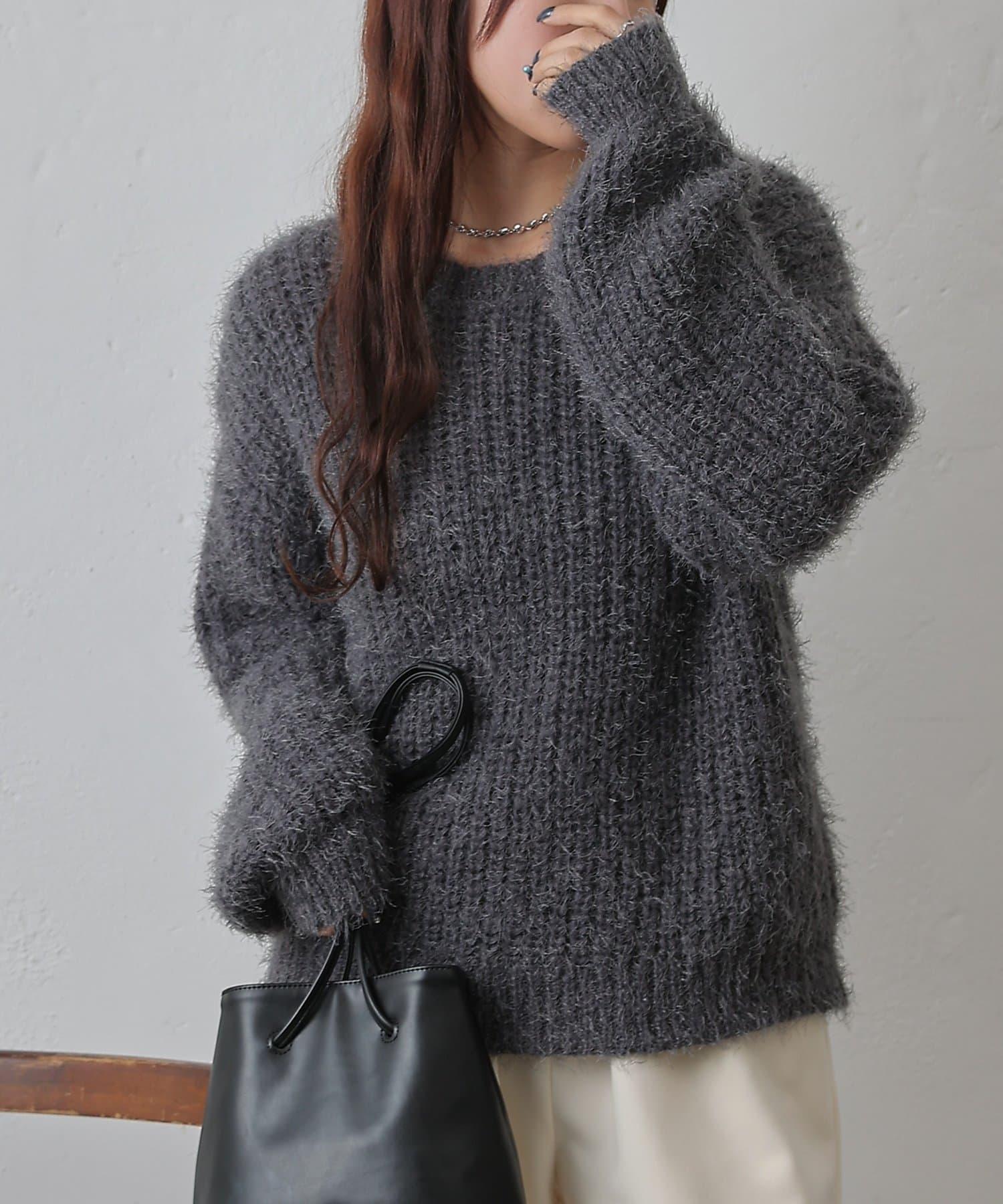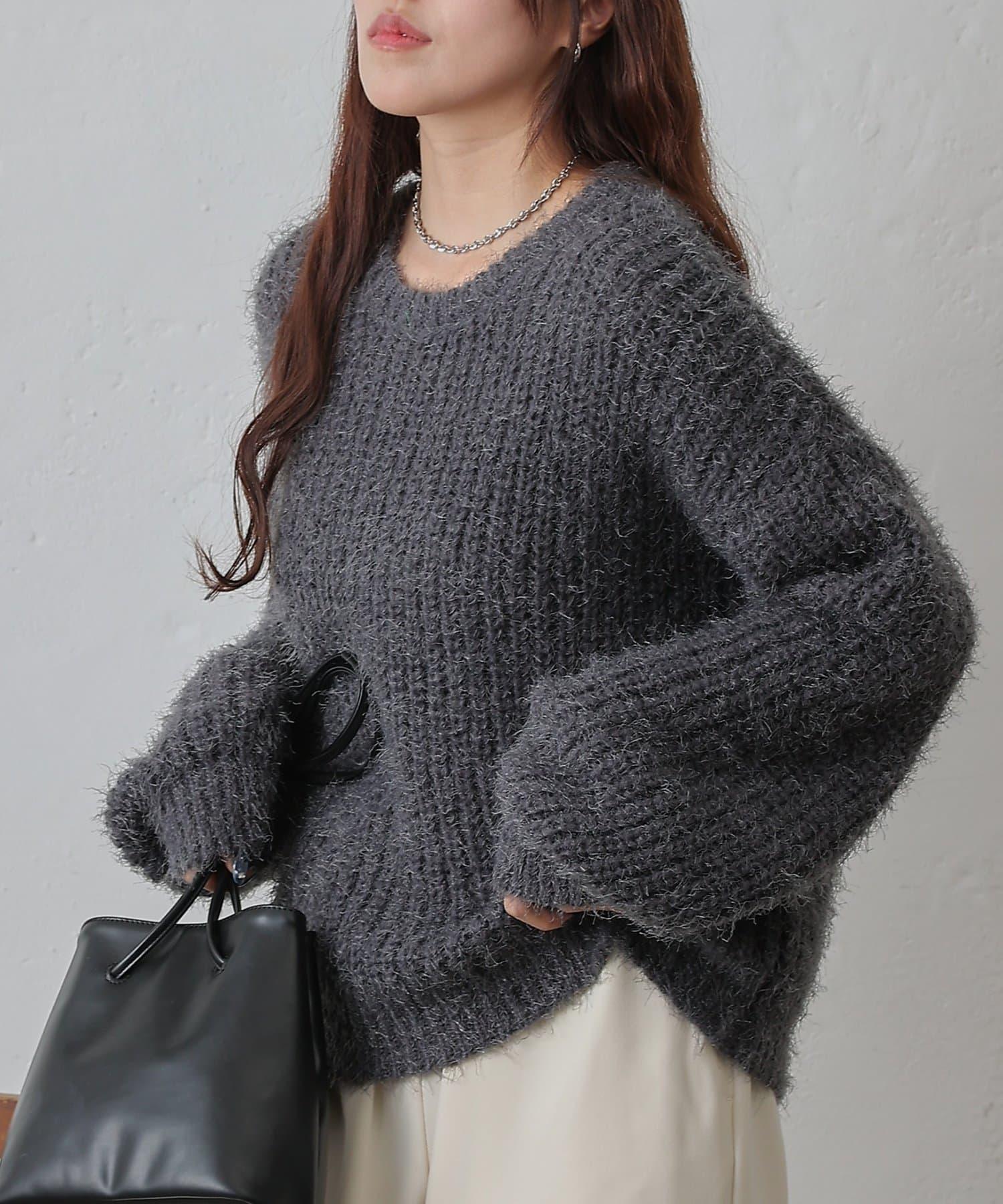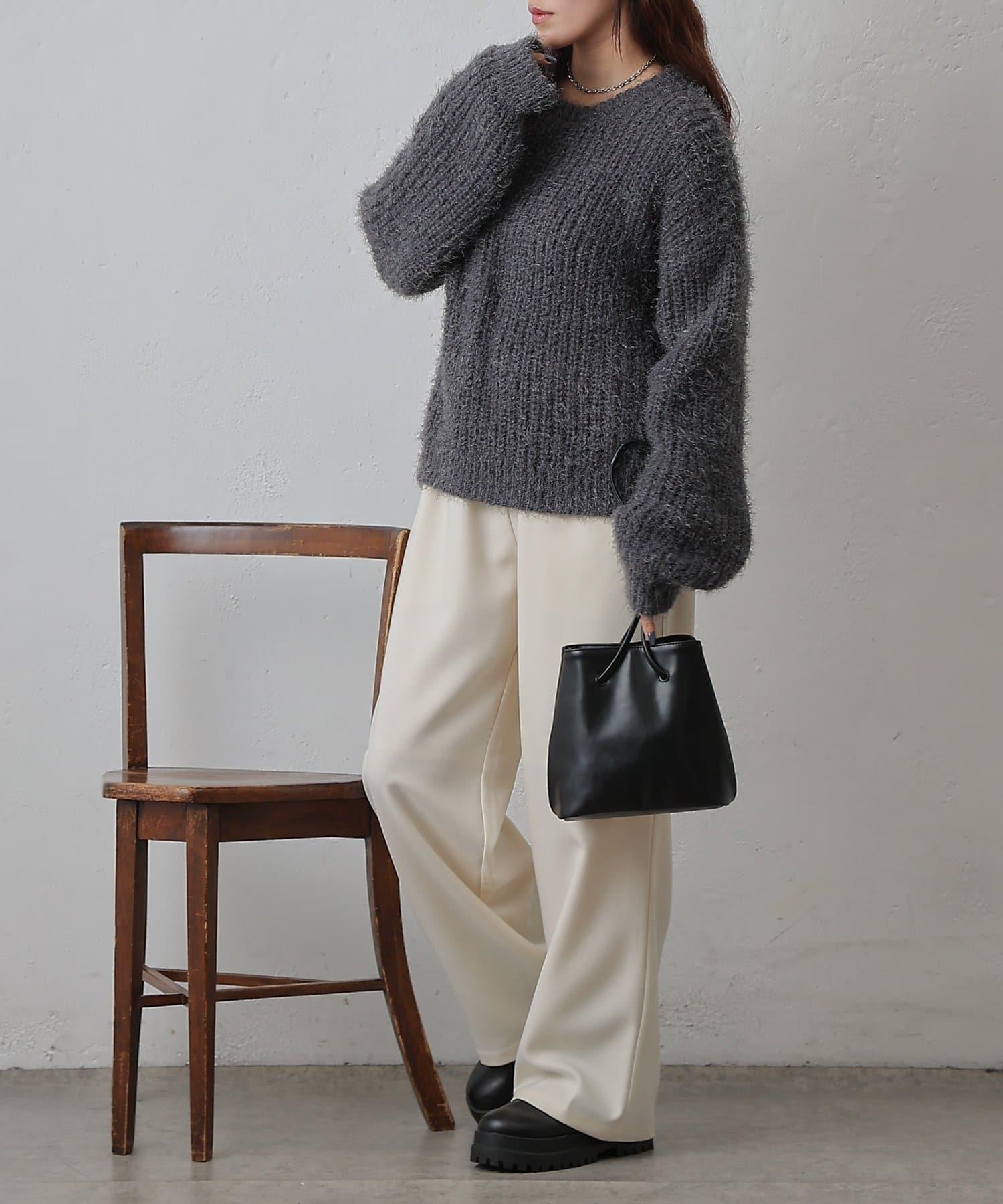 單床橋針織特有的凹凸感的面料也很可愛,從有空間感的廓形和長毛絨材質的感覺來看,可以搭配出女性化的感覺。