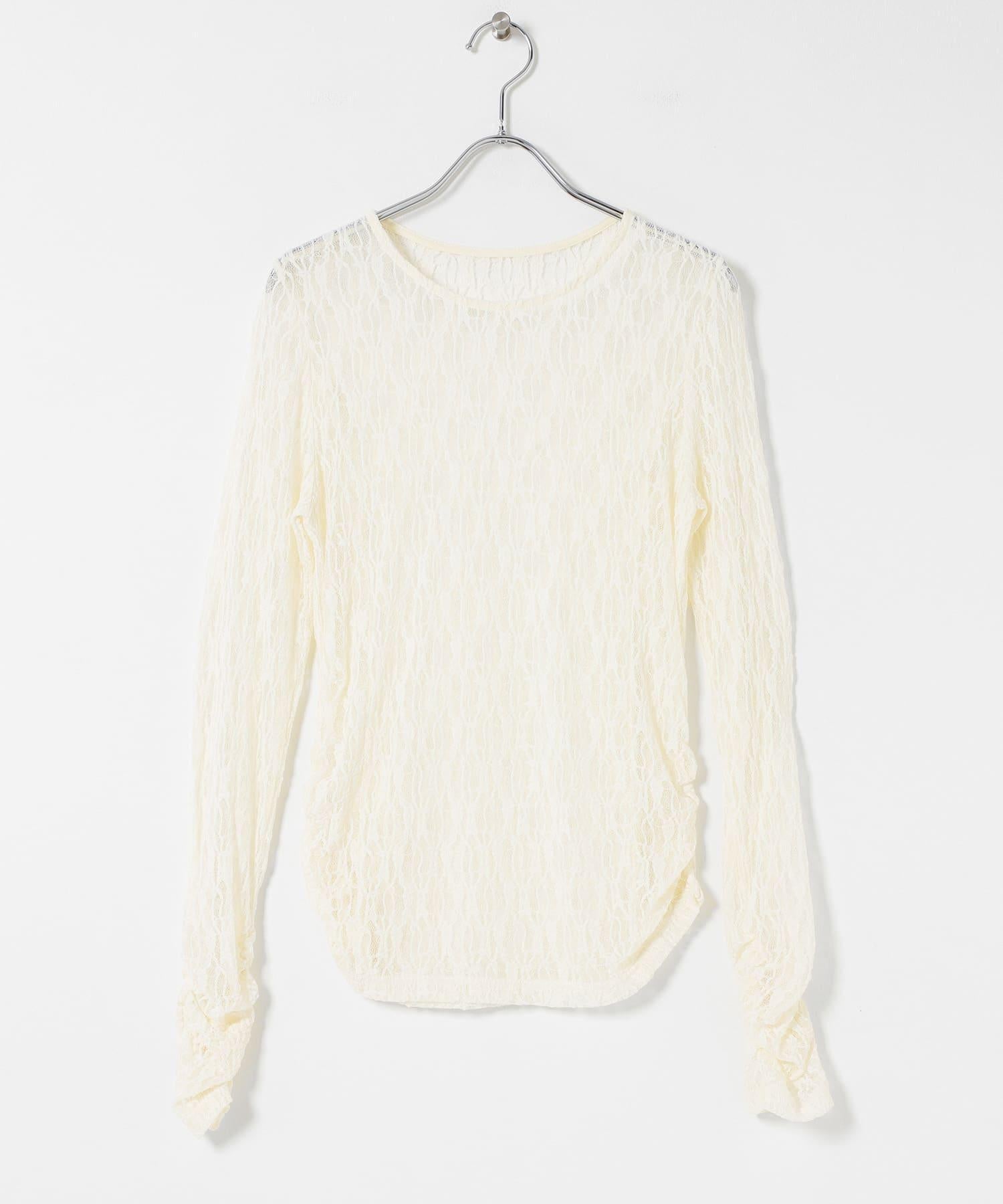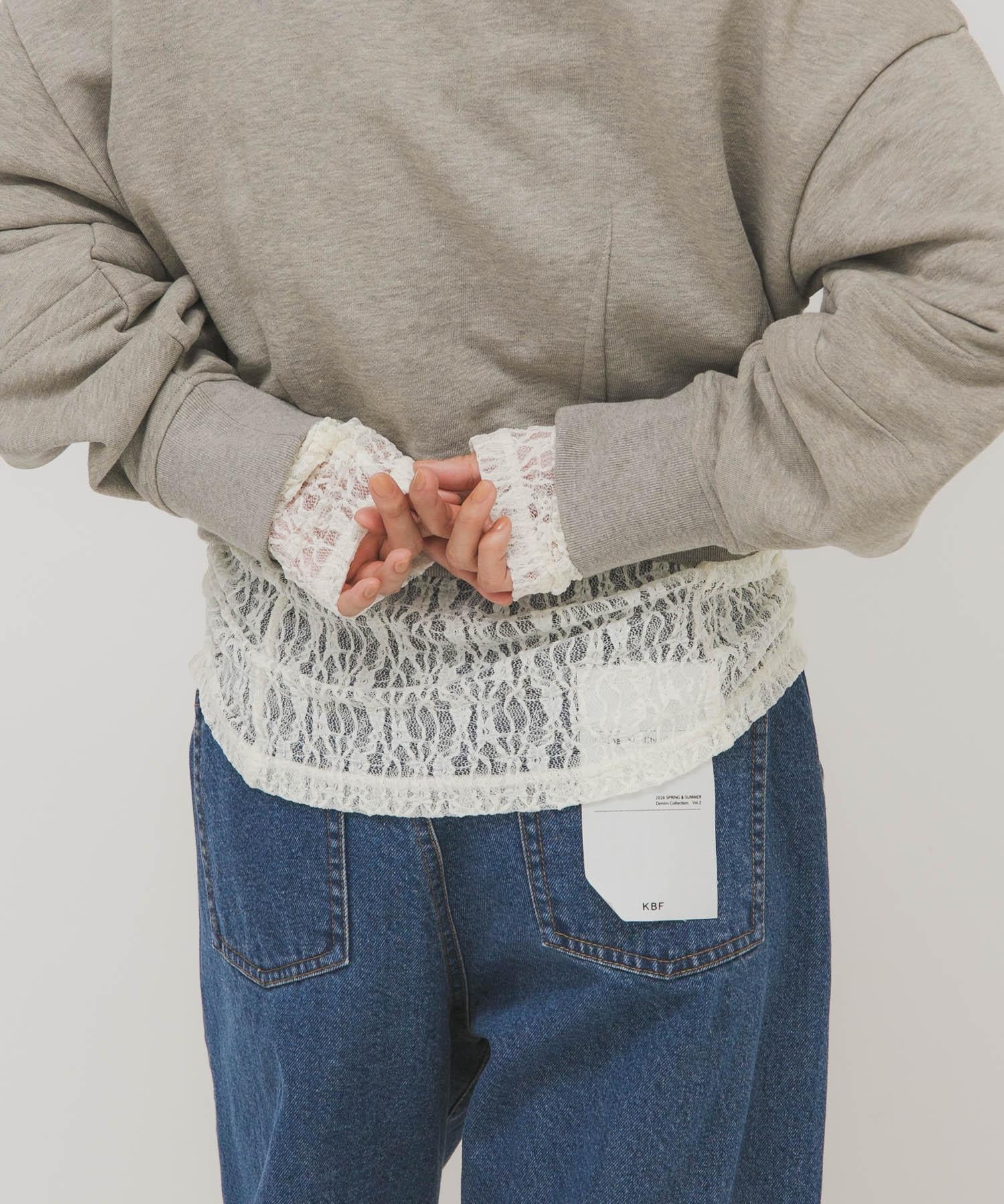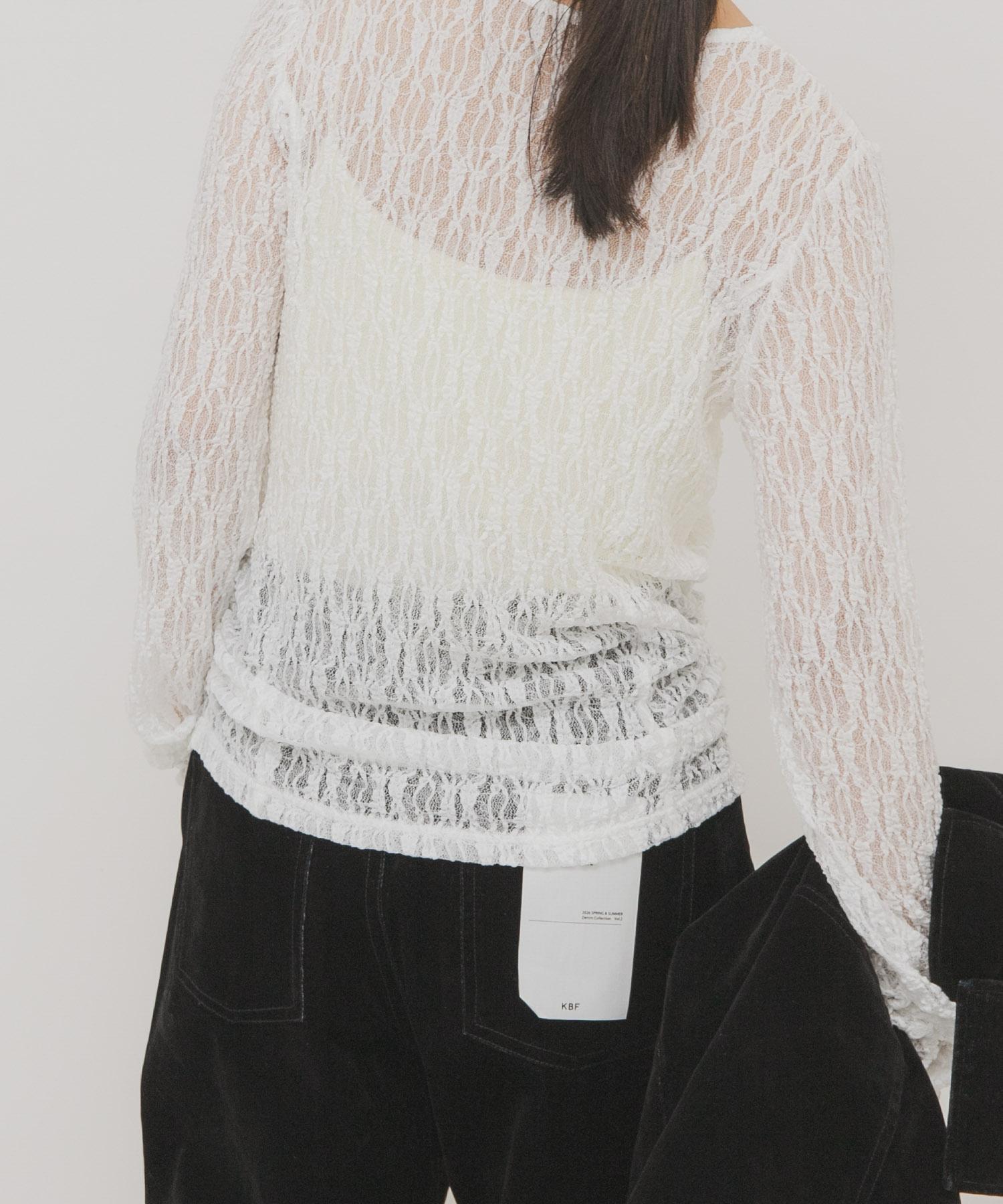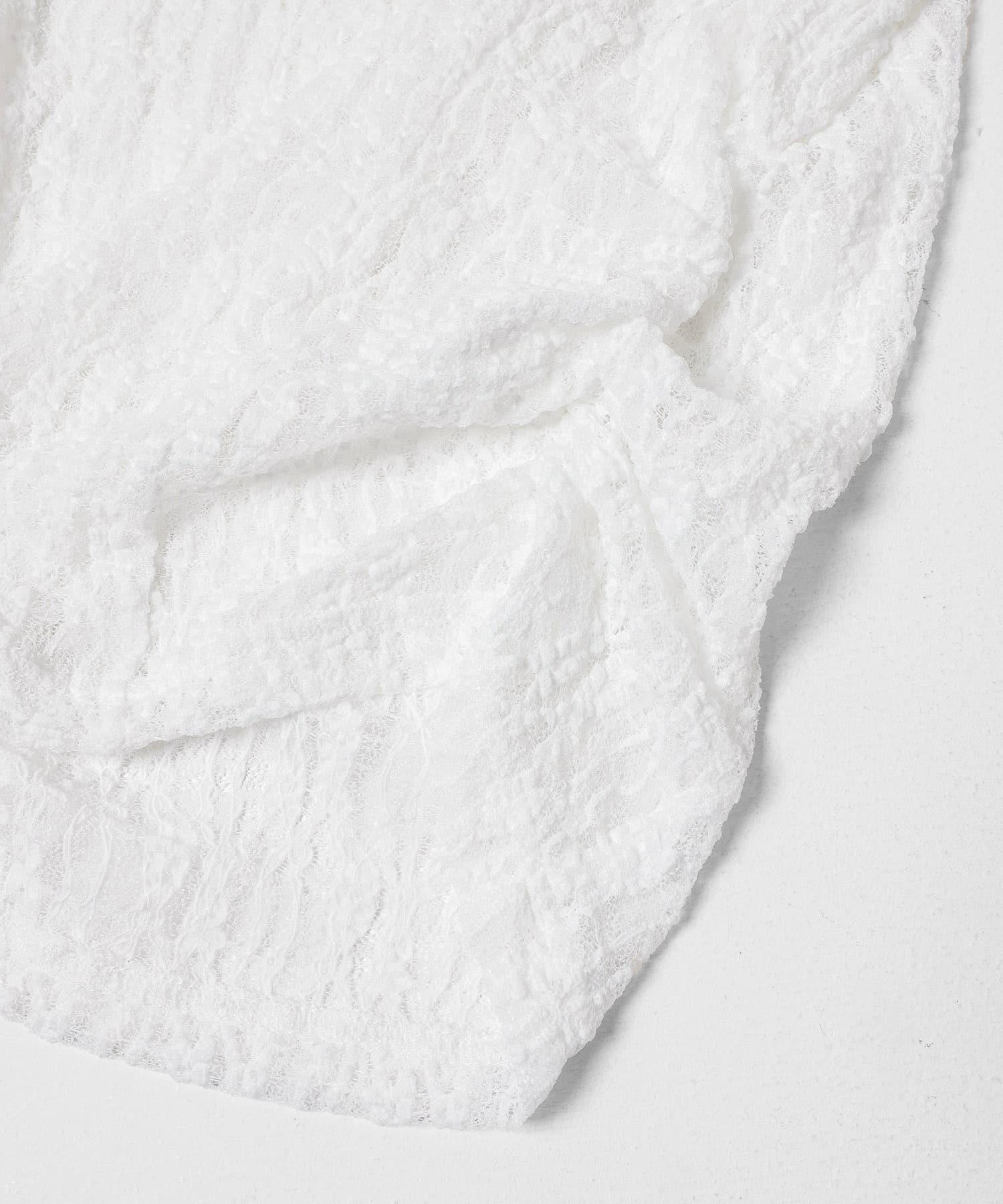 這款蕾絲上衣觸感柔軟,貼膚舒適。通過在身體周圍進行切換,打造出簡潔利落的造型。不僅可作為單品,還可作為疊穿單品使用。