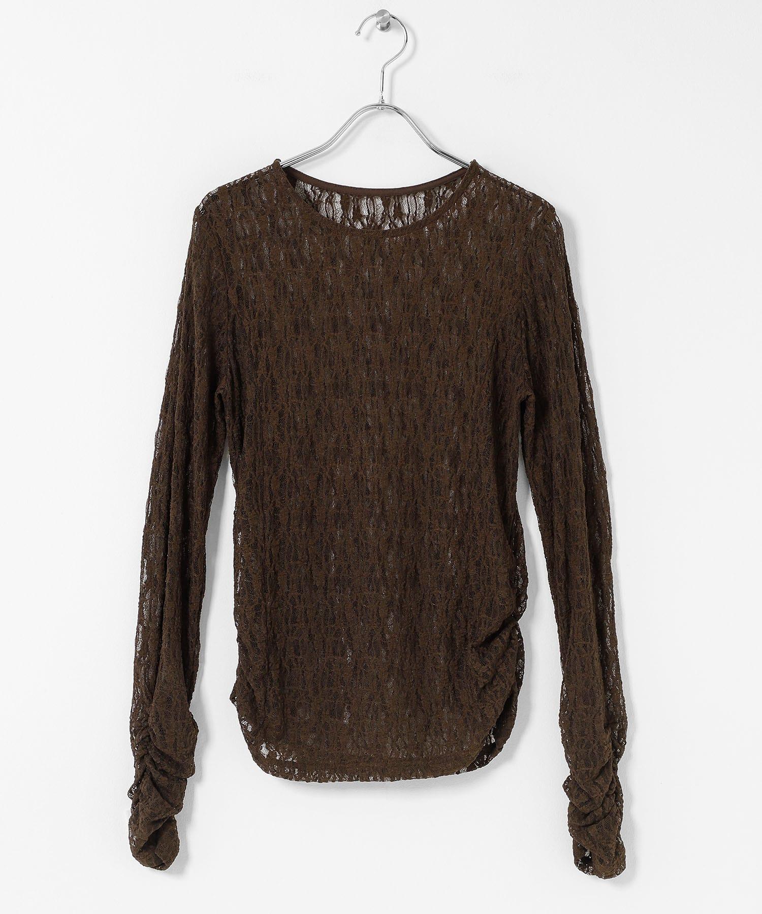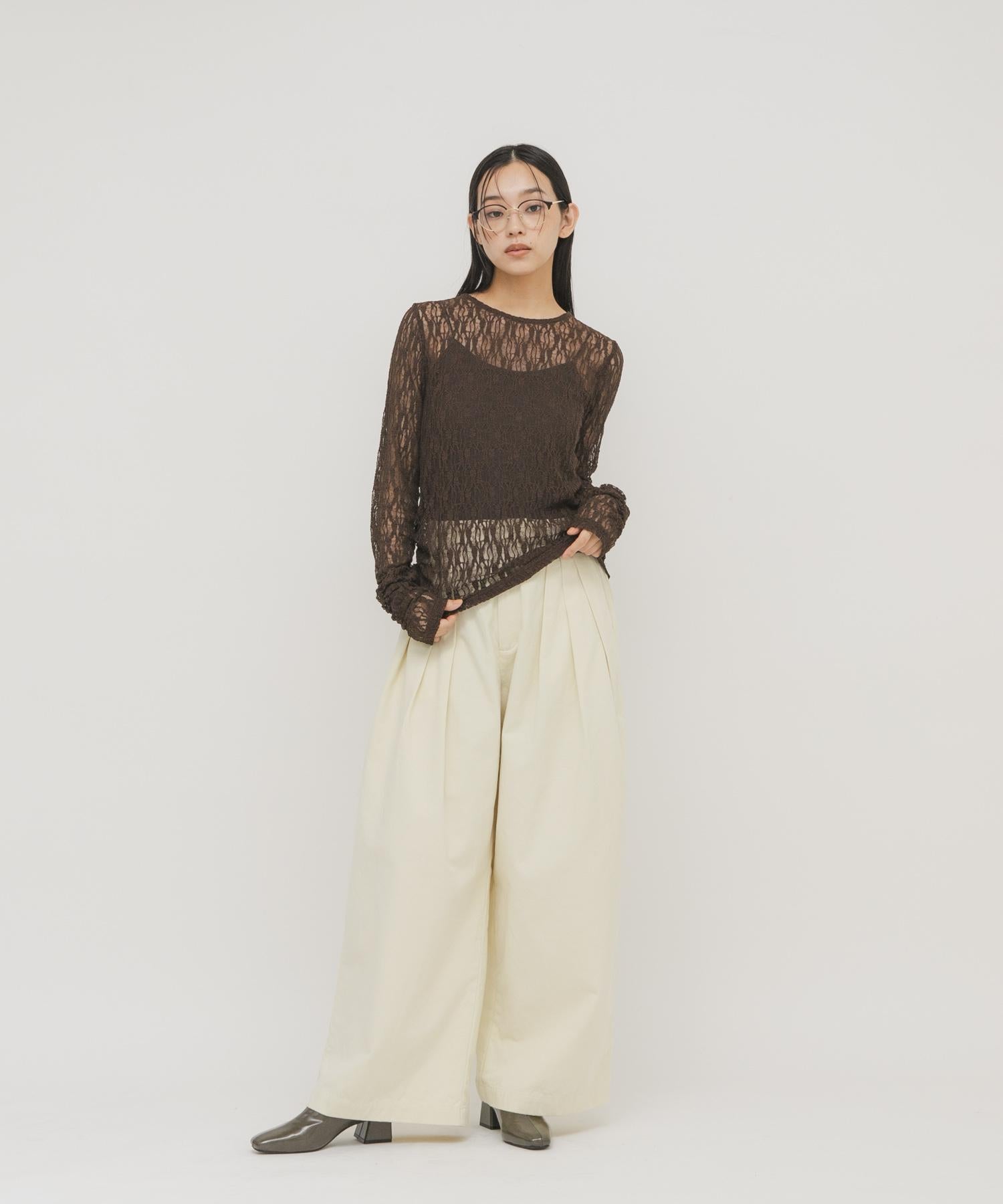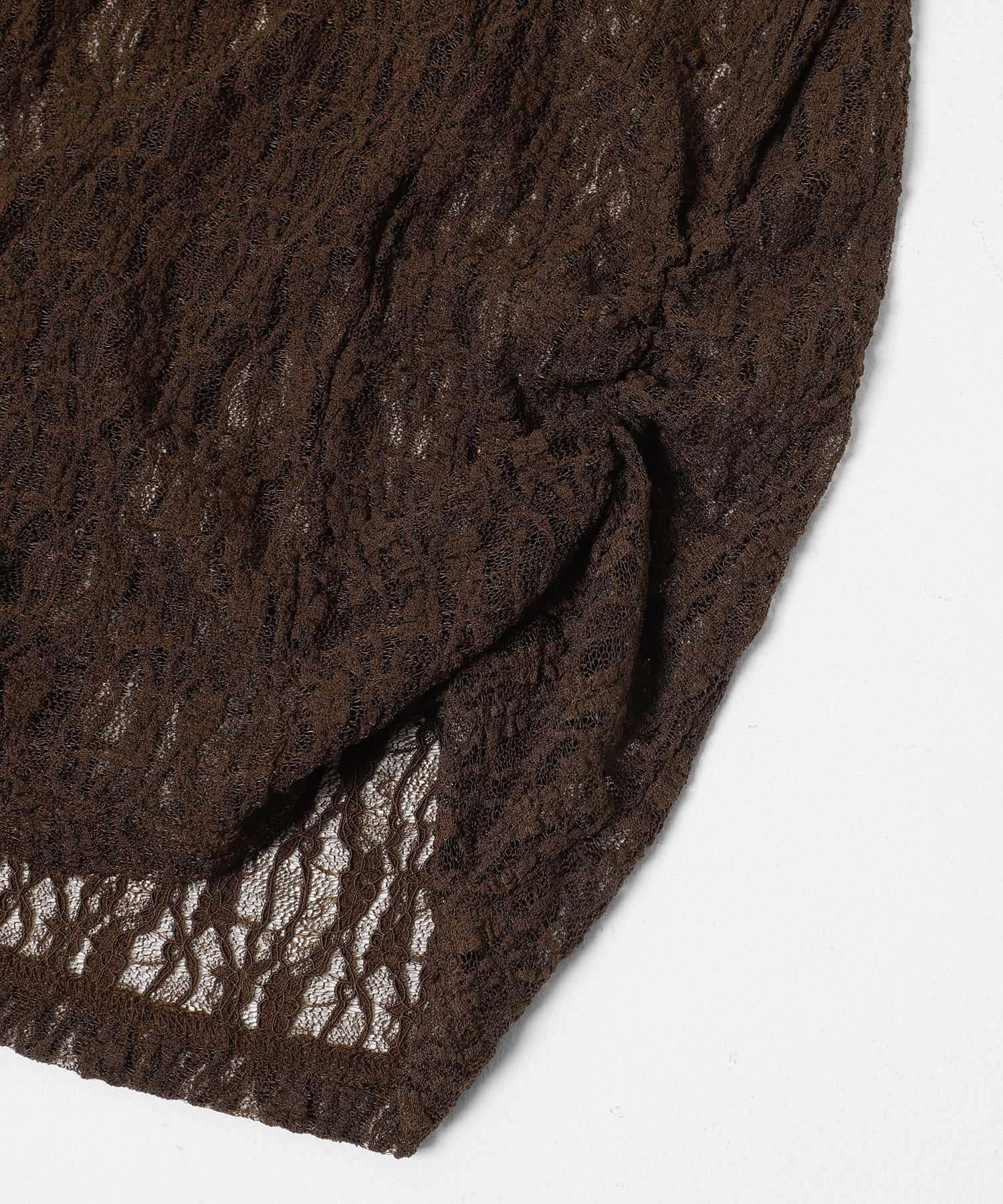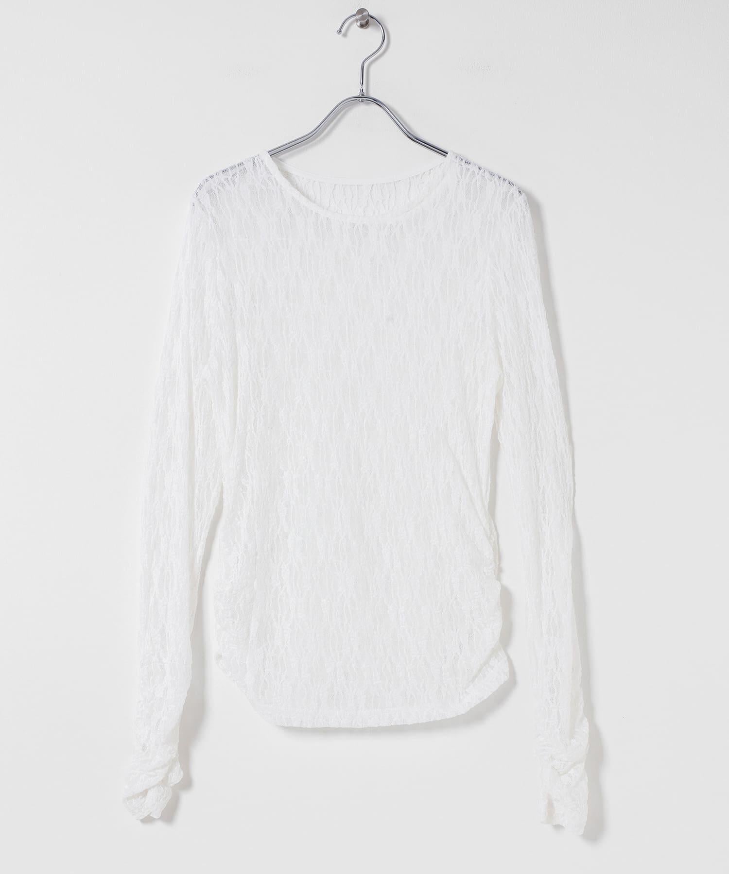 這款蕾絲上衣觸感柔軟,貼膚舒適。通過在身體周圍進行切換,打造出簡潔利落的造型。不僅可作為單品,還可作為疊穿單品使用。