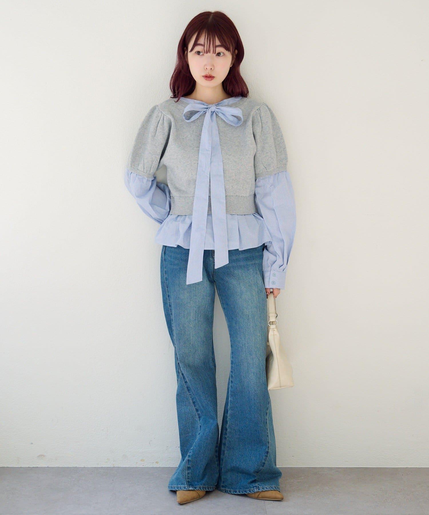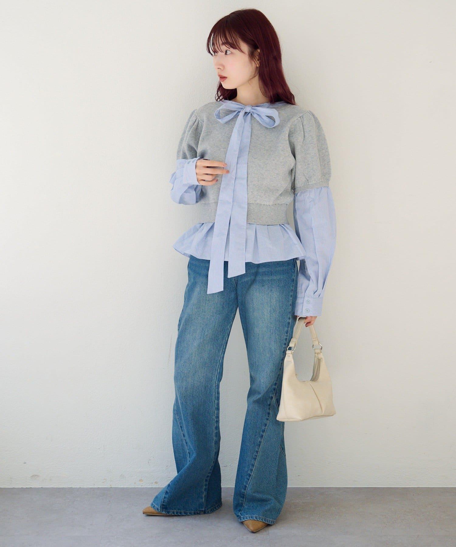 搭配喇叭褲,打造甜美的成人休閒風格。