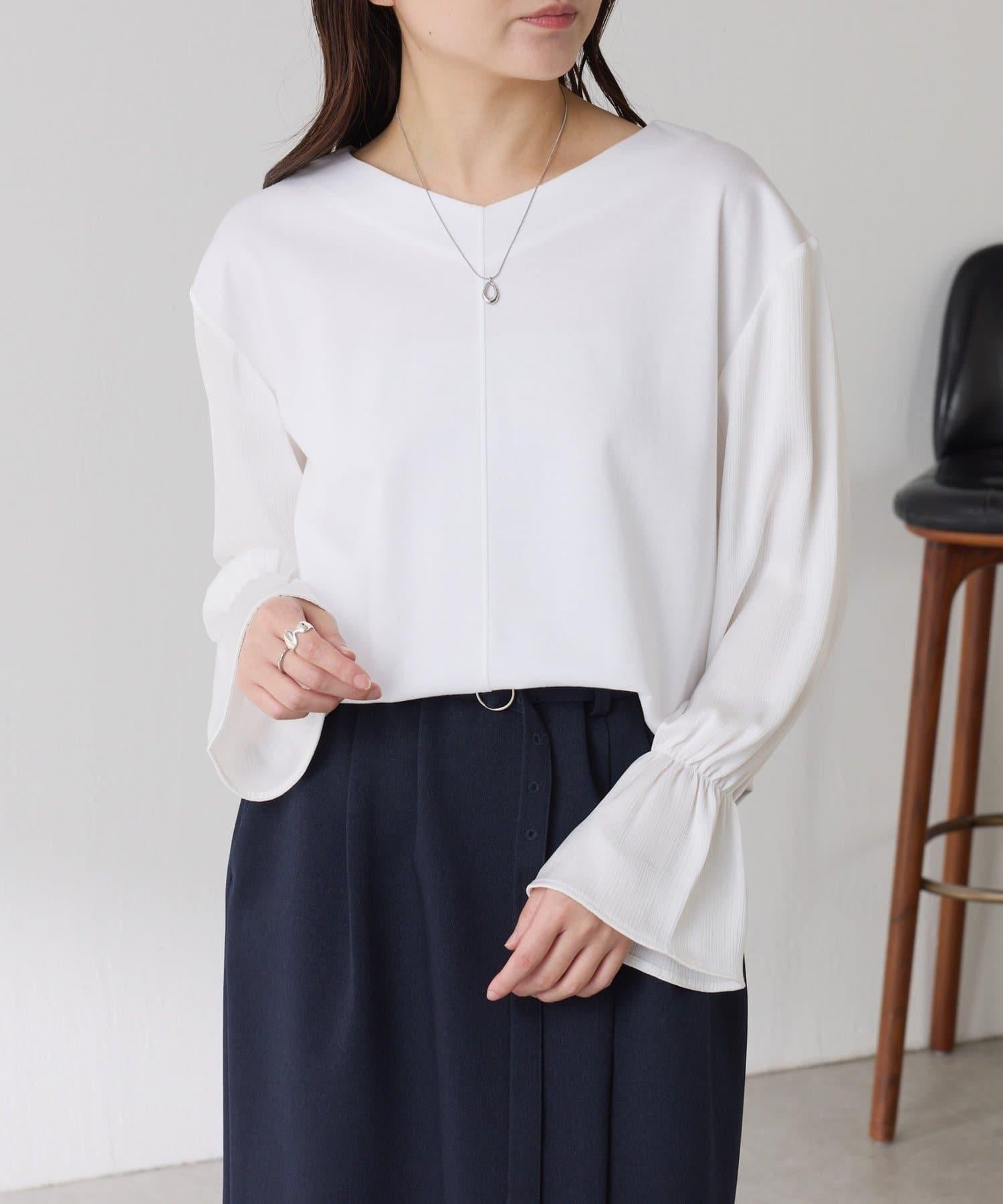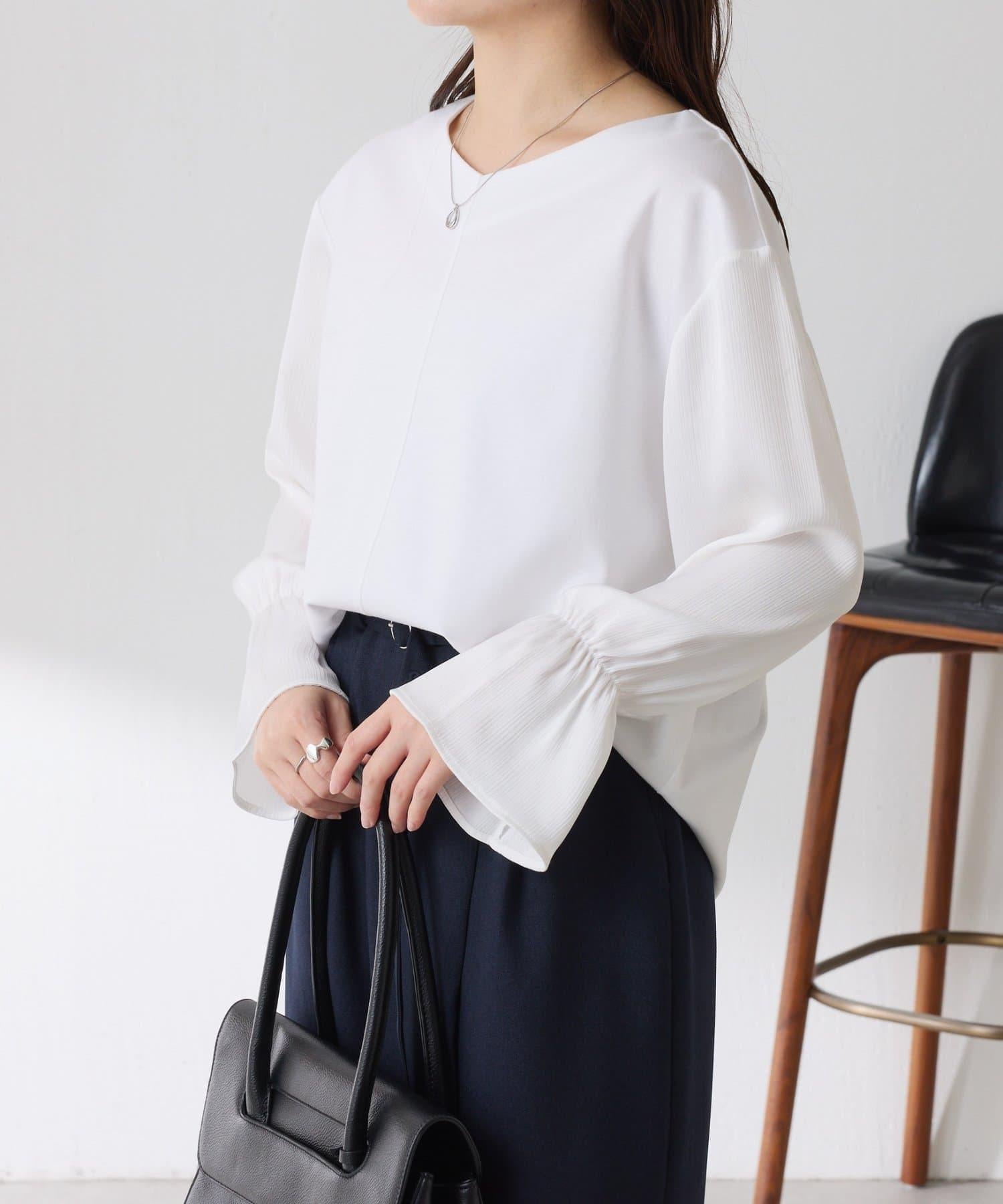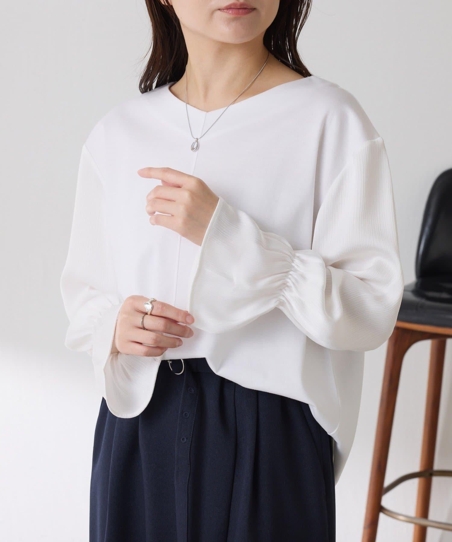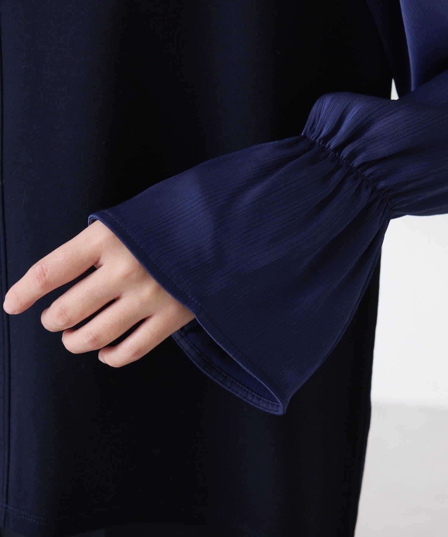 袖口是帶鬆緊帶的喇叭袖,便於捲起手臂。捲起手臂時飄逸的廓形也很美妙。