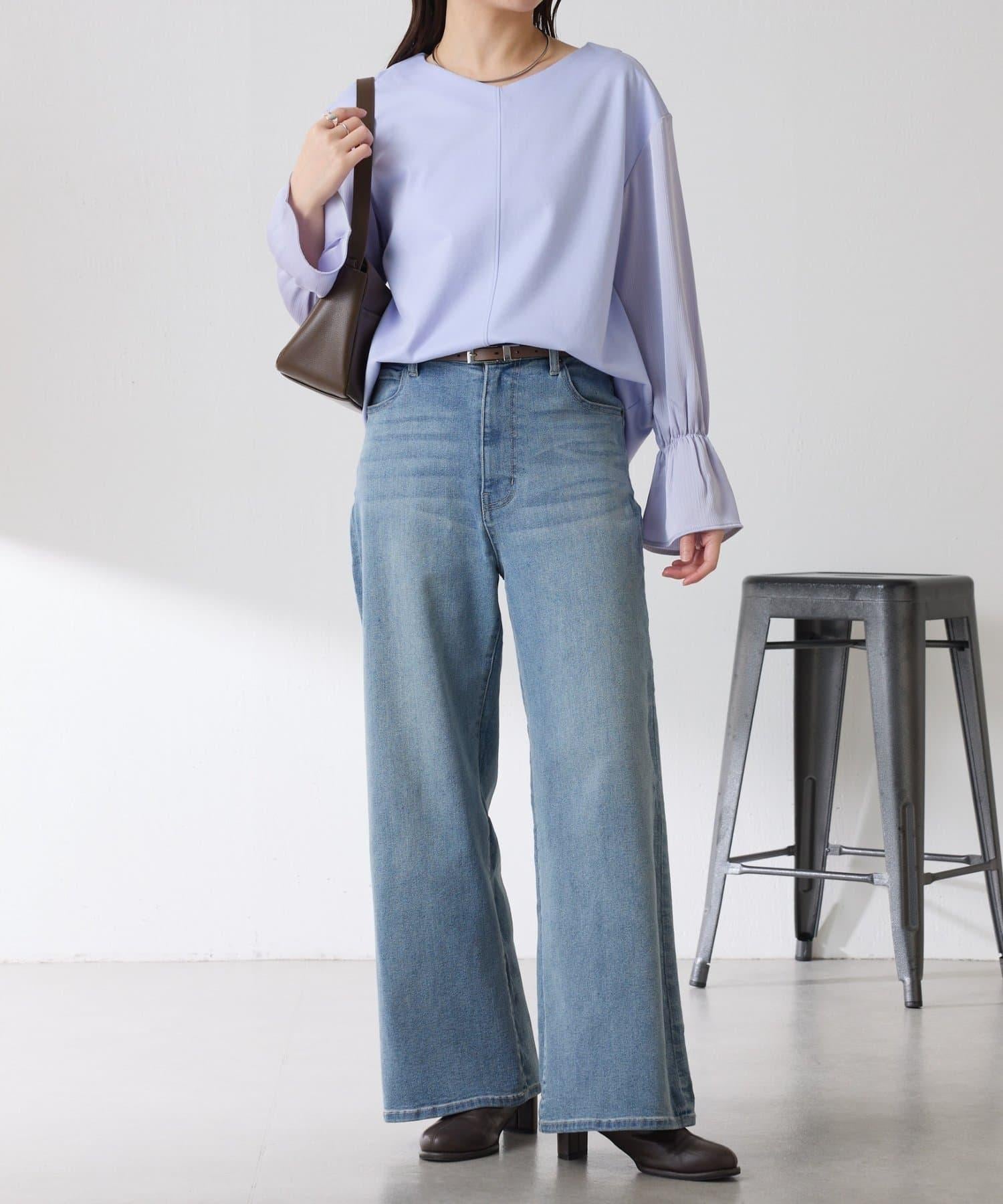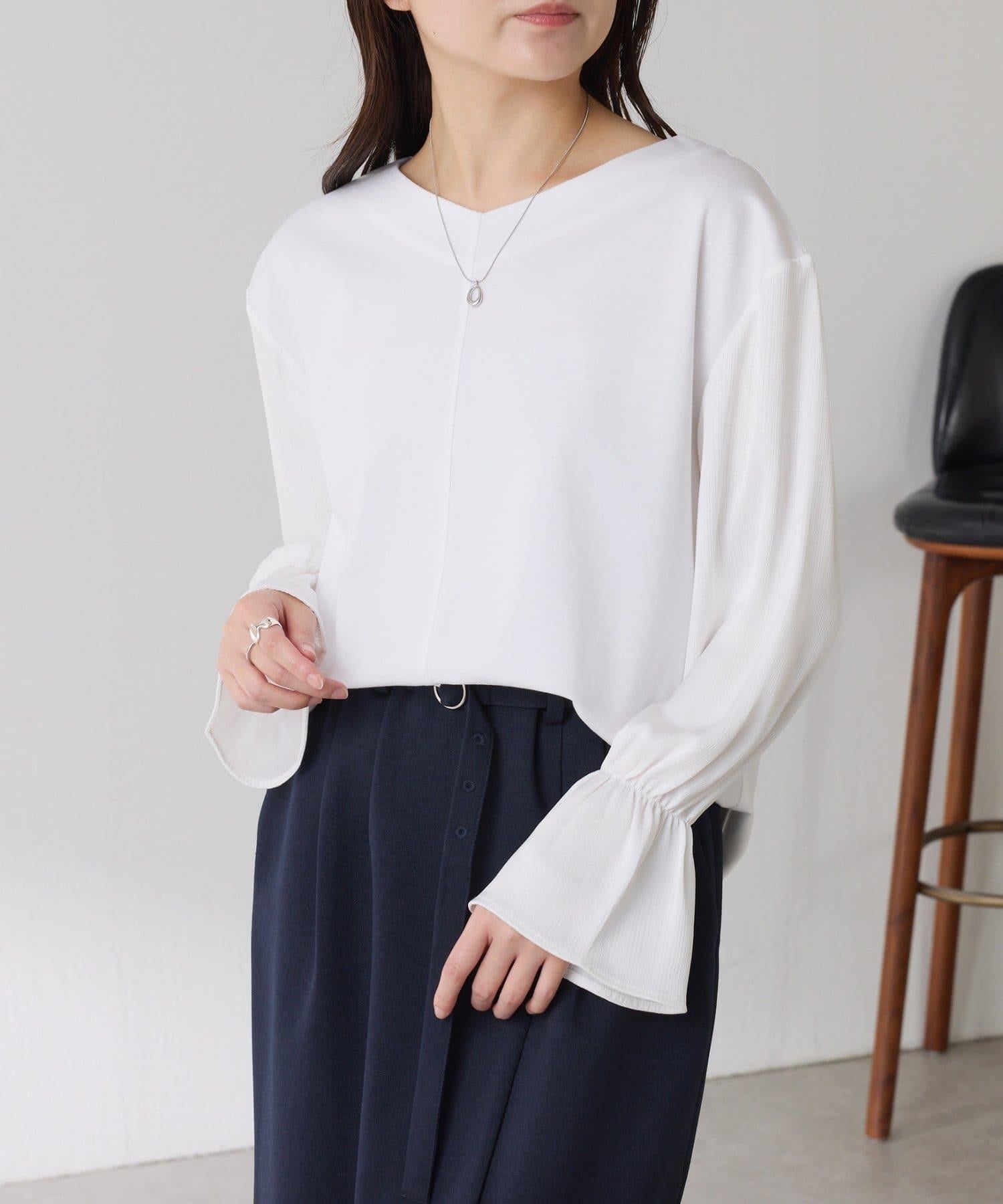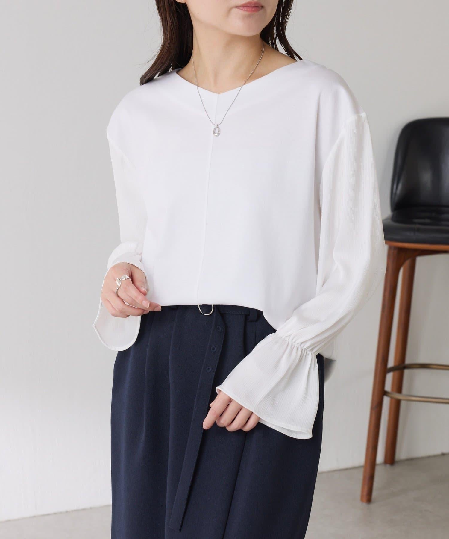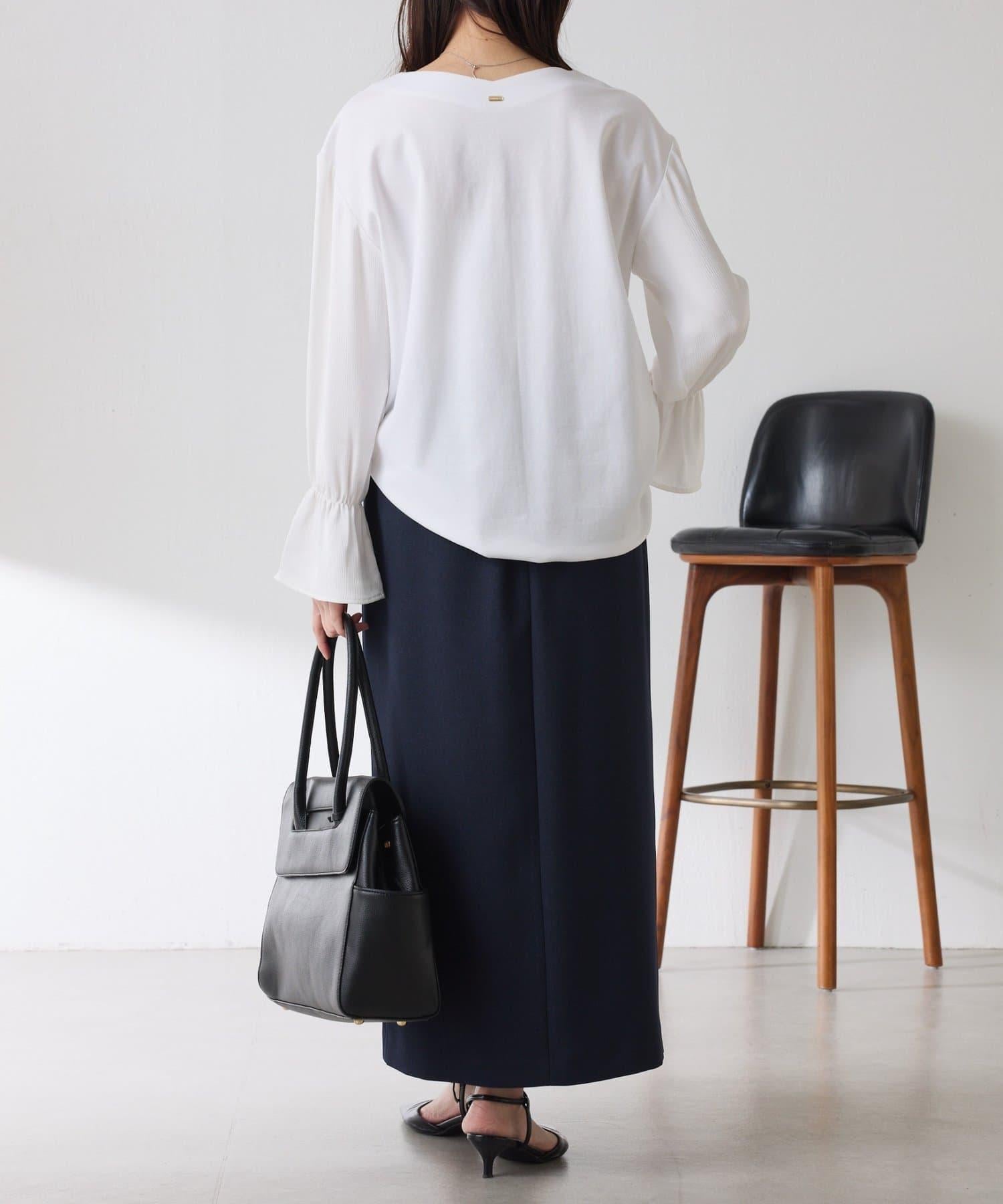 袖口是帶鬆緊帶的喇叭袖,便於捲起手臂。捲起手臂時飄逸的廓形也很美妙。