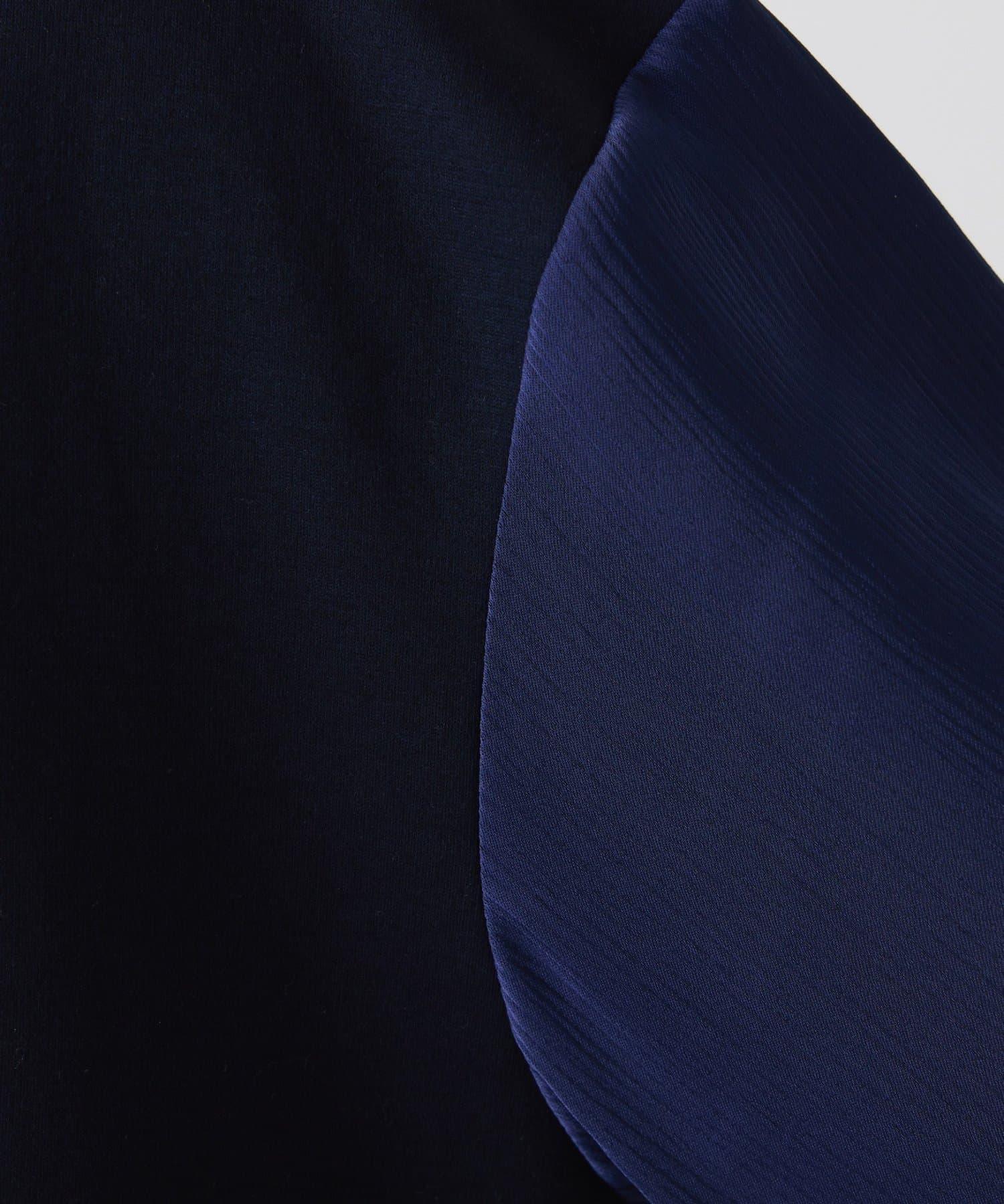 由不同材質製成的組合剪裁縫製,作為單品也很好看。