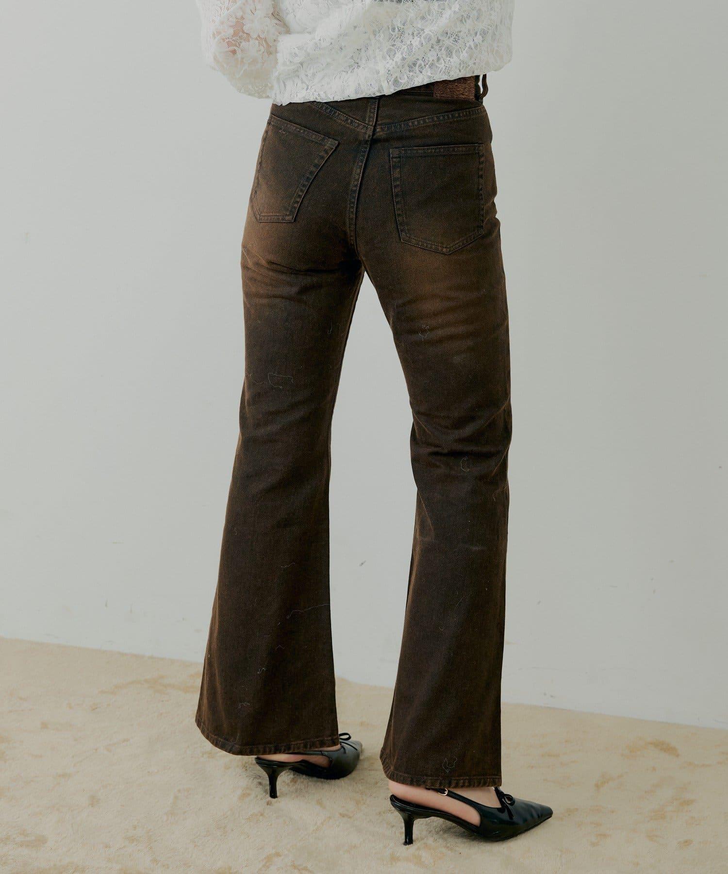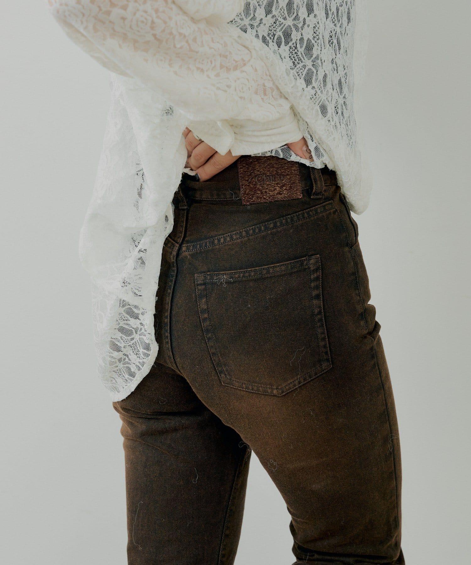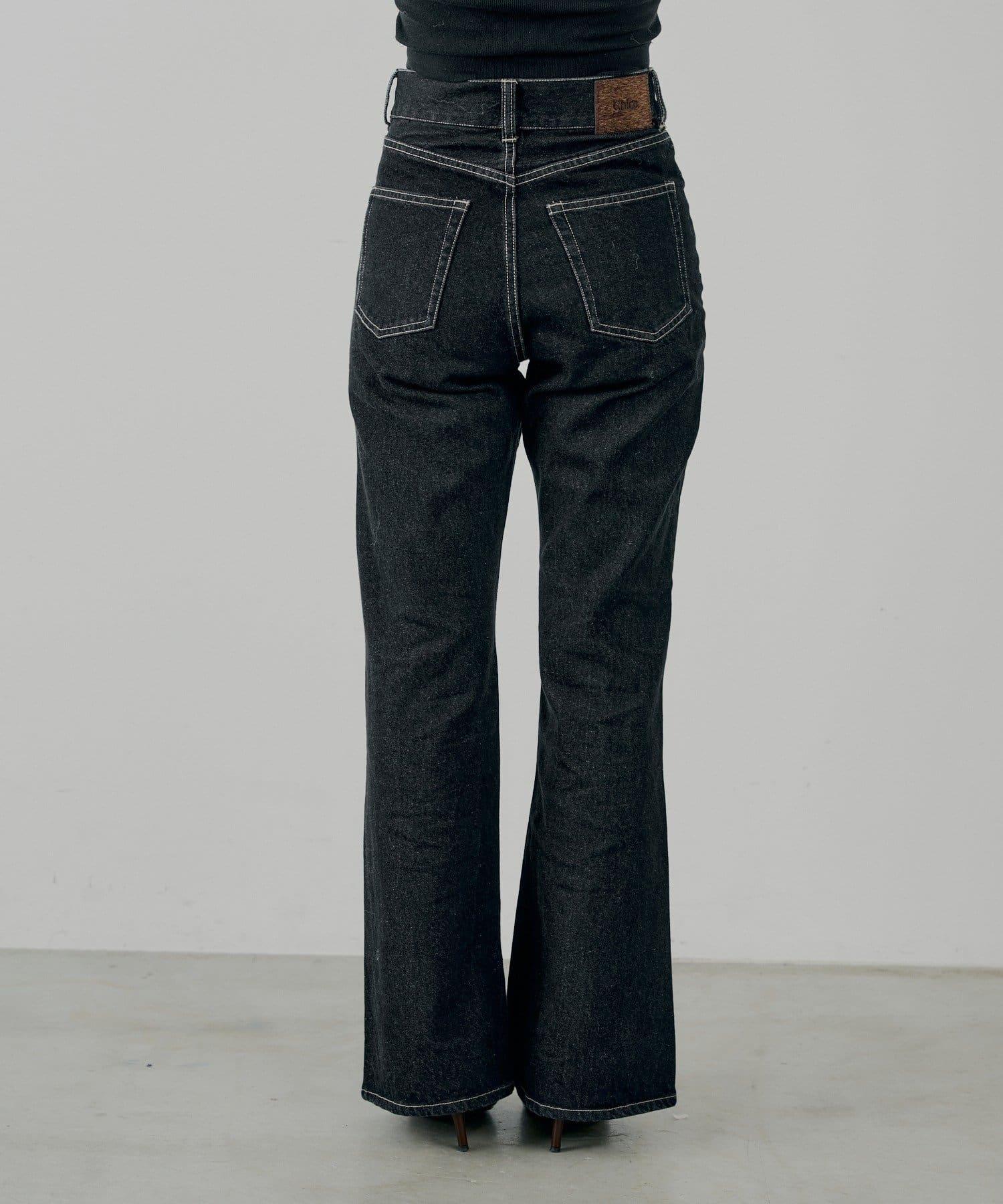 這款帶有補丁的牛仔褲採用喇叭廓形,非常迷人。