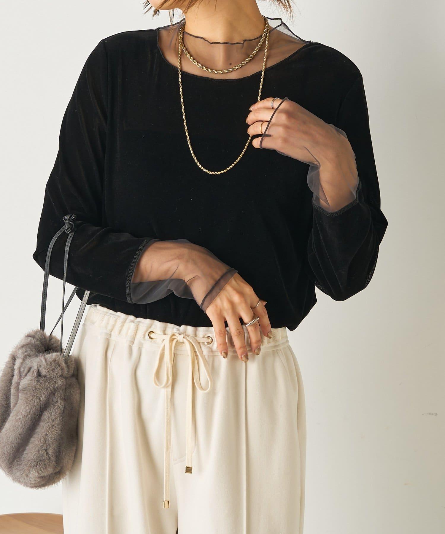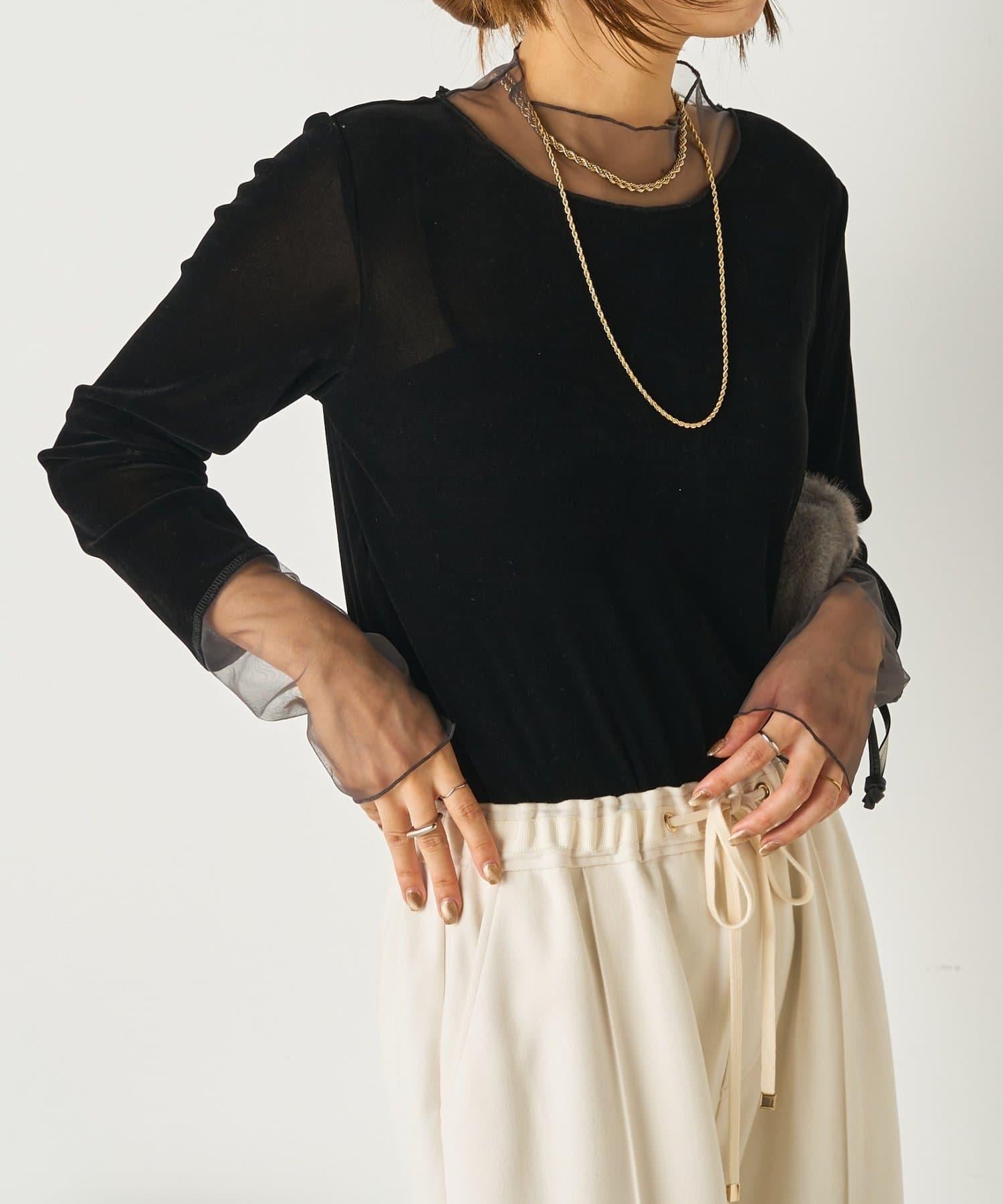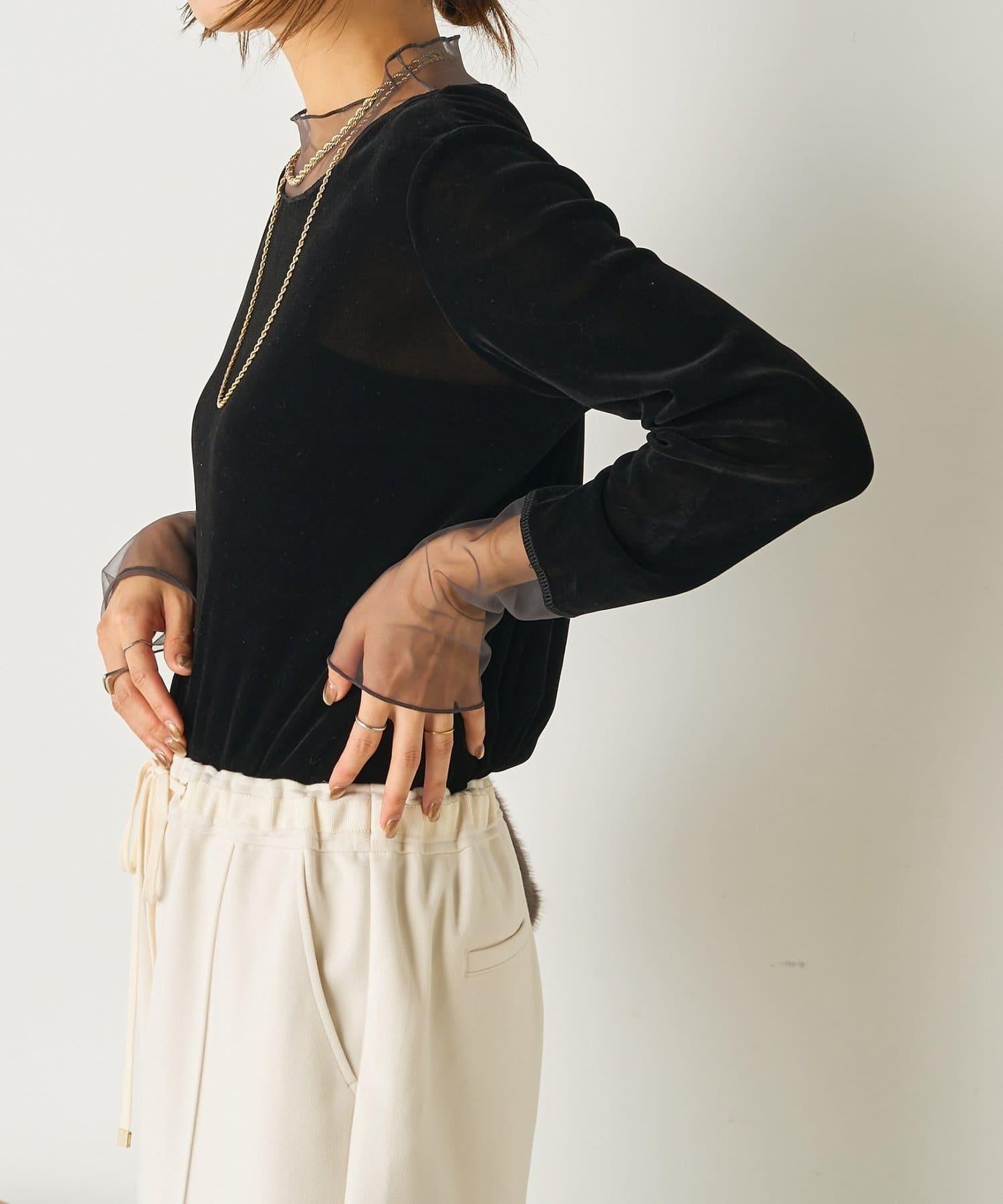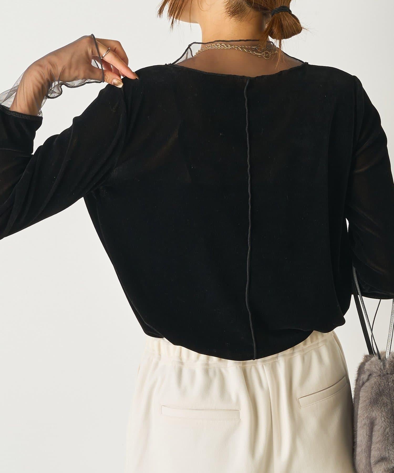 拼接透視天鵝絨上衣