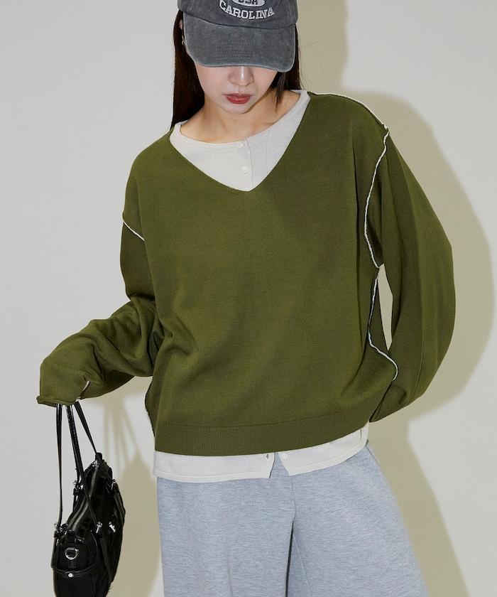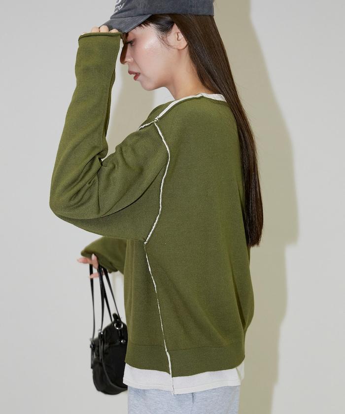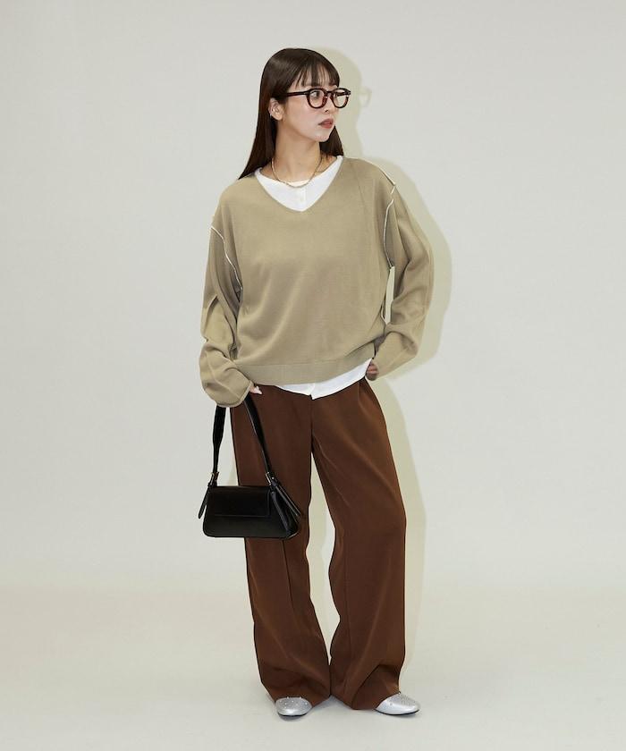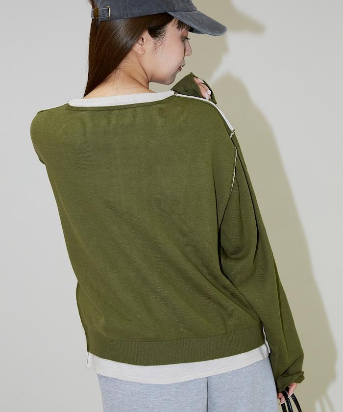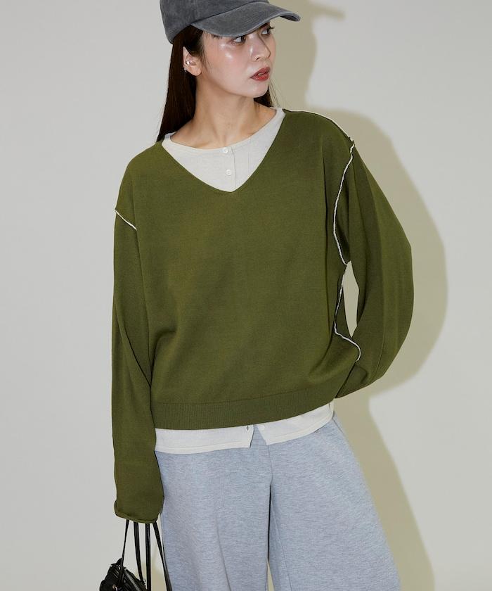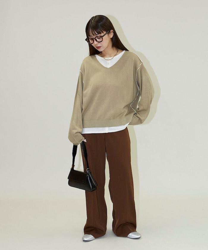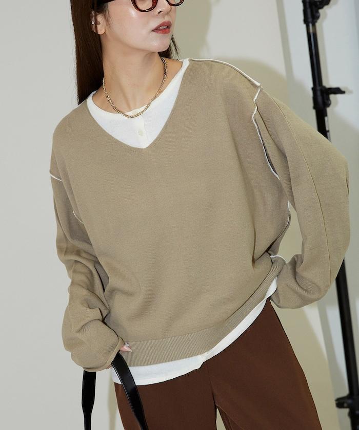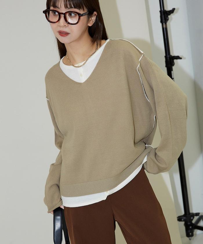 這款針織衫的領口和下襬就像一層內搭,增加了搭配的層次感。