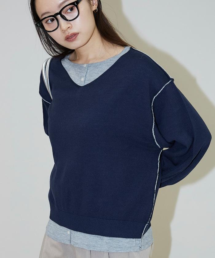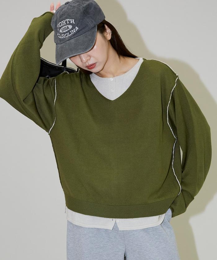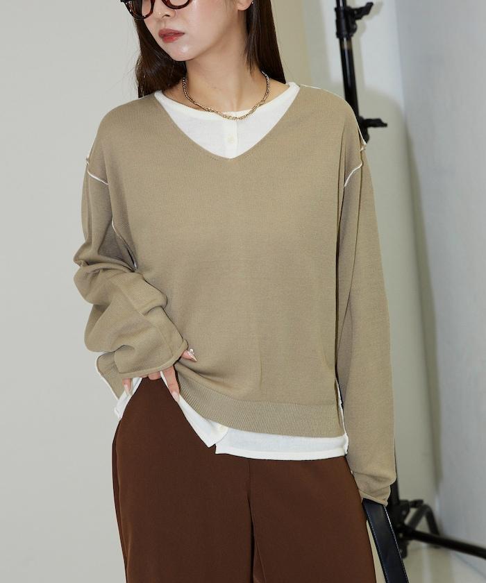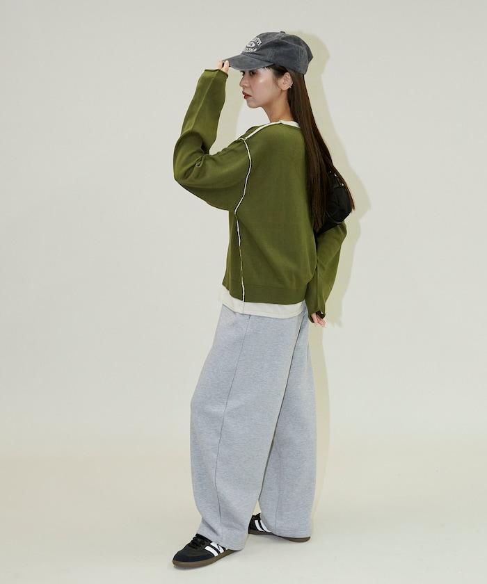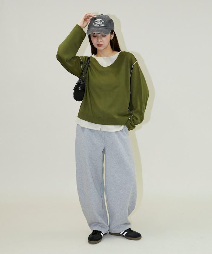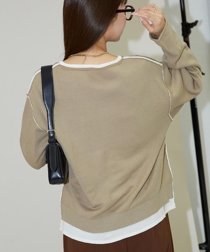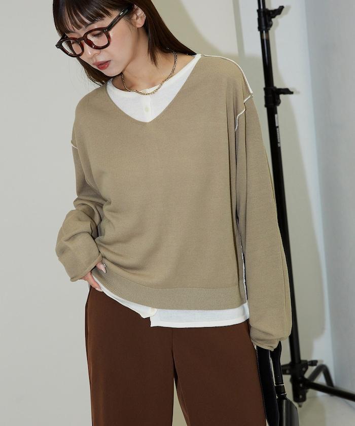 這款針織衫的領口和下襬就像一層內搭,增加了搭配的層次感。