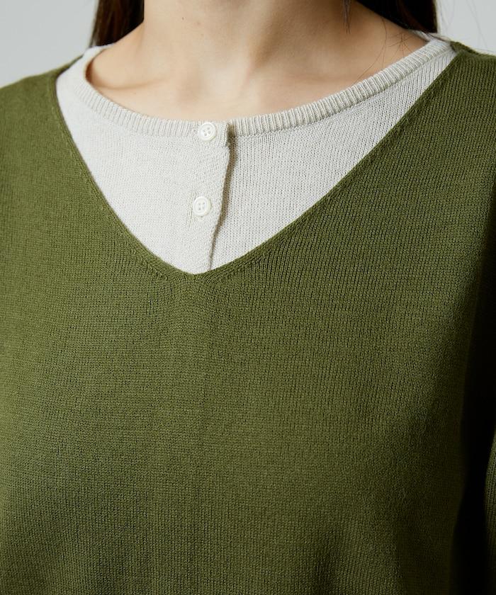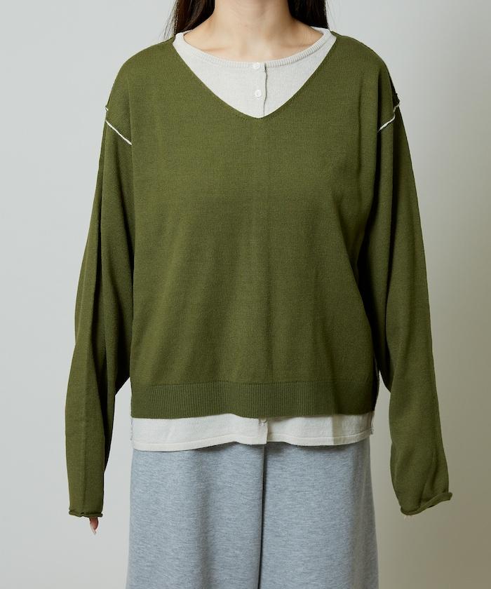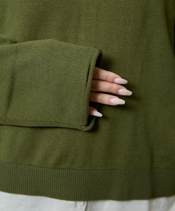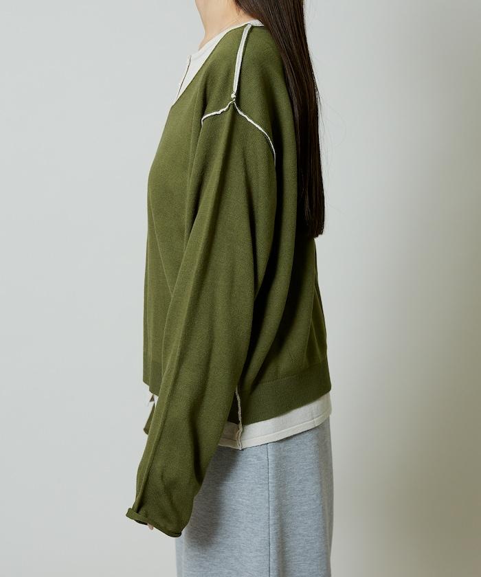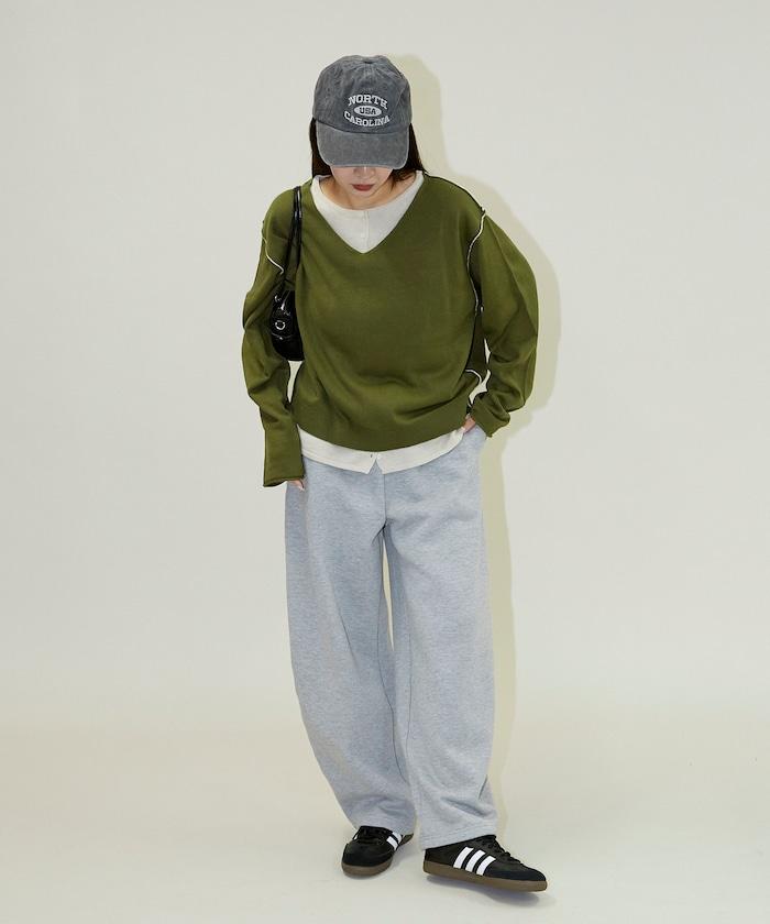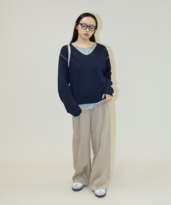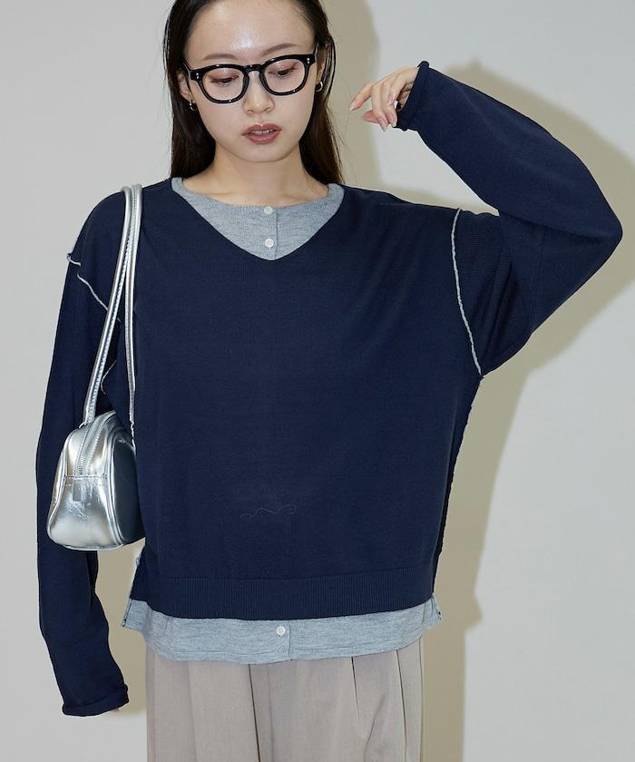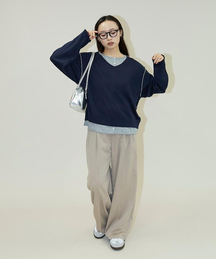 這款針織衫的領口和下襬就像一層內搭,增加了搭配的層次感。