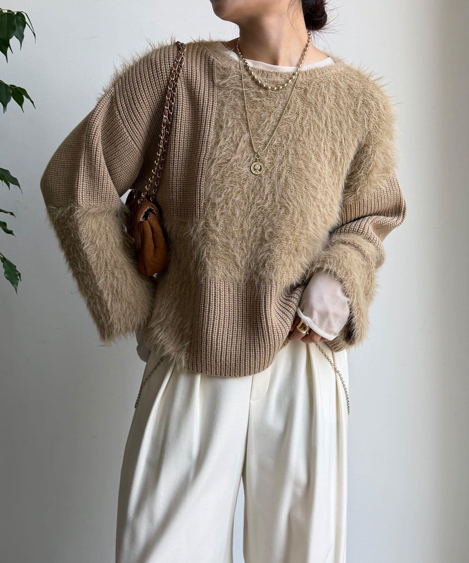 通過變換針織面料,打造時尚外觀的針織衫。