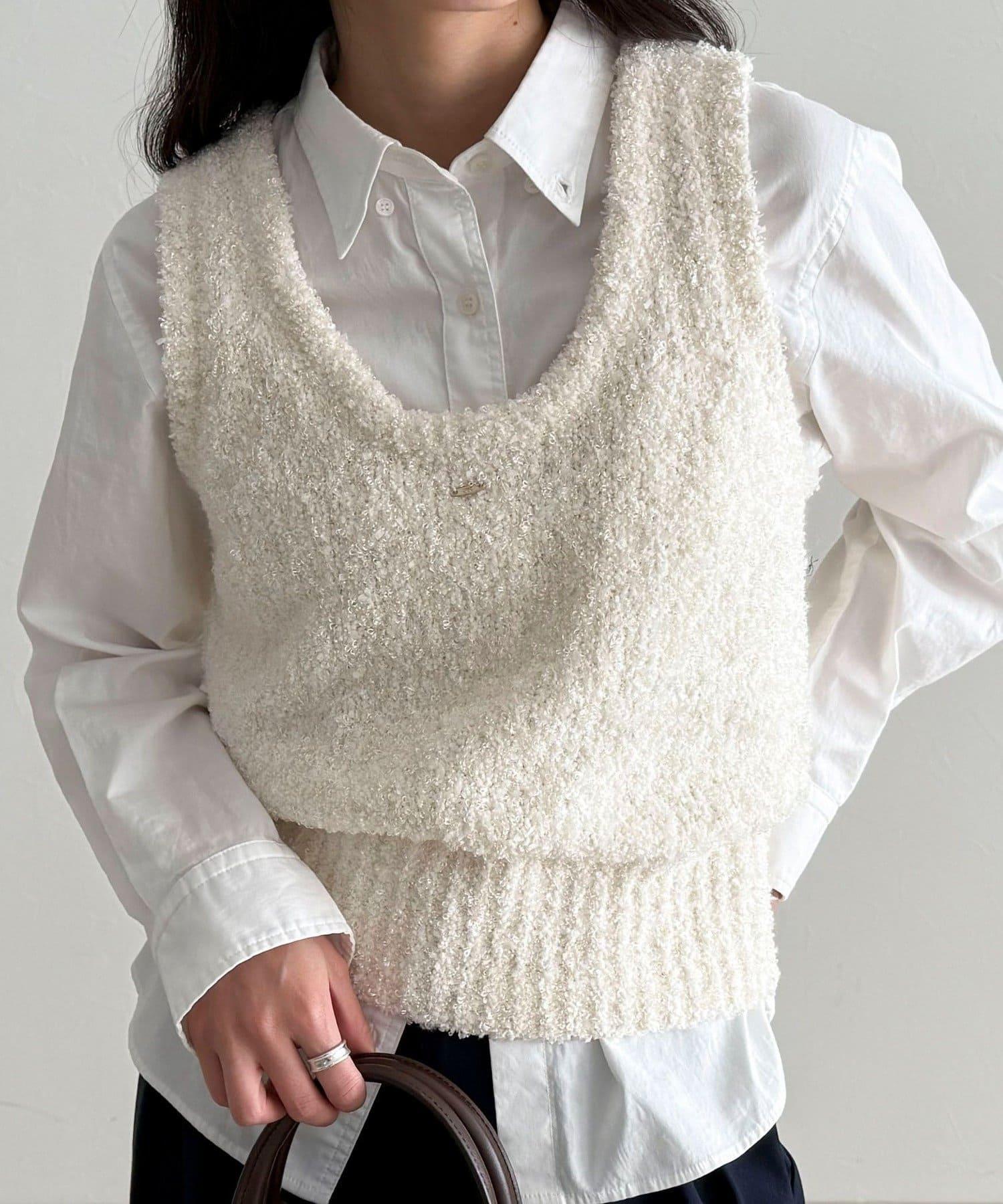 立體針織面料的針織馬甲,突出了面料的表現力。