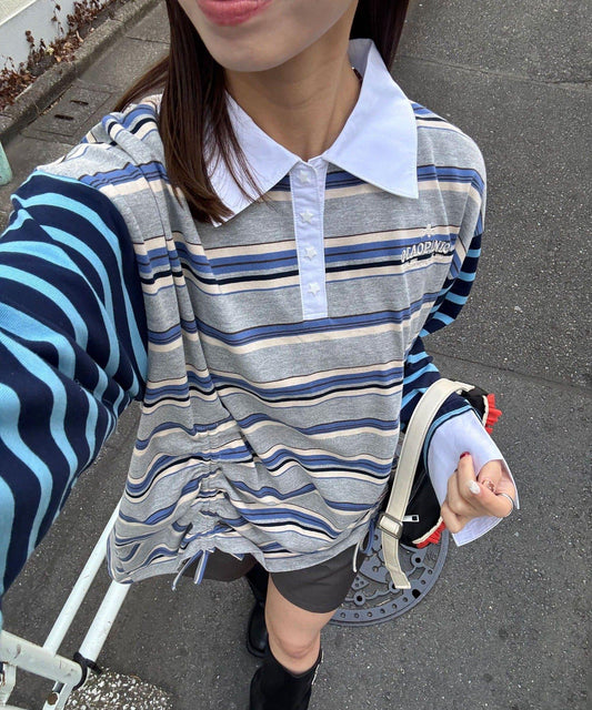 拼接領鹿子紋POLO衫