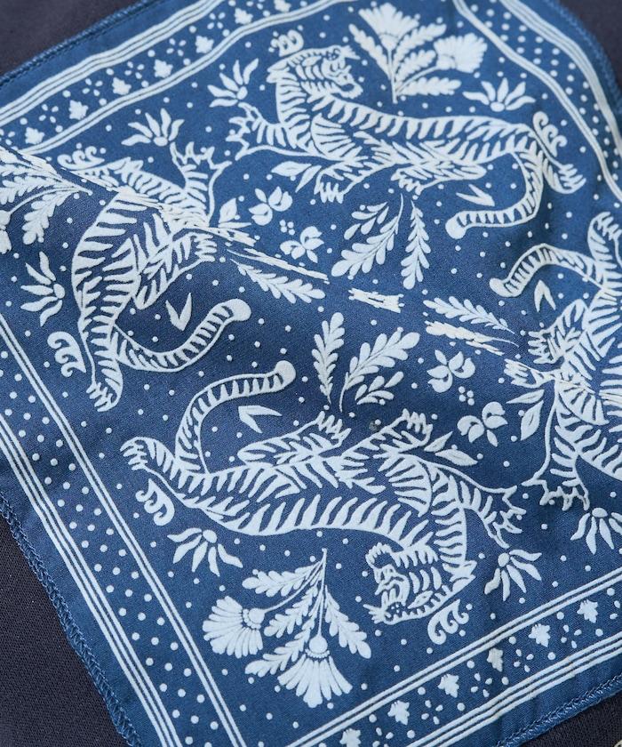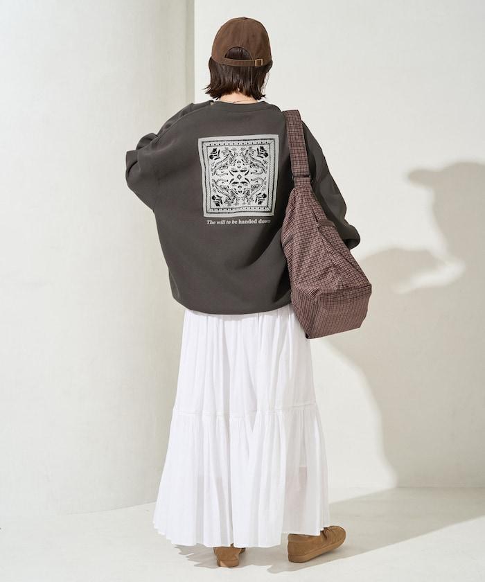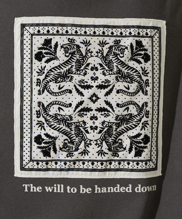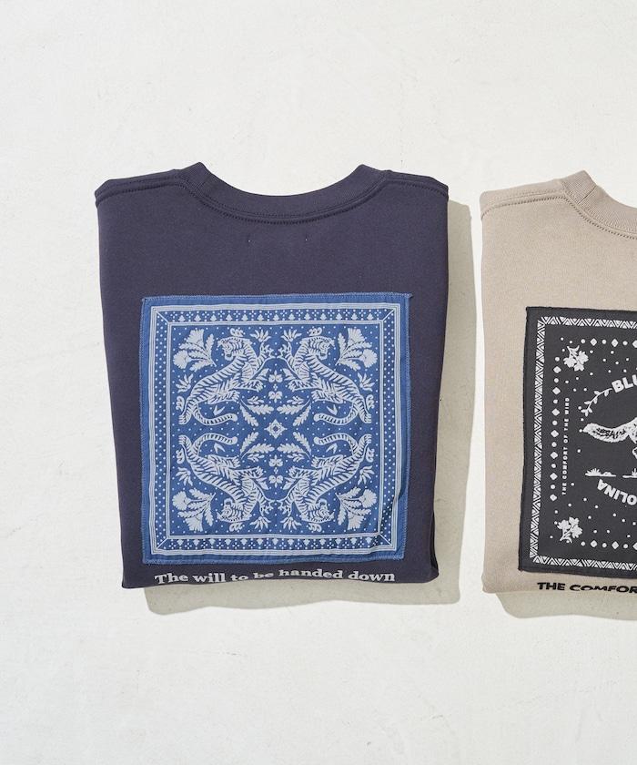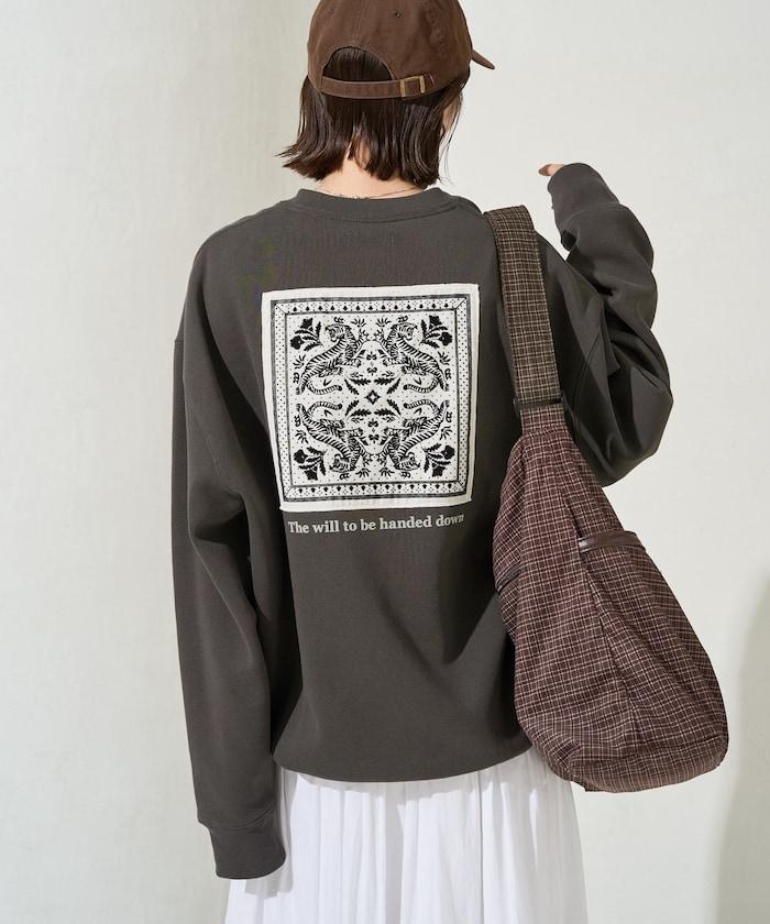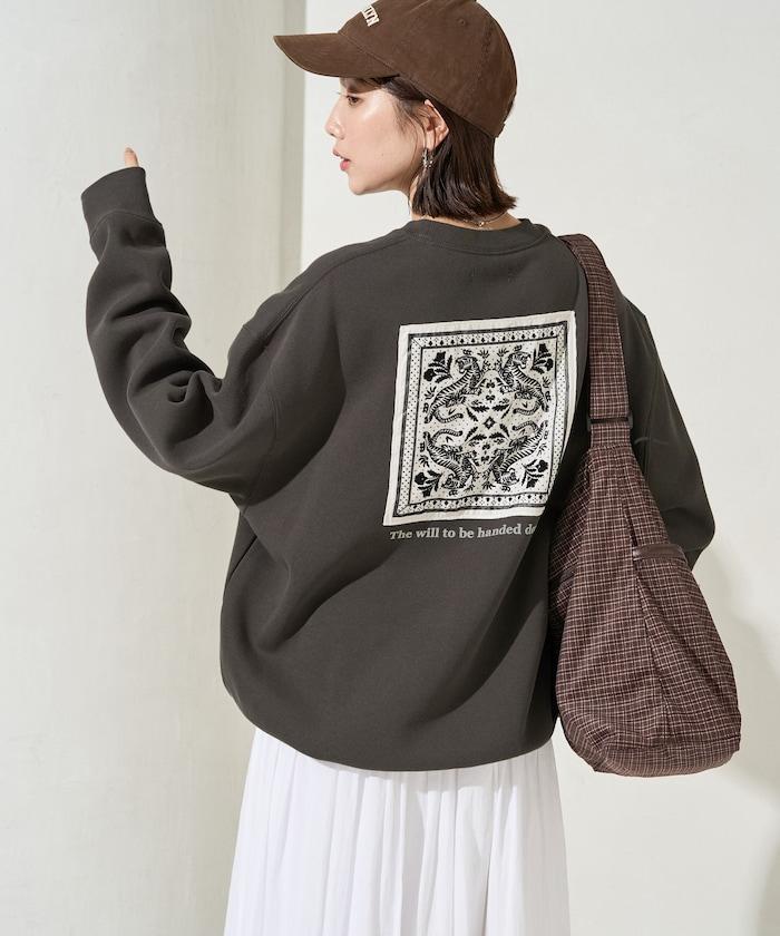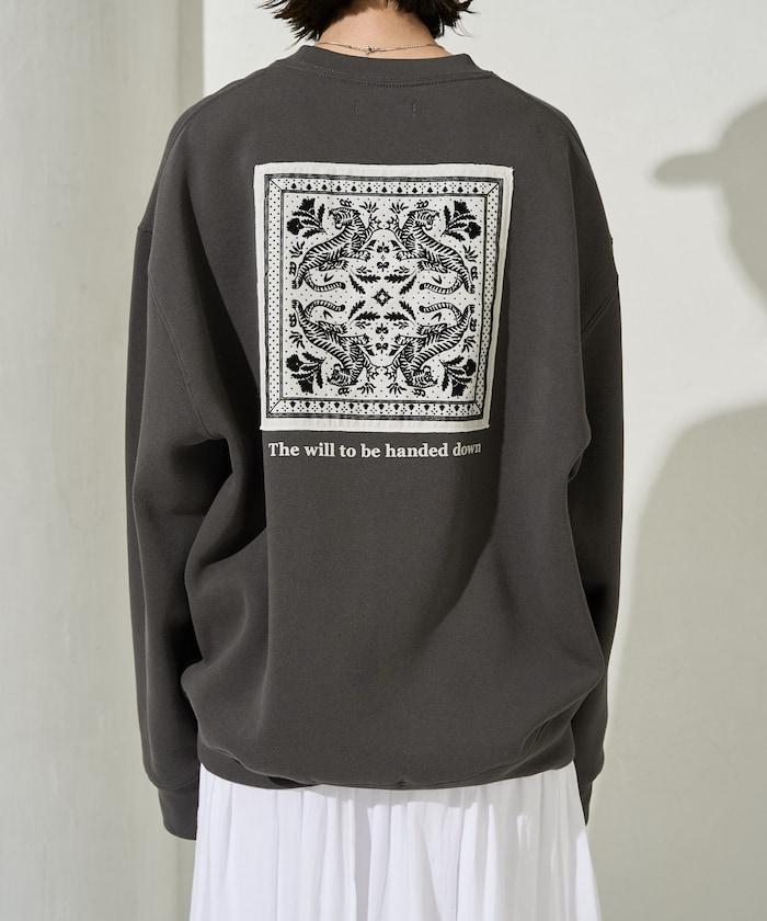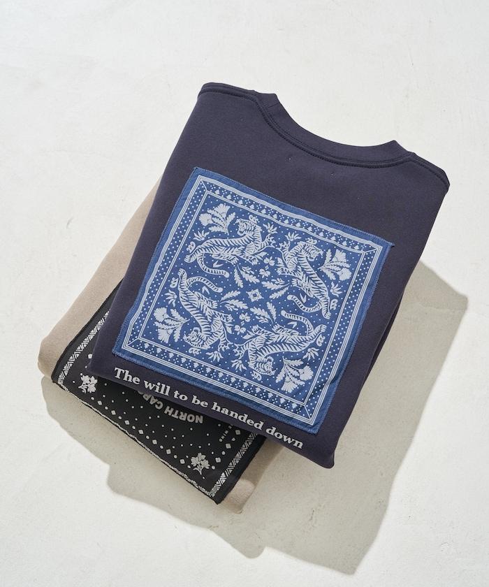 運動衫採用醒目的頭巾圖案和植絨印花組合。