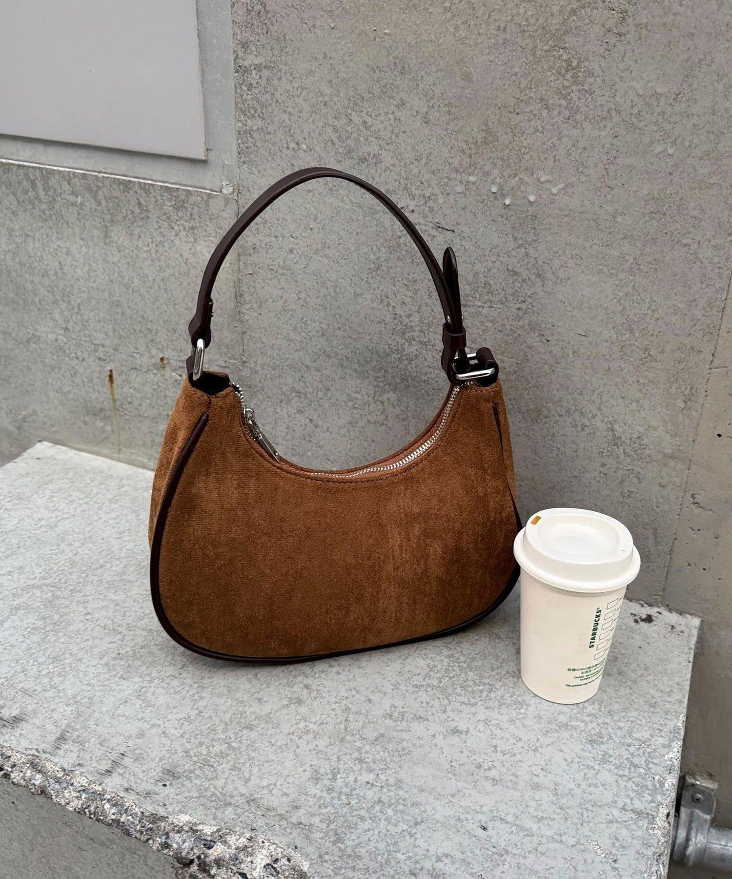 拼接麂皮圓形單肩揹包