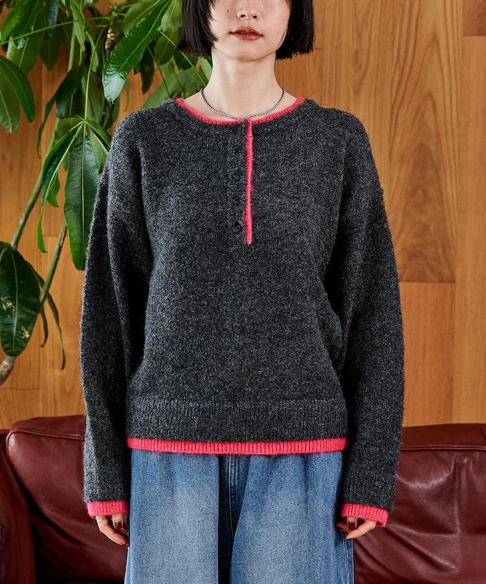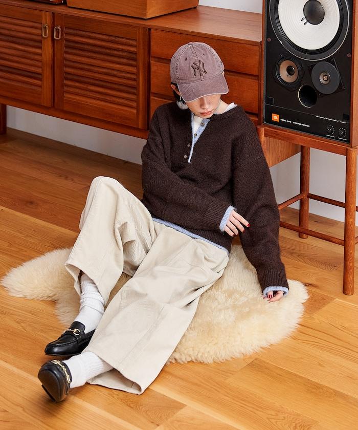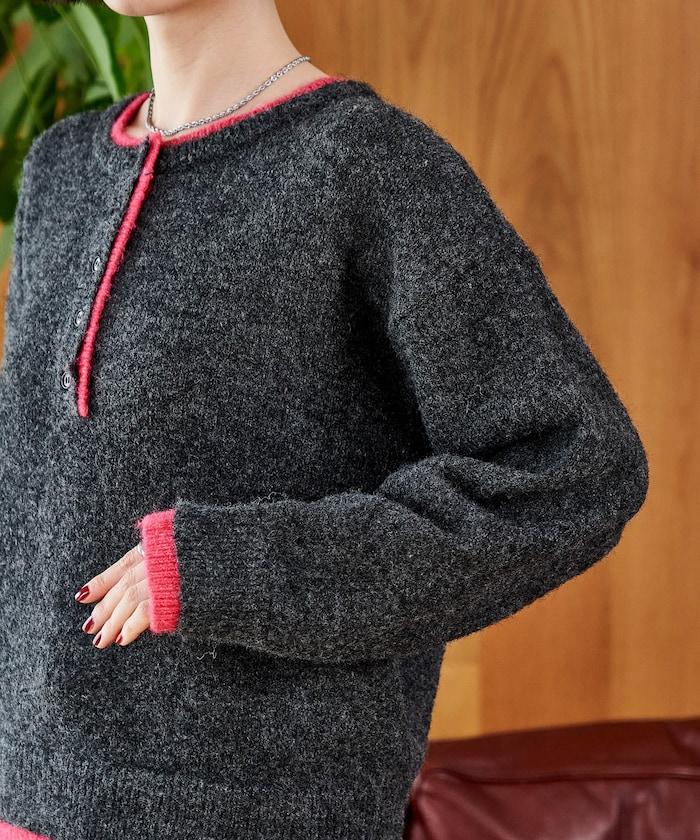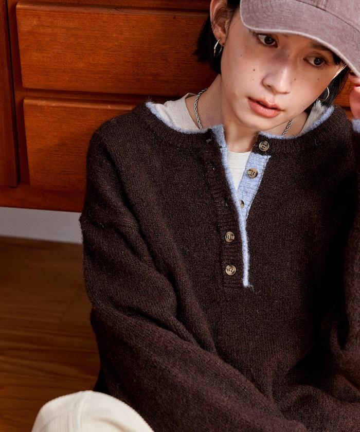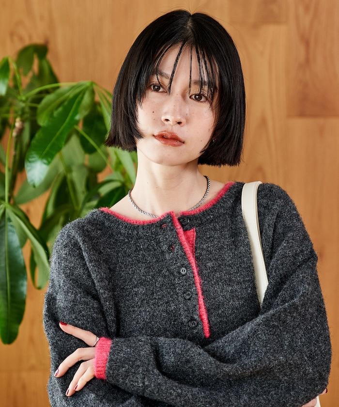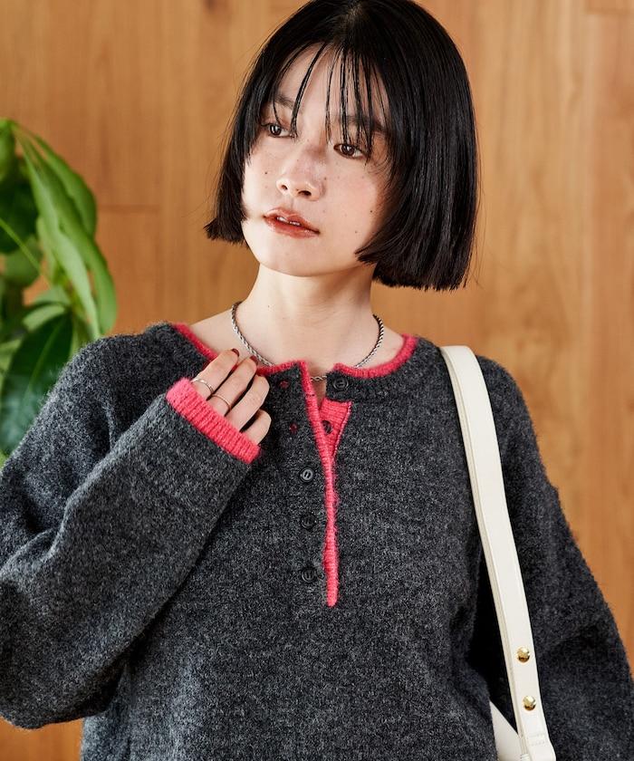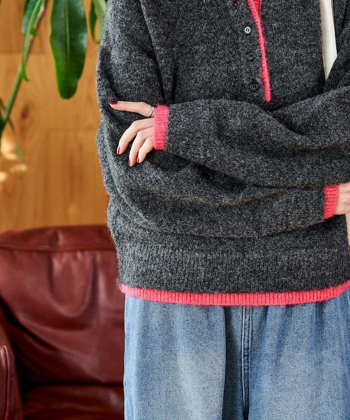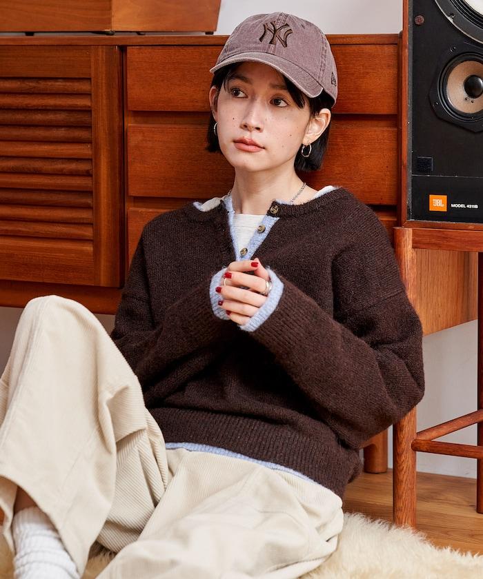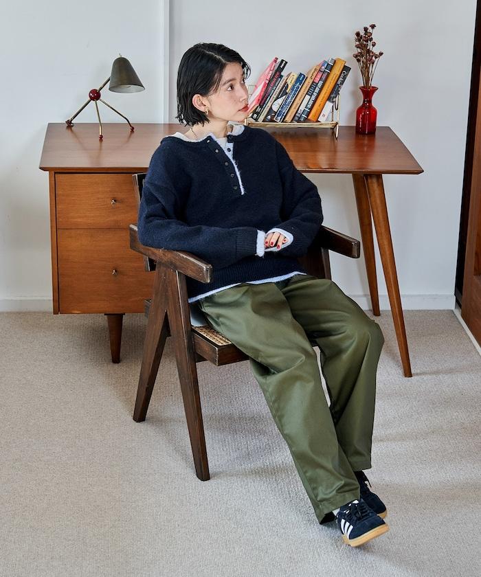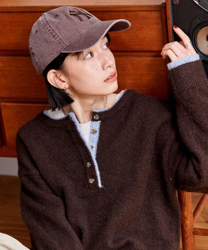 這款針織套頭衫巧妙地融入了今年流行的配色設計和雞心領設計,給人一種微妙的現代感。