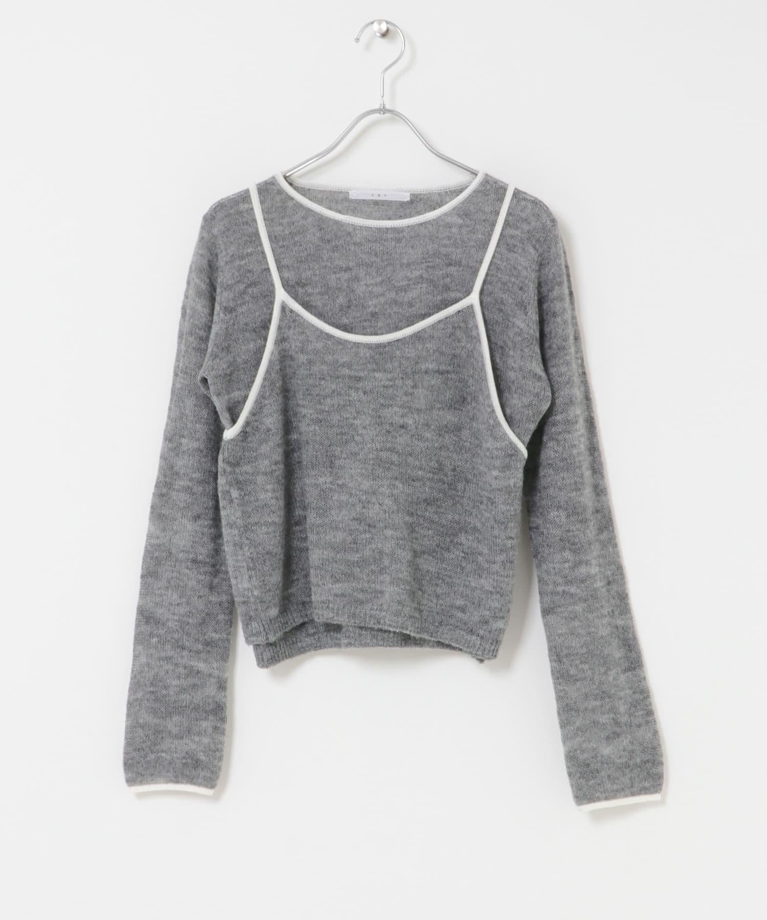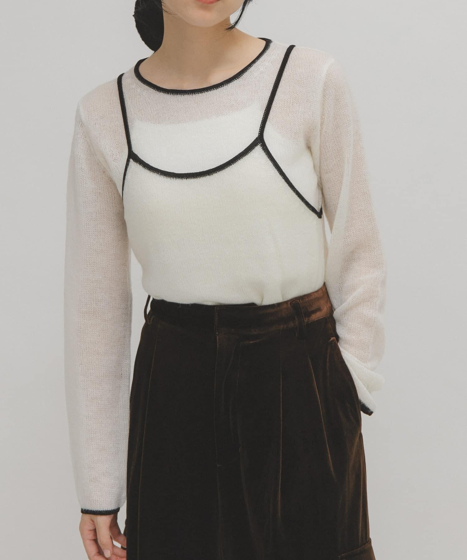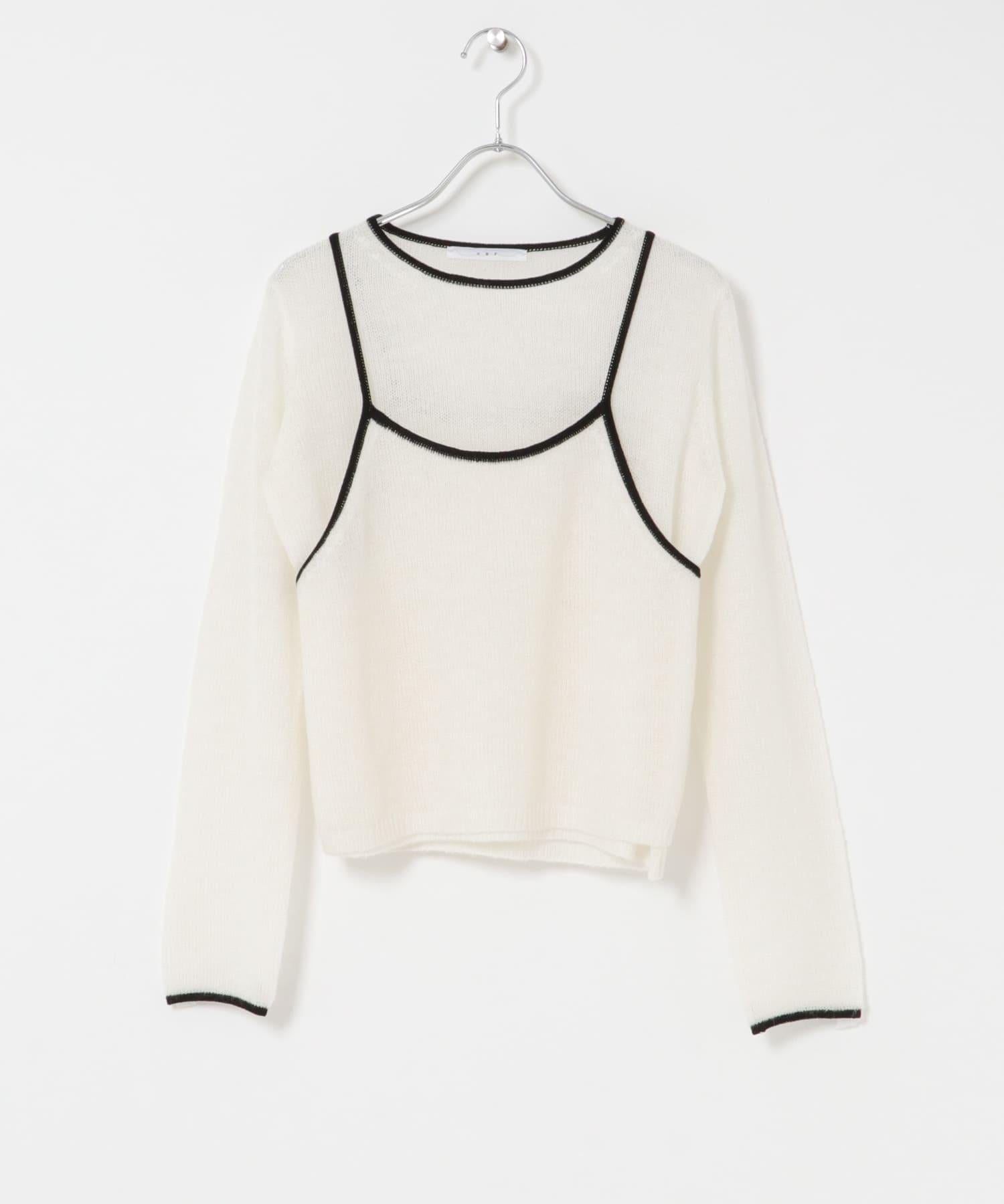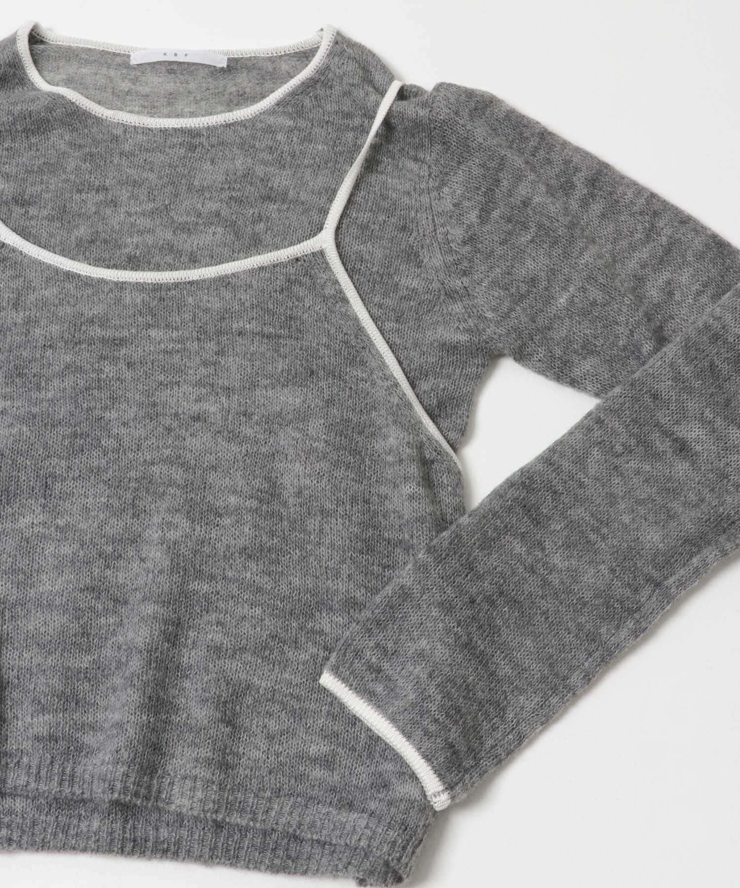 這是一款將基本款上衣和吊帶衫對接在一起的針織品。新潮的雙色設計是它的一大亮點,略微透薄的馬海毛面料也是它的一大特色。小巧的尺寸使其與寬鬆的長褲相得益彰。可作為套裝穿著,也可單獨穿著。