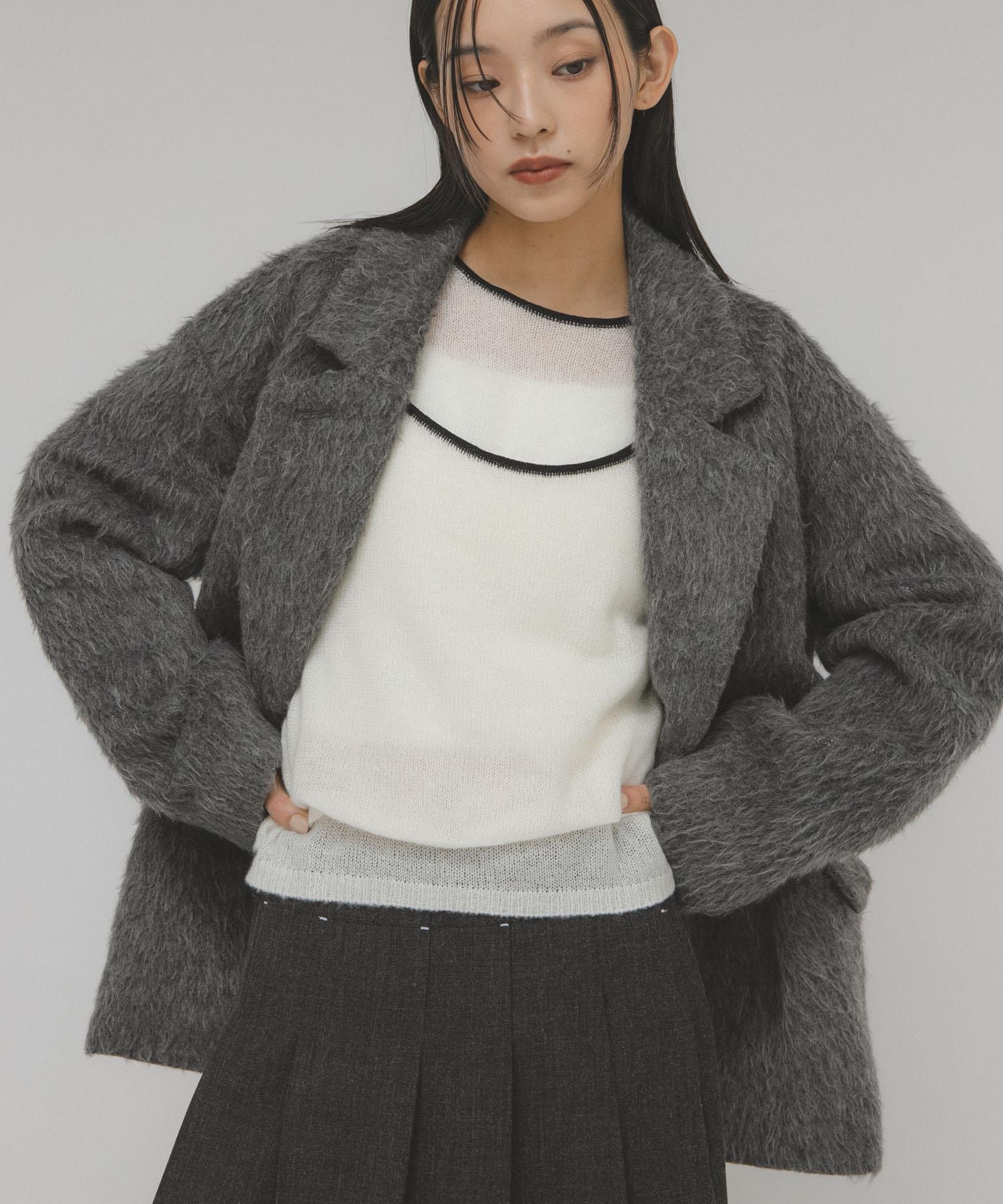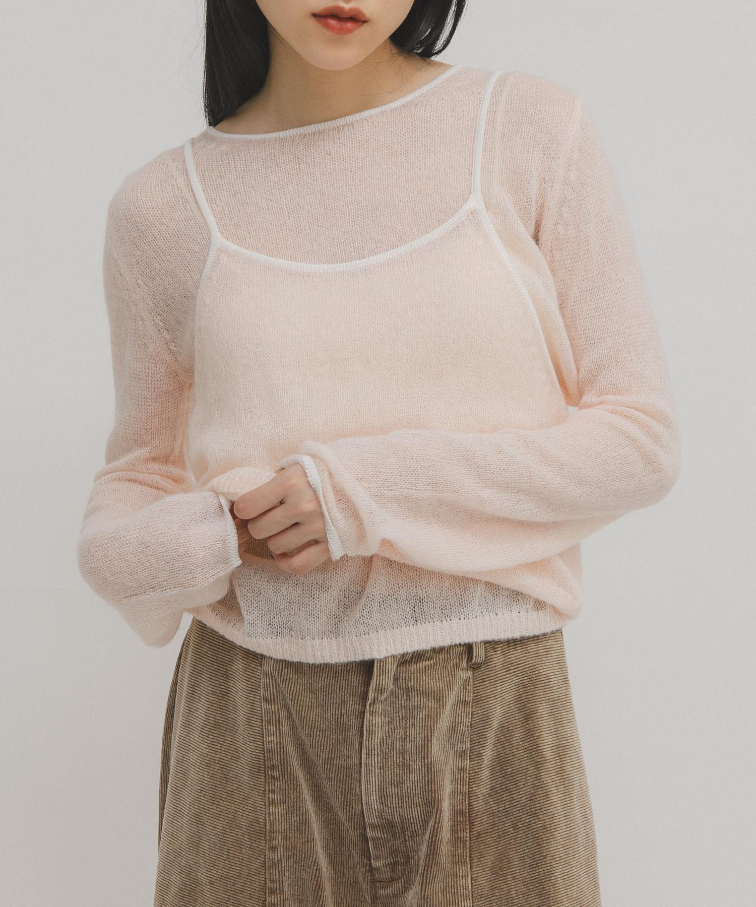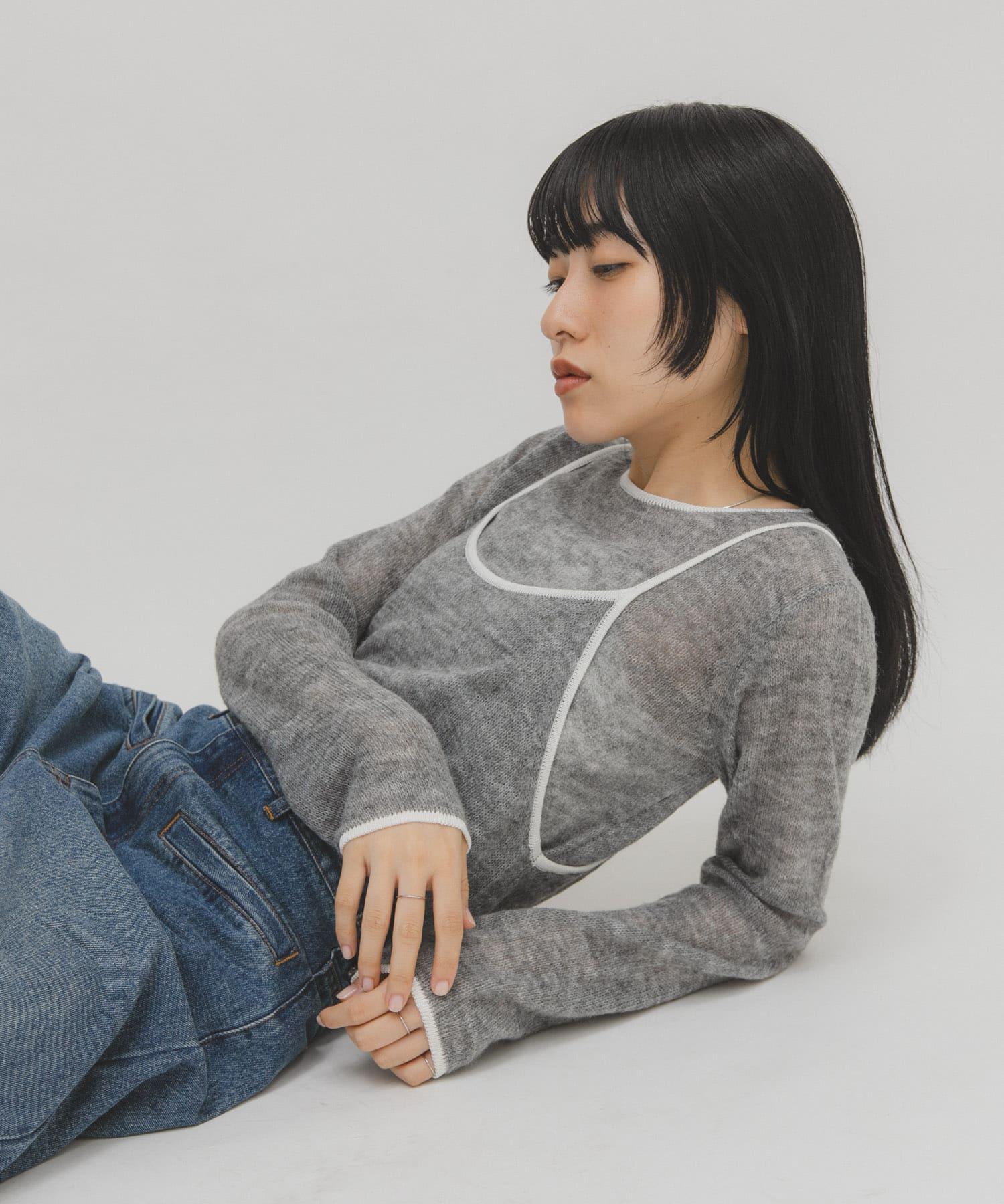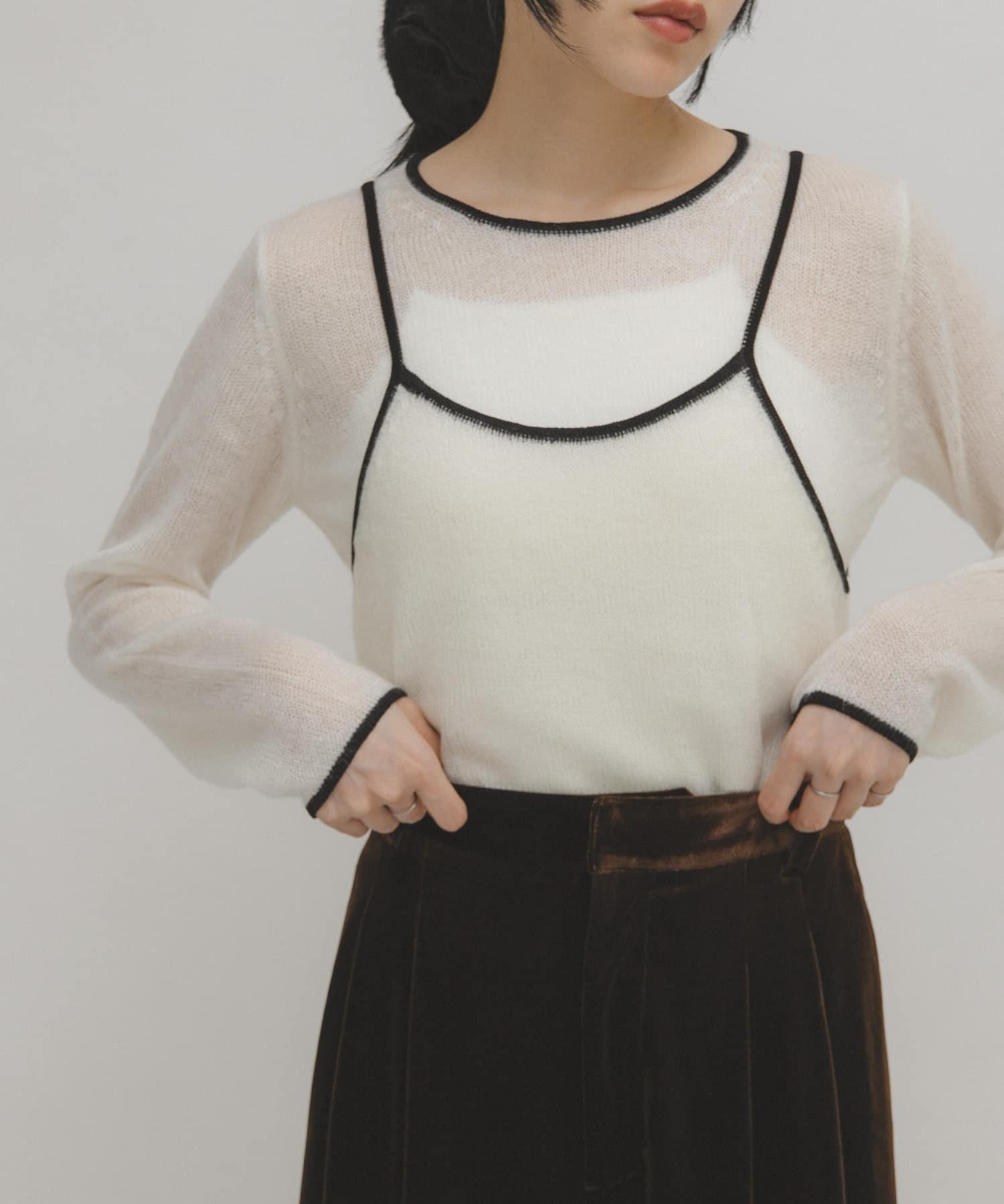 這是一款將基本款上衣和吊帶衫對接在一起的針織品。新潮的雙色設計是它的一大亮點,略微透薄的馬海毛面料也是它的一大特色。小巧的尺寸使其與寬鬆的長褲相得益彰。可作為套裝穿著,也可單獨穿著。