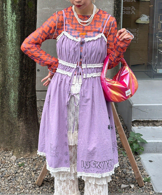 拼色圖案天鵝絨吊帶背心連衣裙〈波點/花卉〉