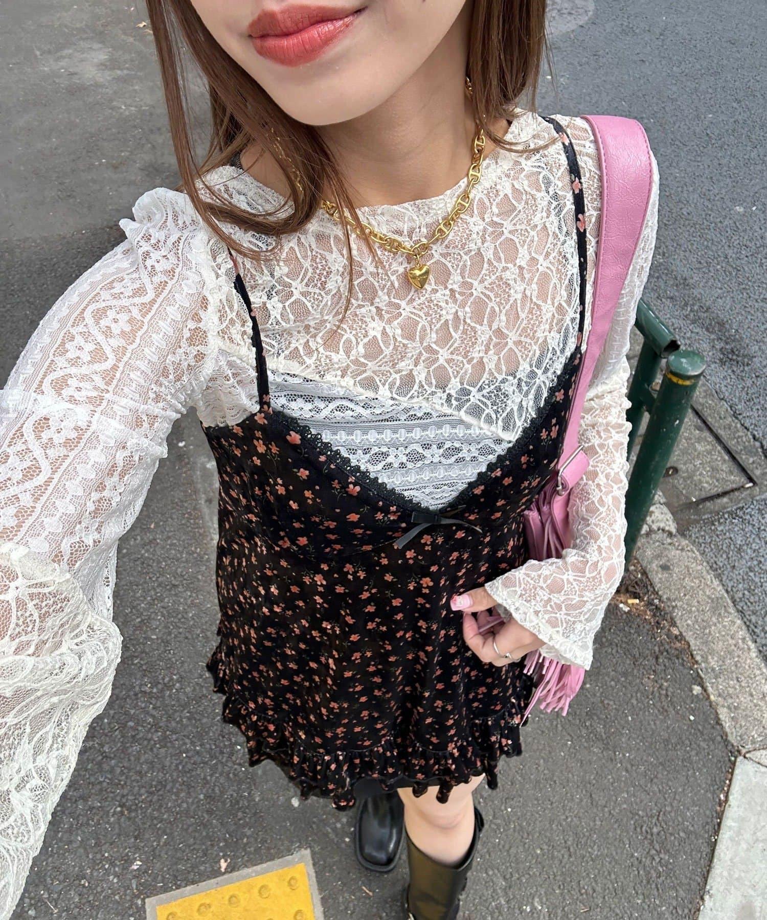 內衣式的設計和胸前的蕾絲花邊給人一種嫵媚迷人的印象。