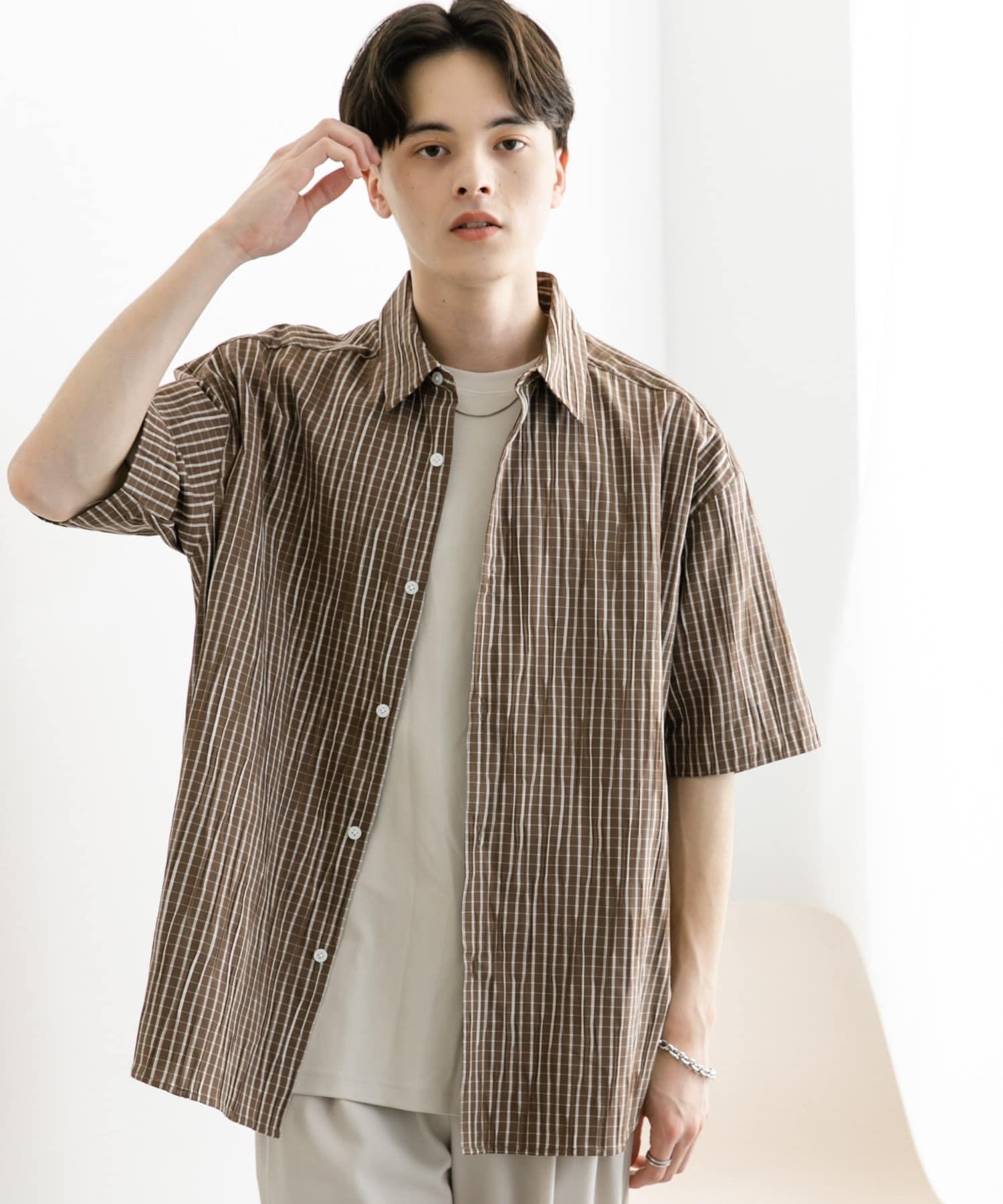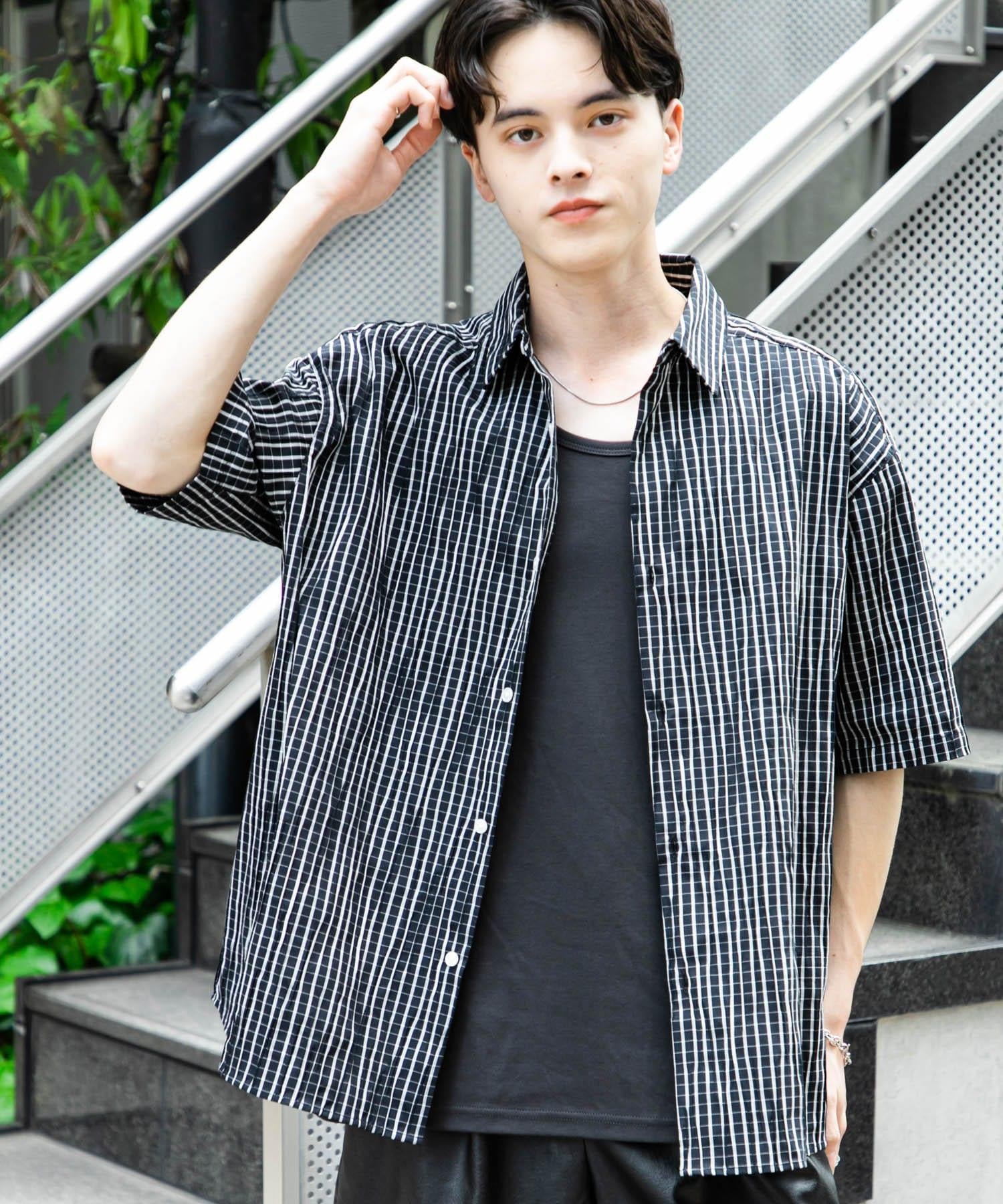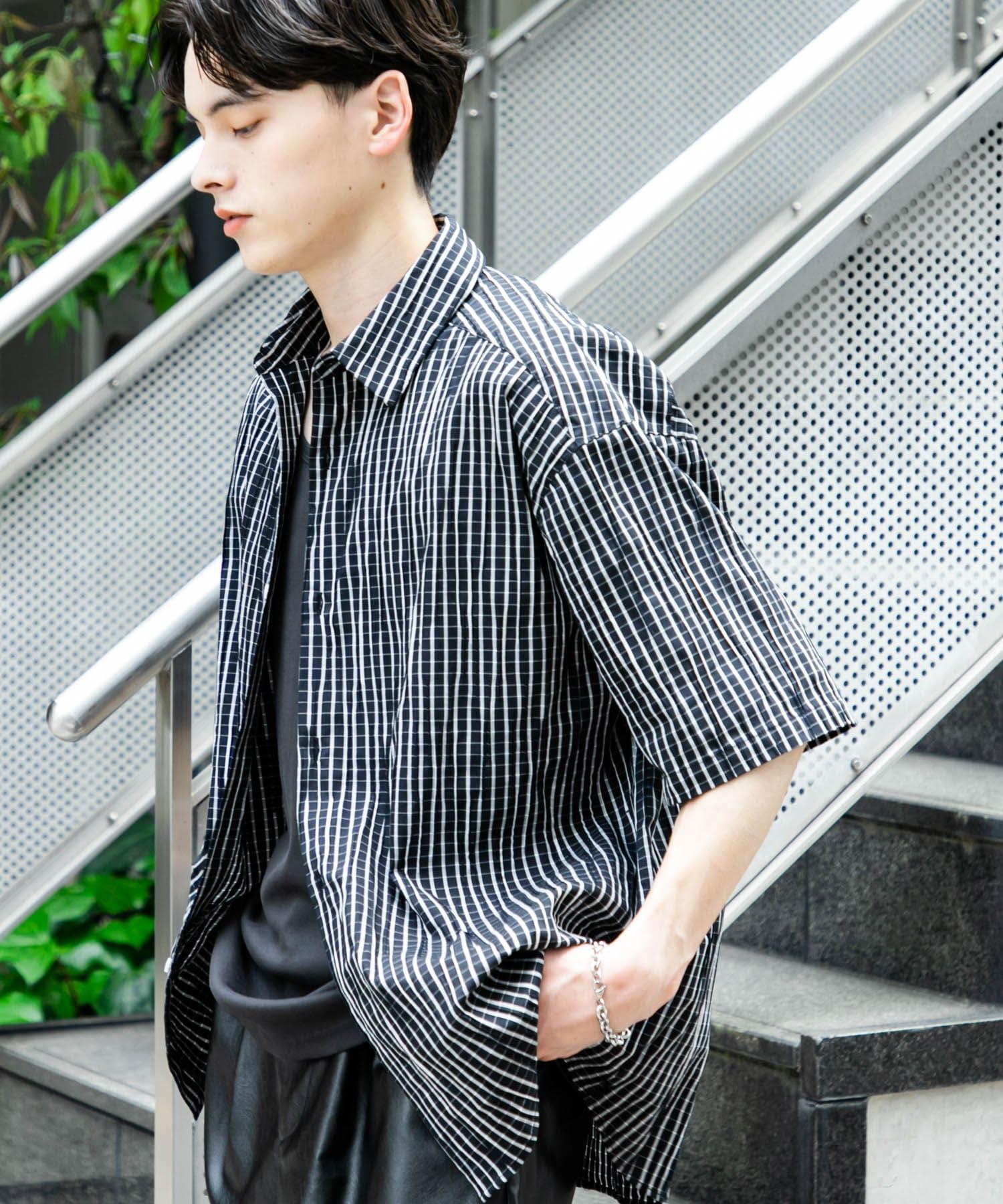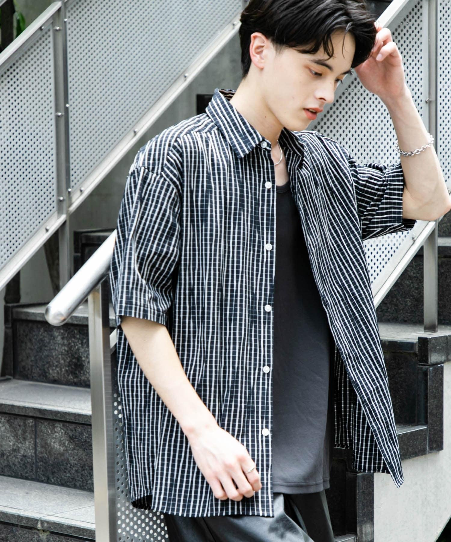 拼色提花短袖襯衫