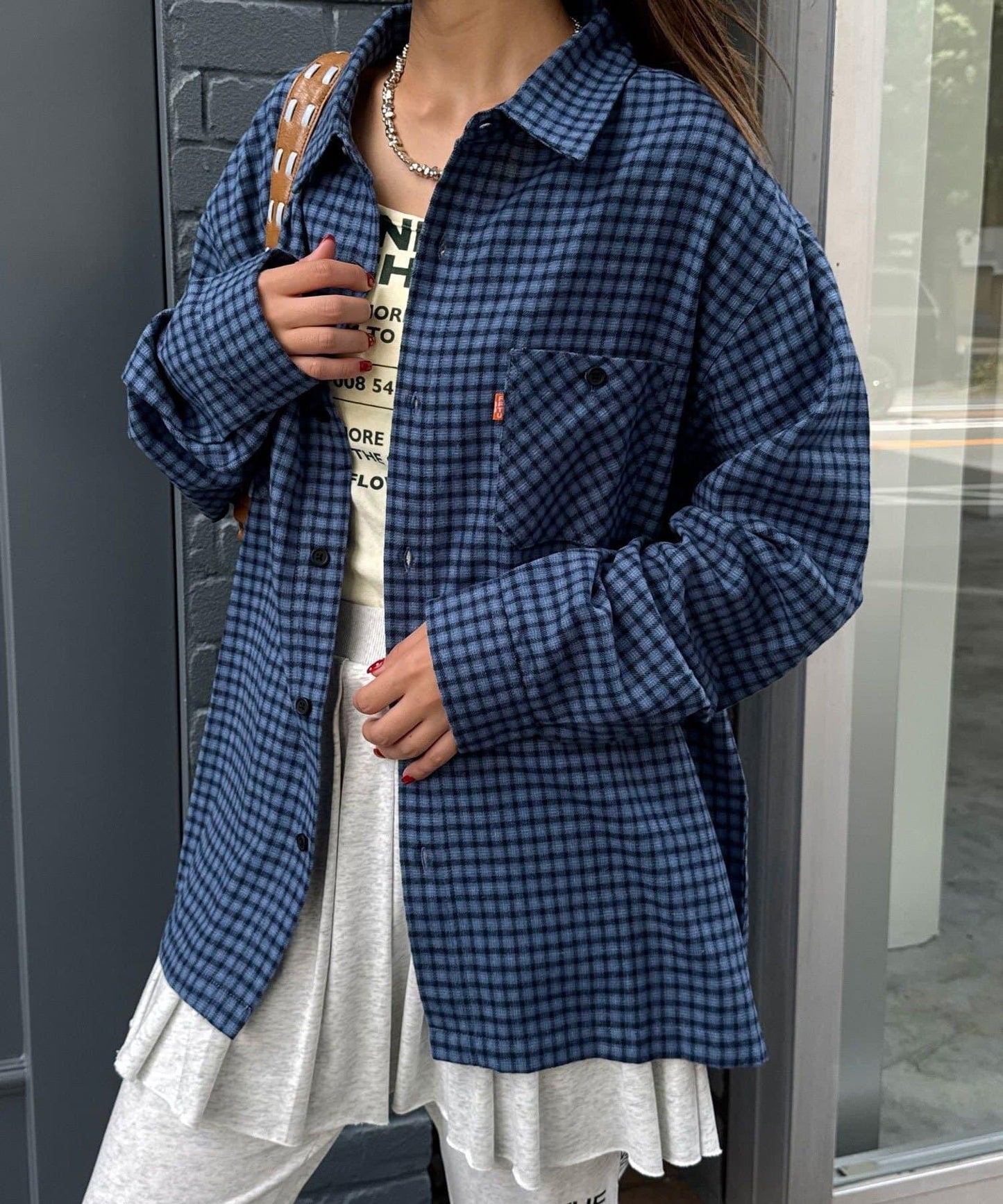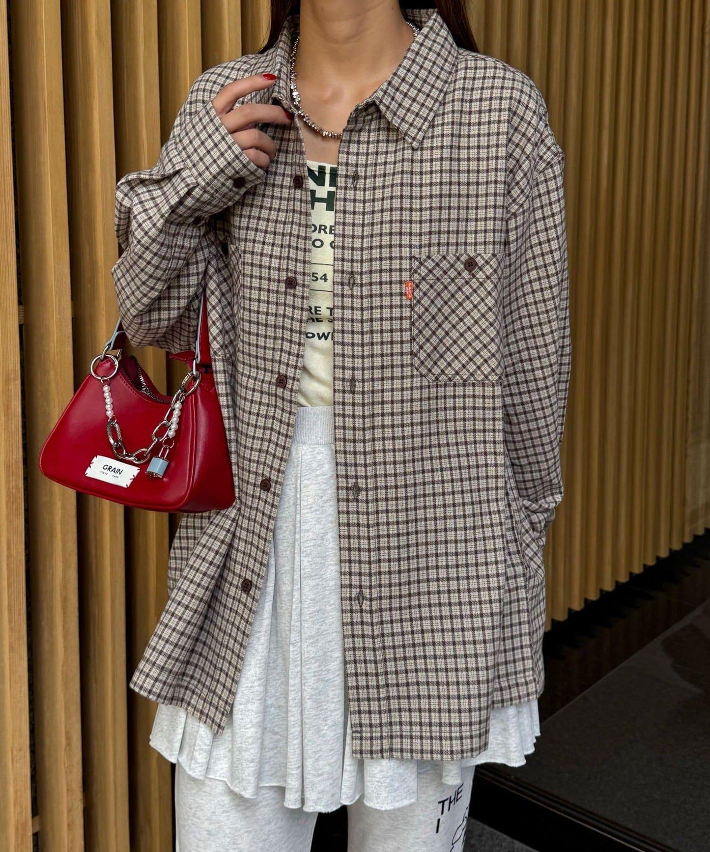 以休閒格紋圖案為基礎,採用適度寬鬆的剪裁,增添了輕鬆的感覺。