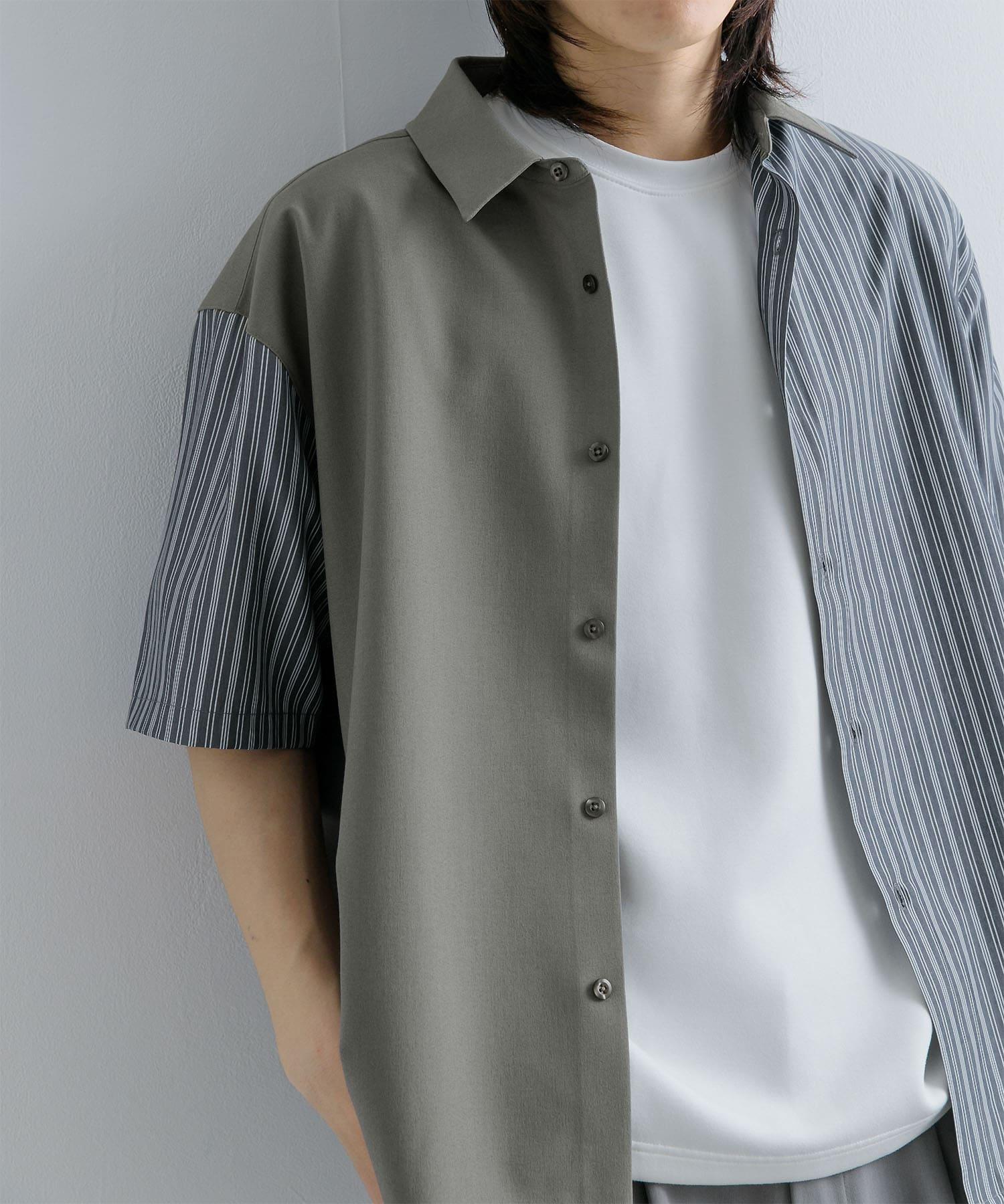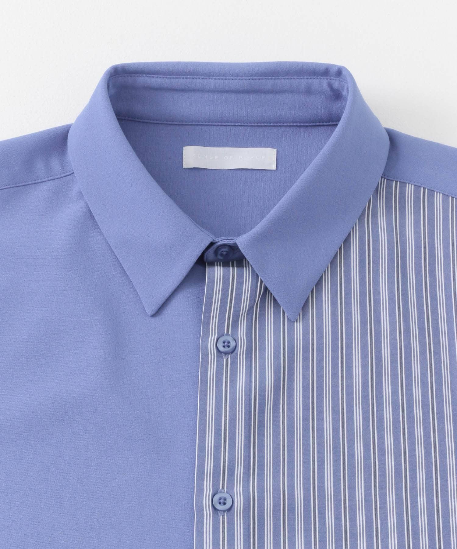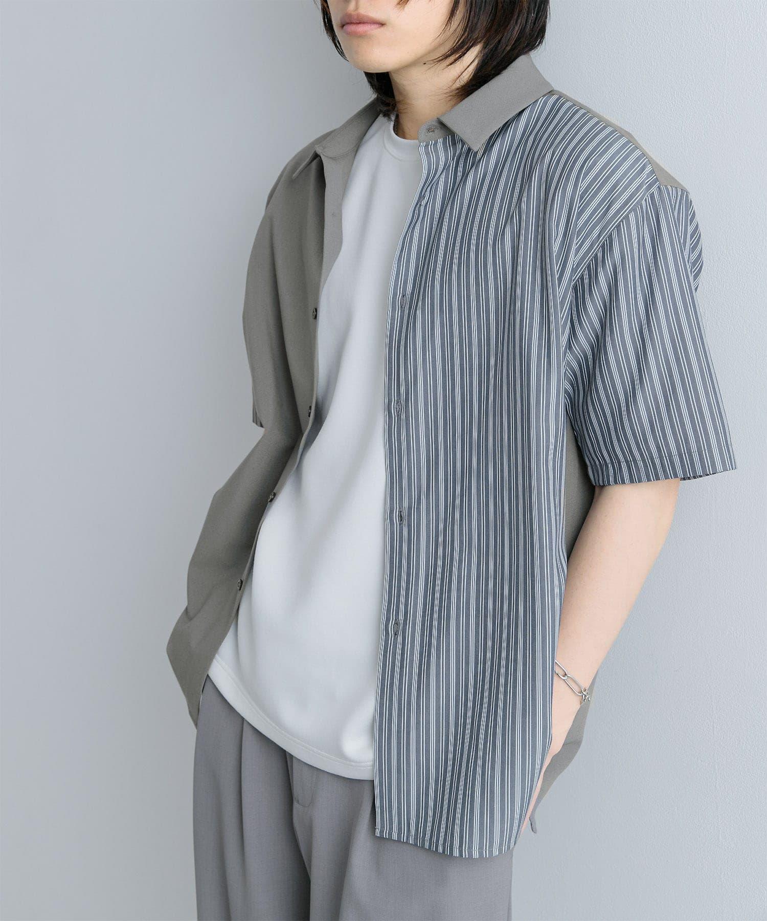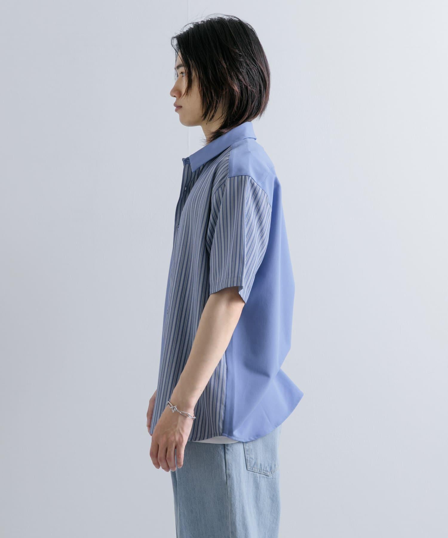 拼色條紋五分袖襯衫