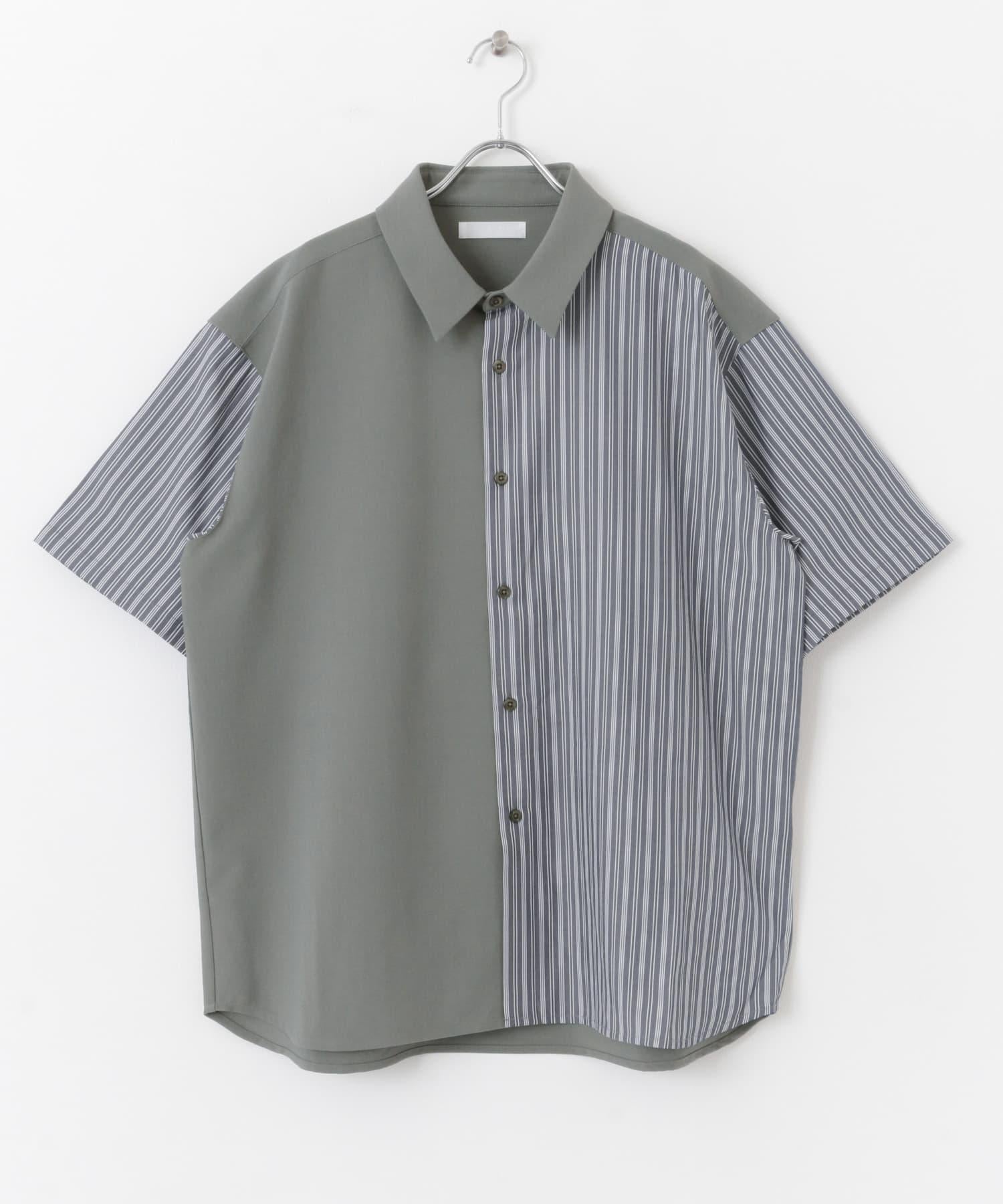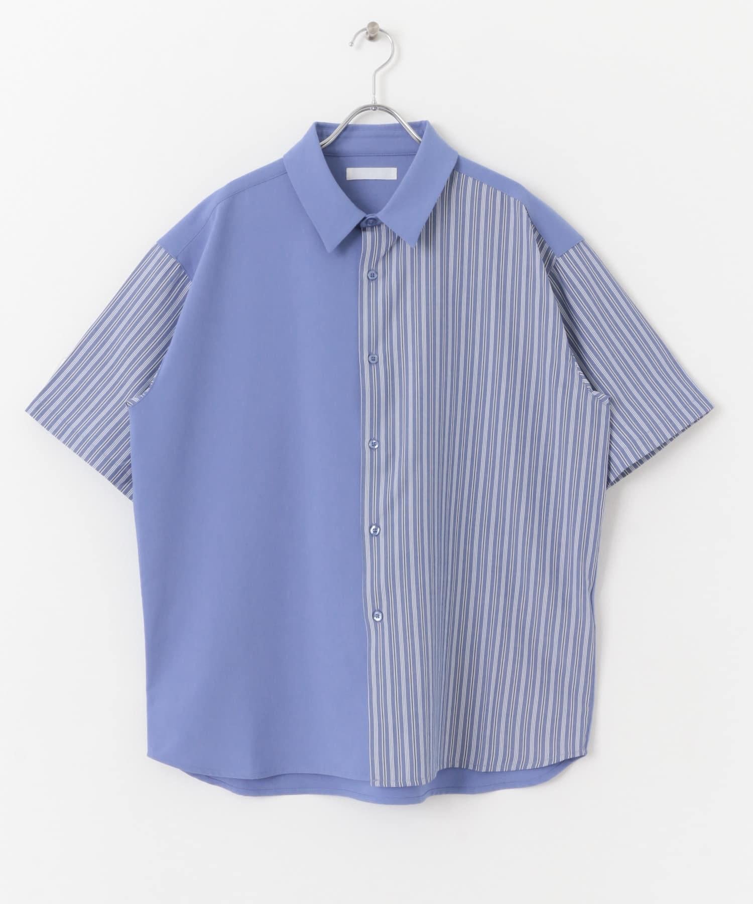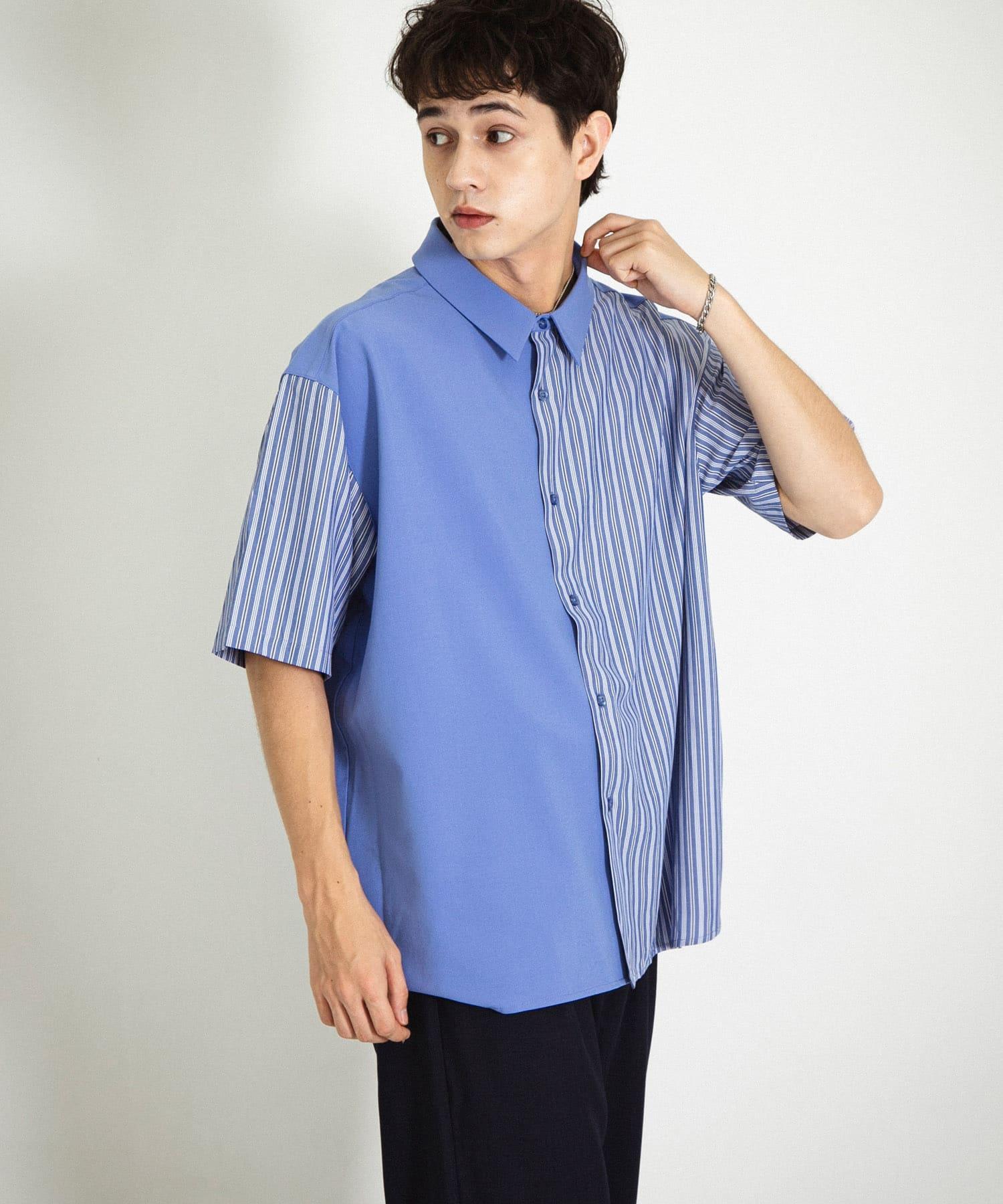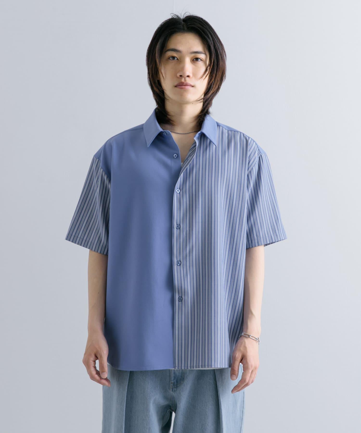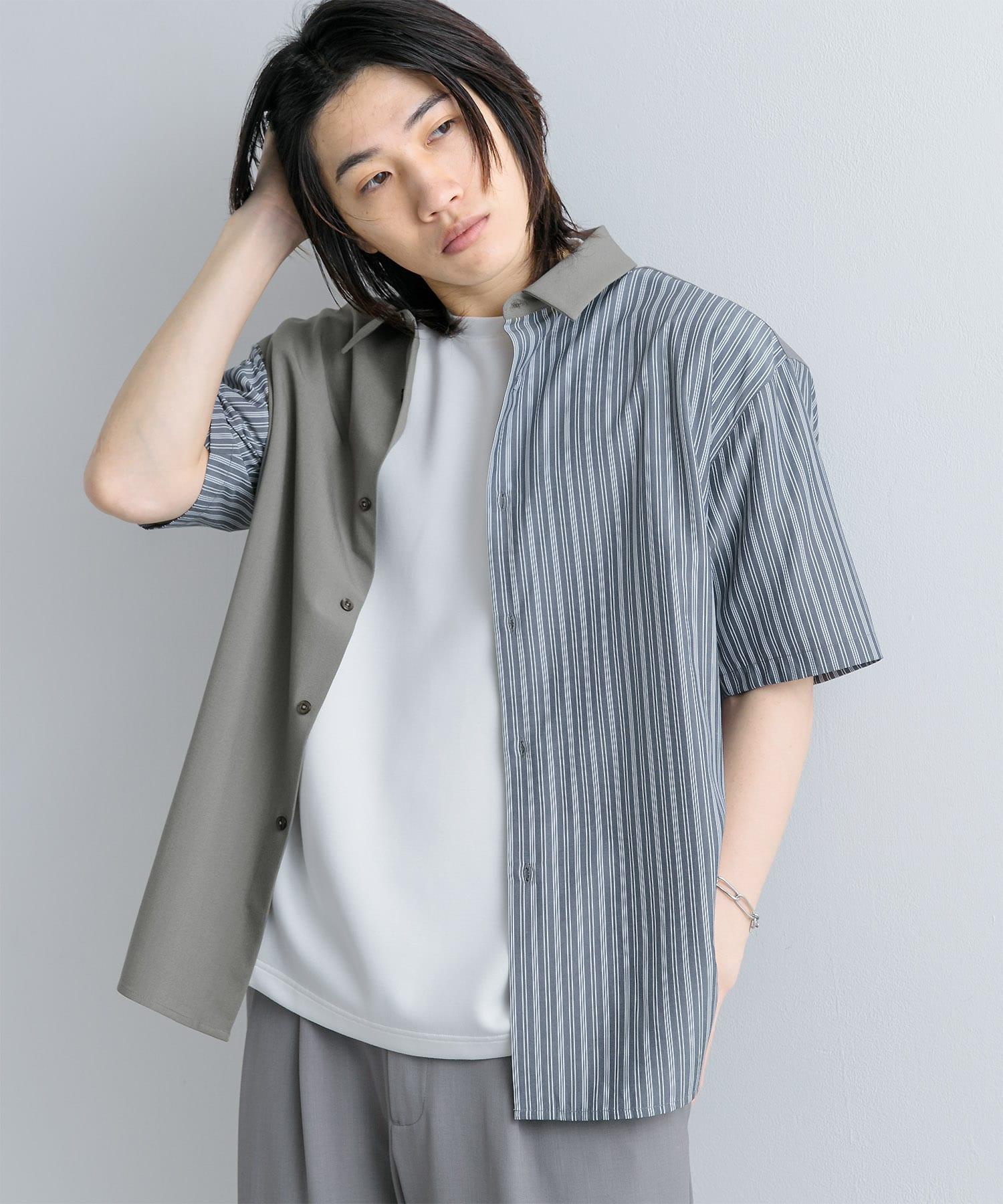 拼色條紋五分袖襯衫