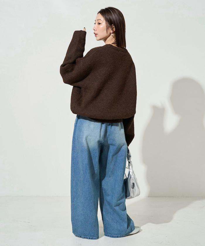 溫暖的蓬鬆面料讓這款針織衫充滿季節感。