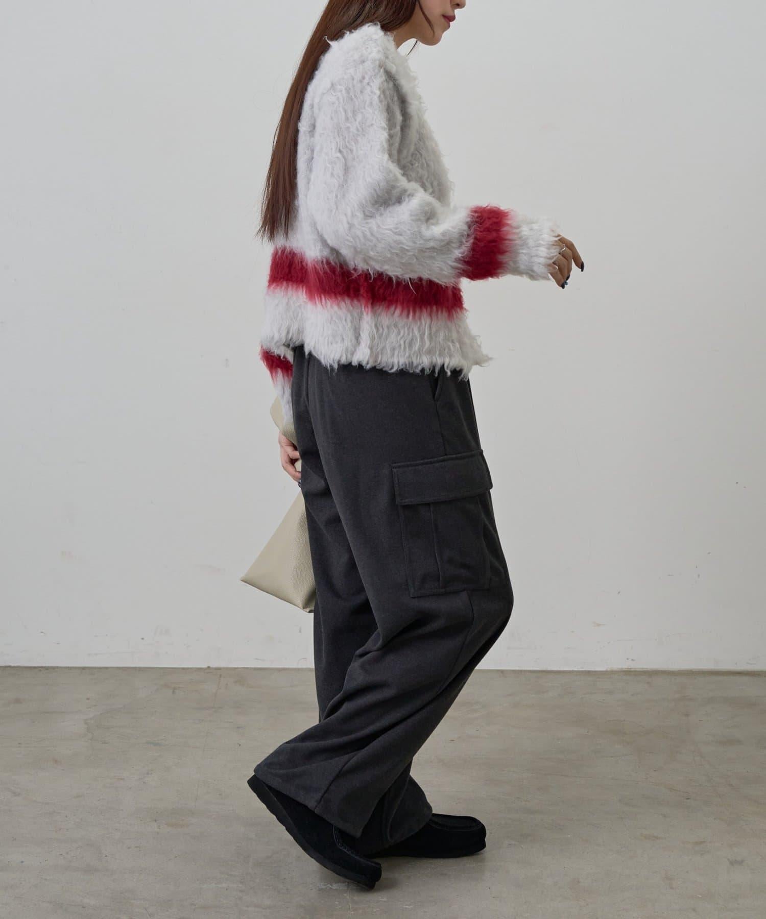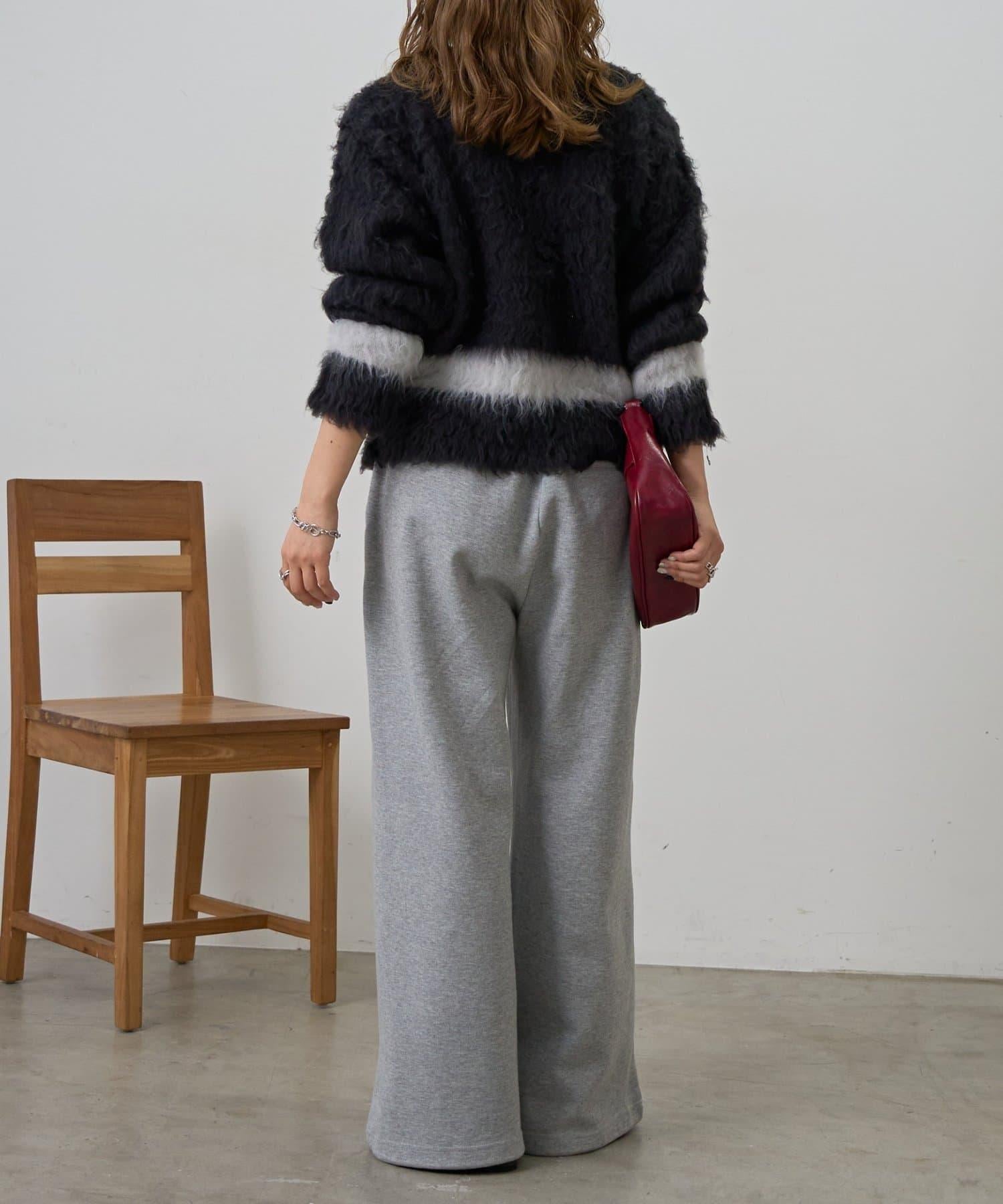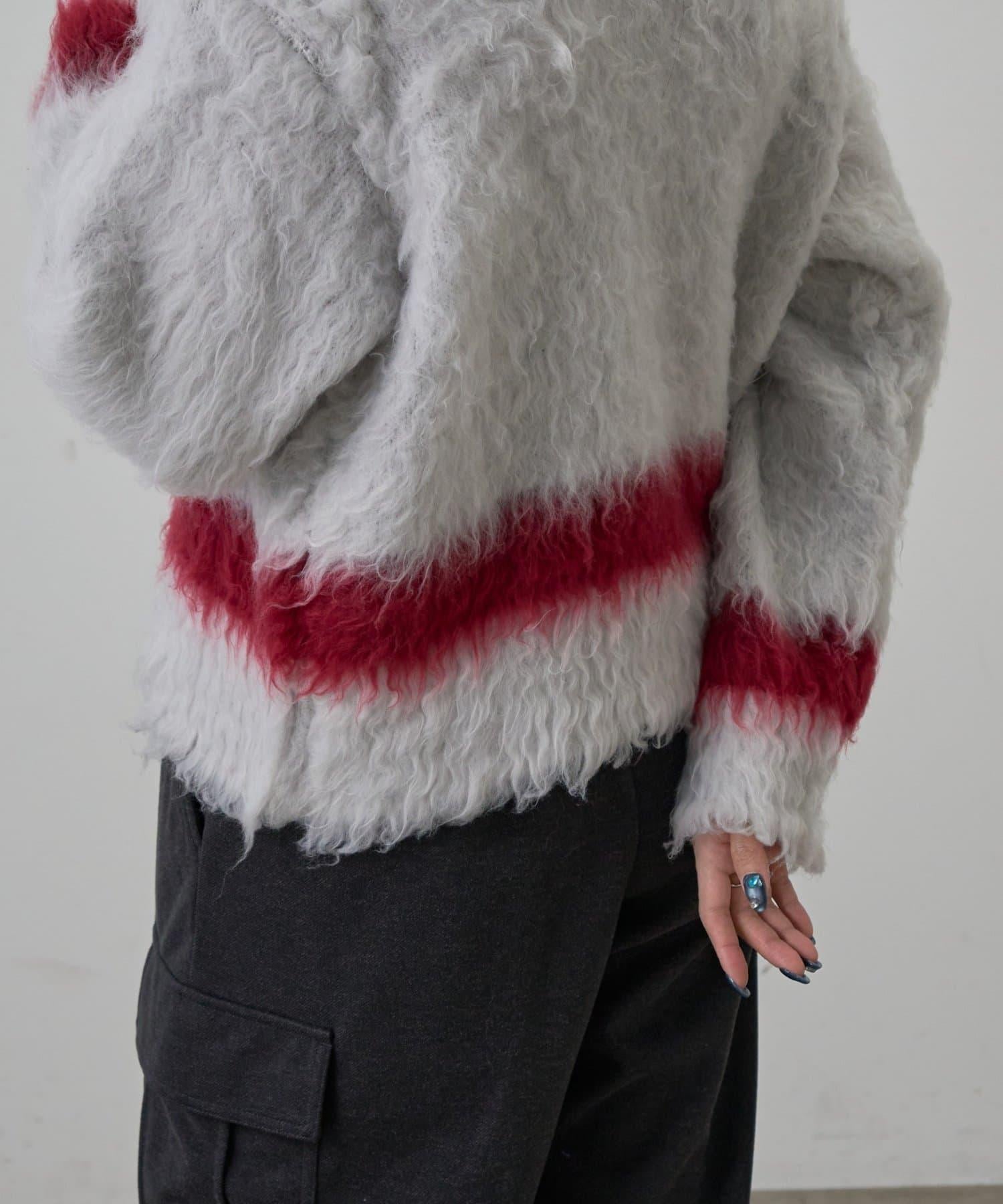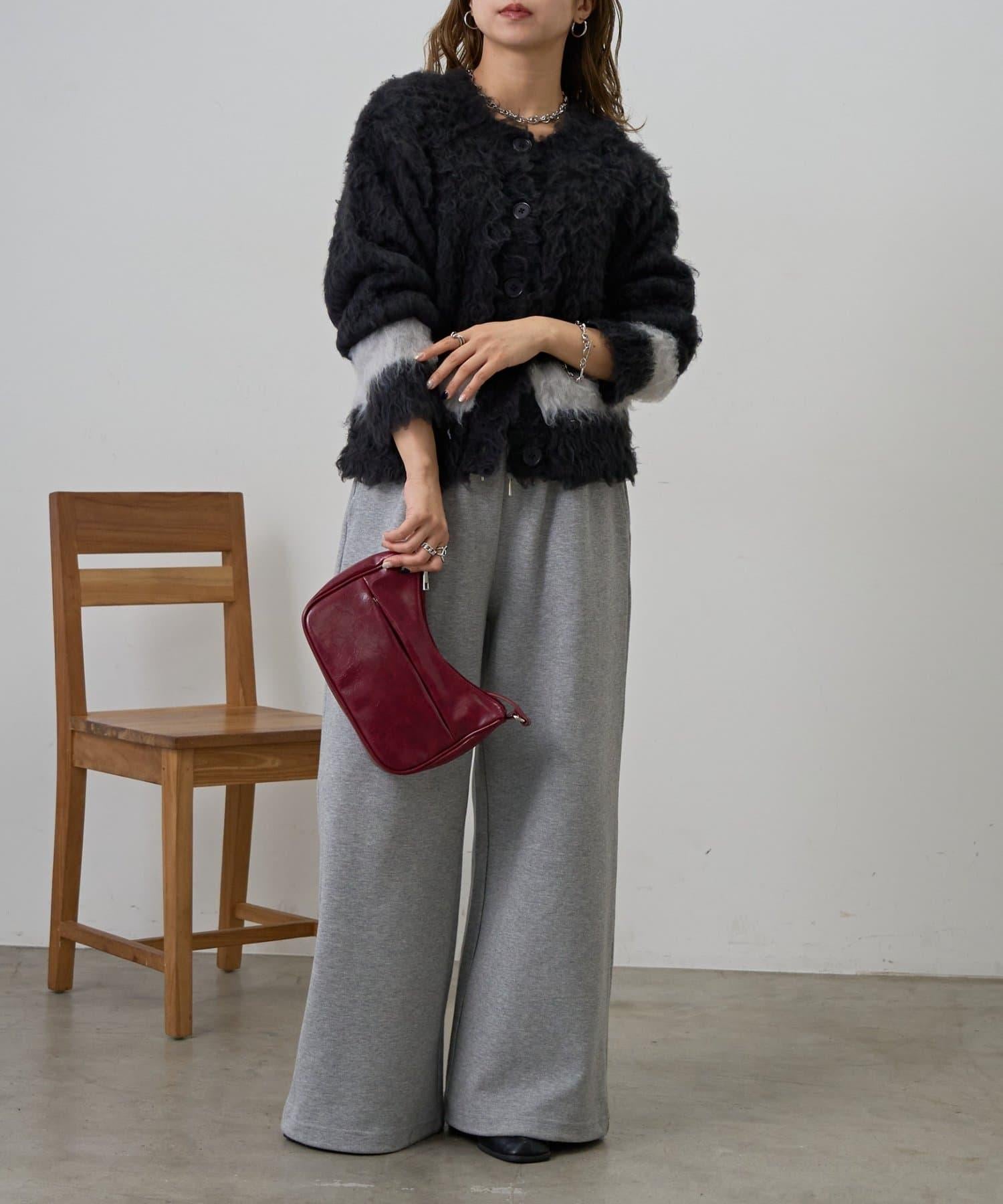 這款圓領開衫採用柔軟蓬鬆的絨毛面料製成,充滿季節感。