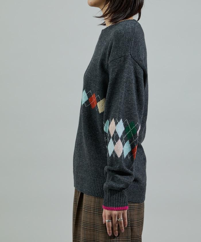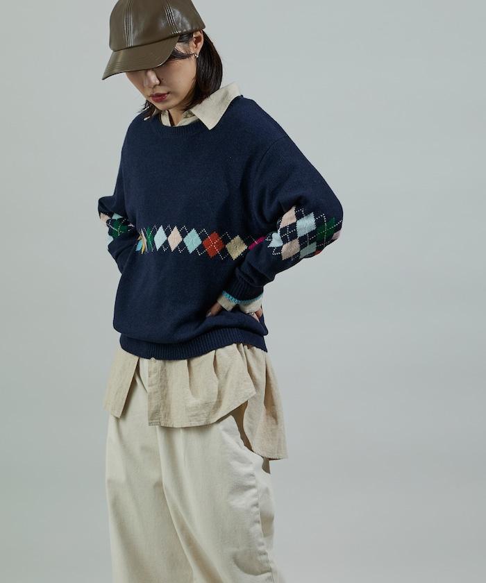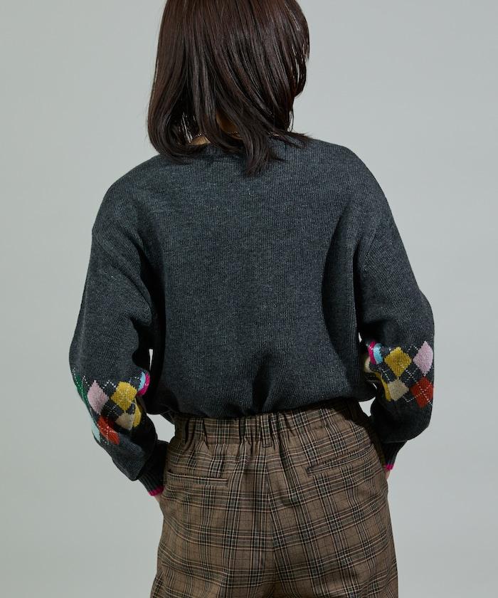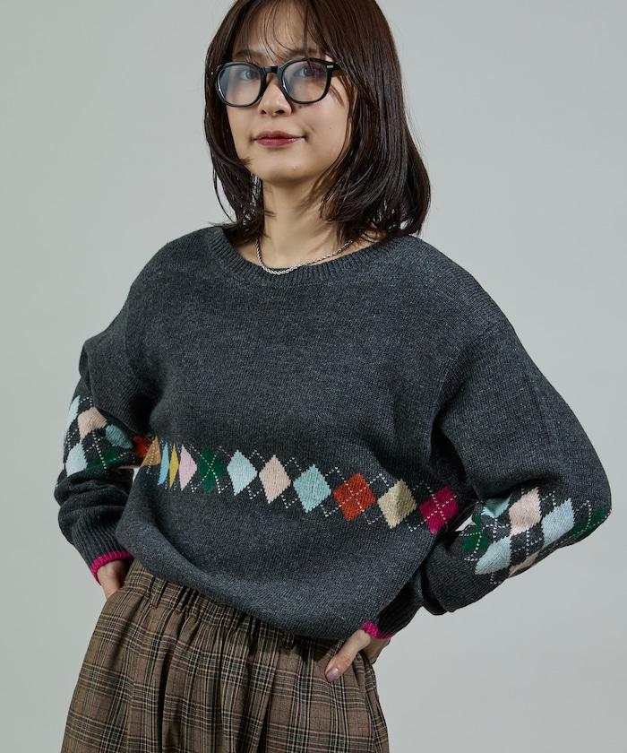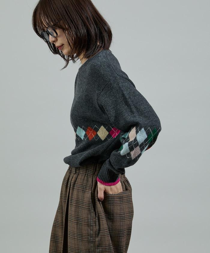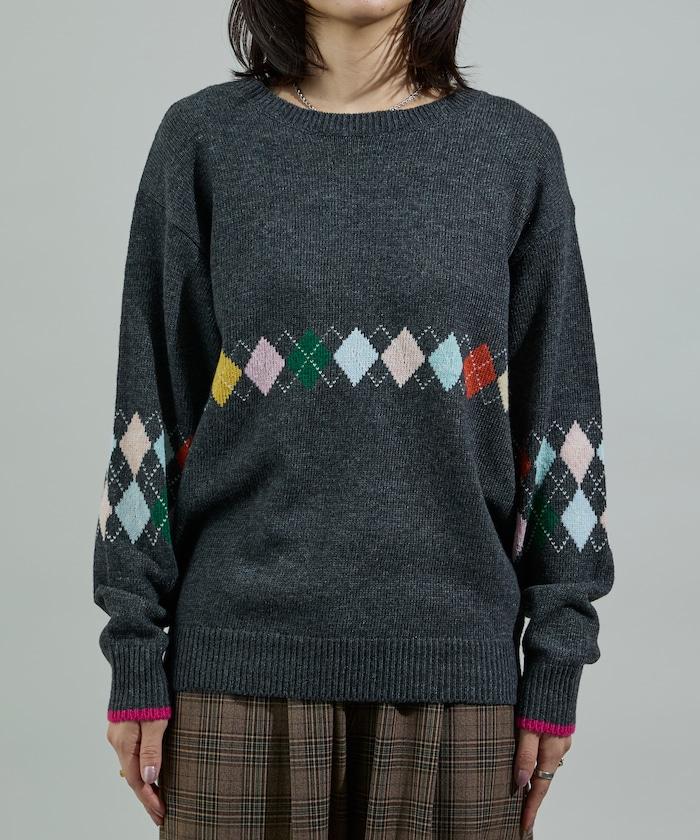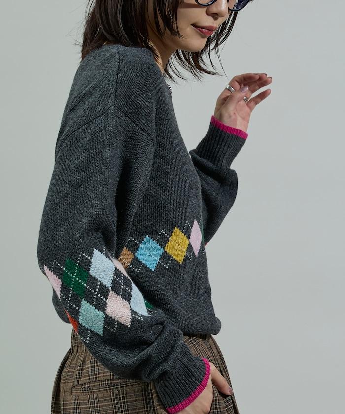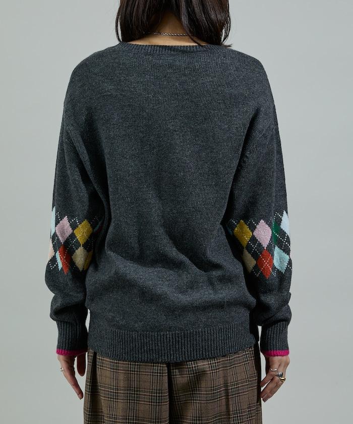 優雅復古的圓領針織衫,配以色彩繽紛的菱格紋圖案。