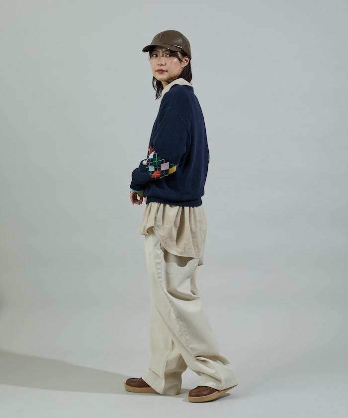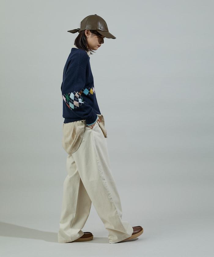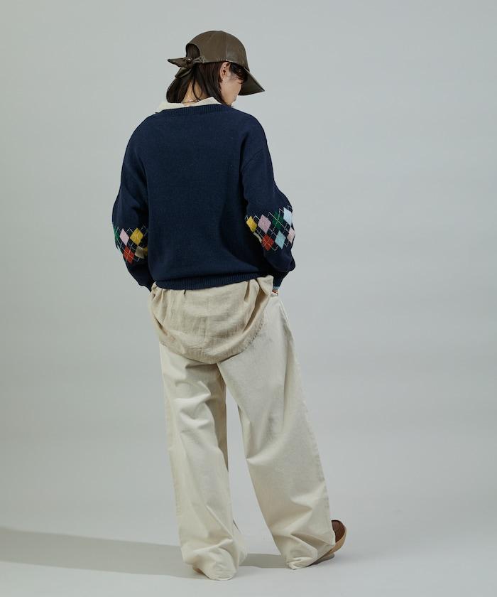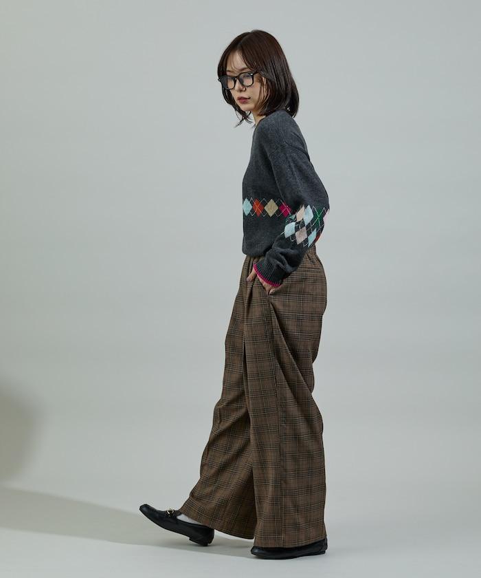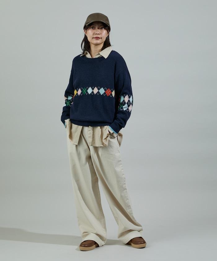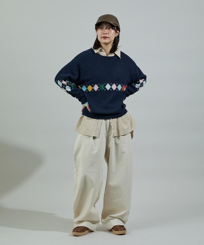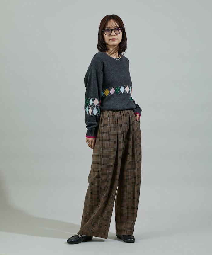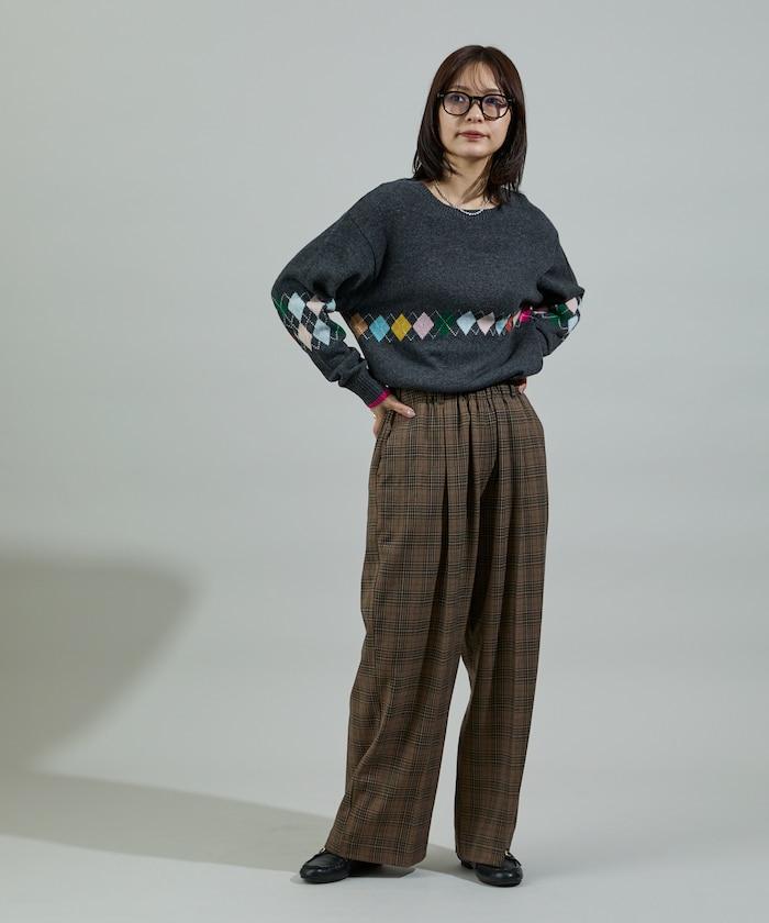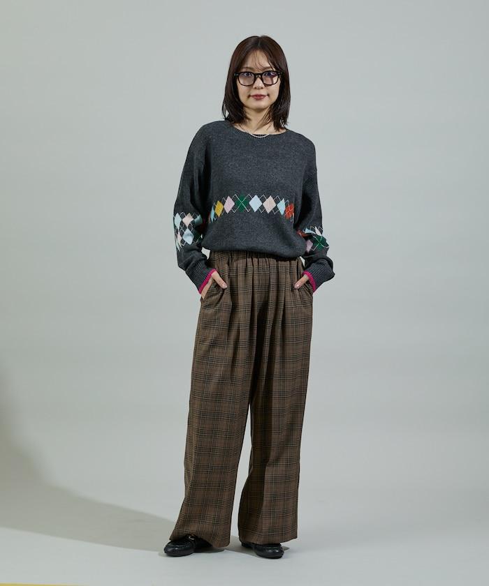 優雅復古的圓領針織衫,配以色彩繽紛的菱格紋圖案。