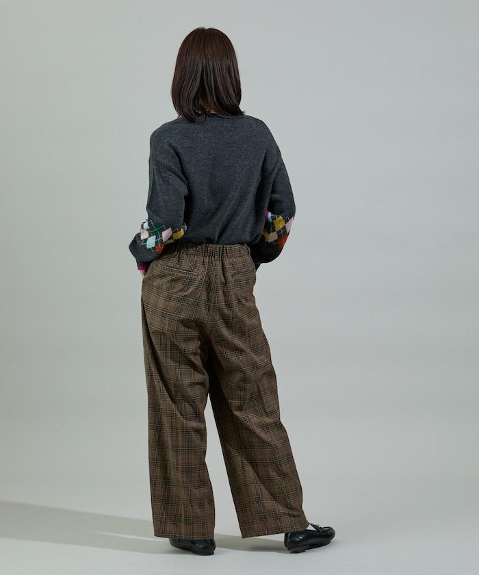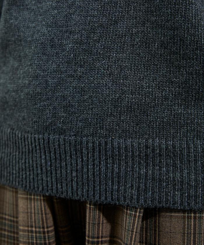 時尚的圓領針織套頭衫,帶有局部小方格圖案。