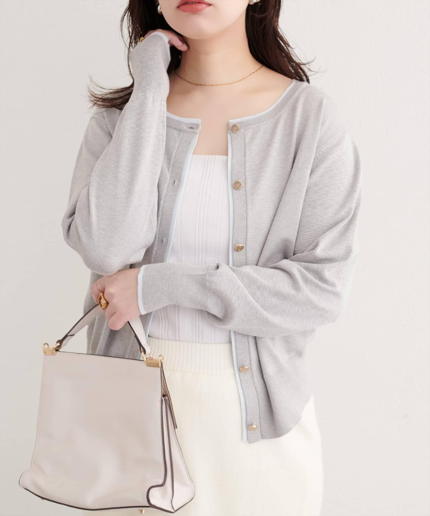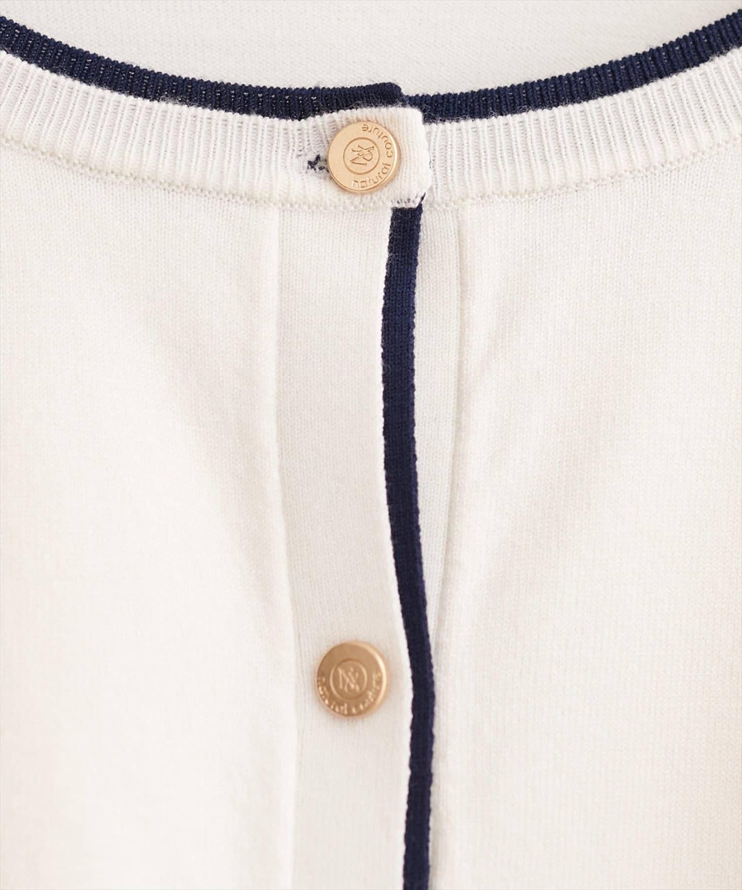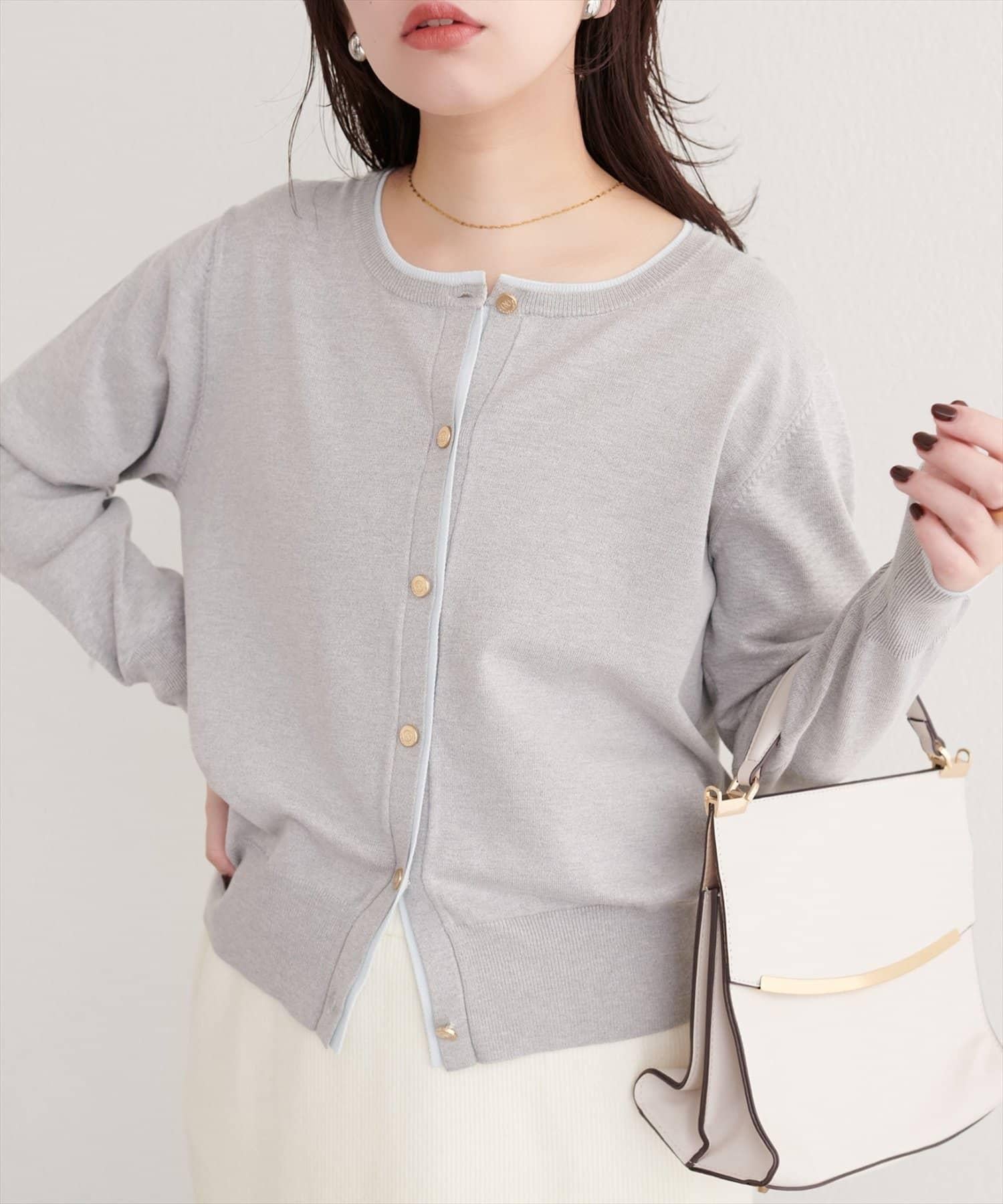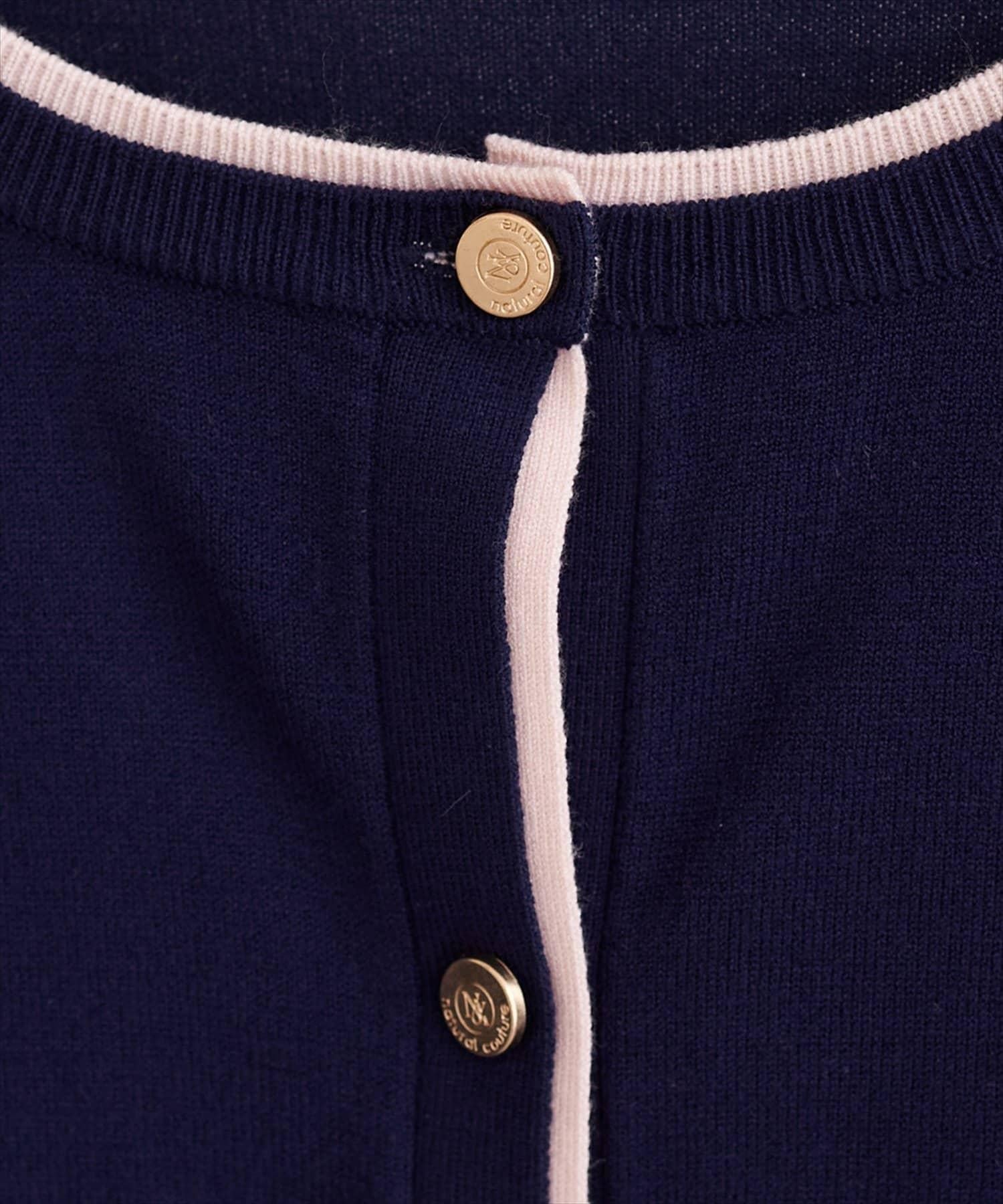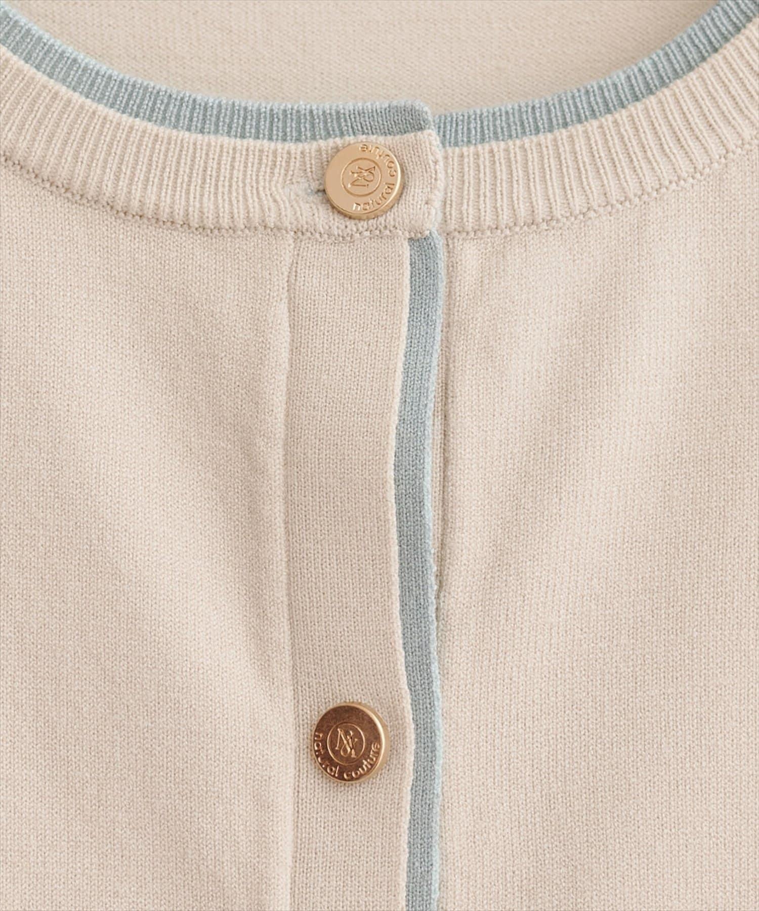 金色紐扣閃耀著優雅的光澤,為整件開衫增添了一絲魅力,使其宛如配飾。