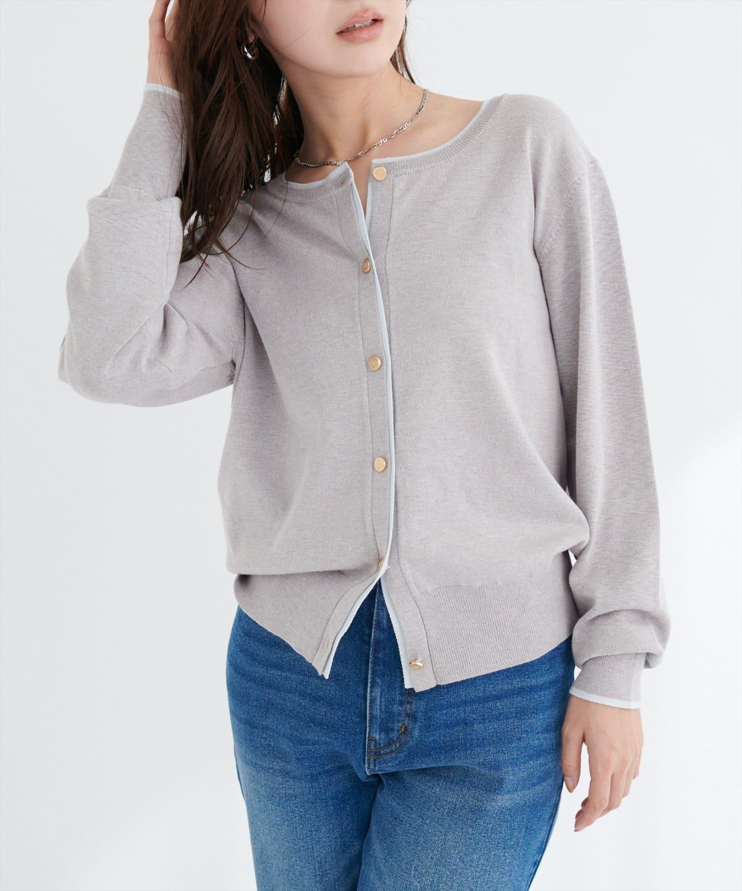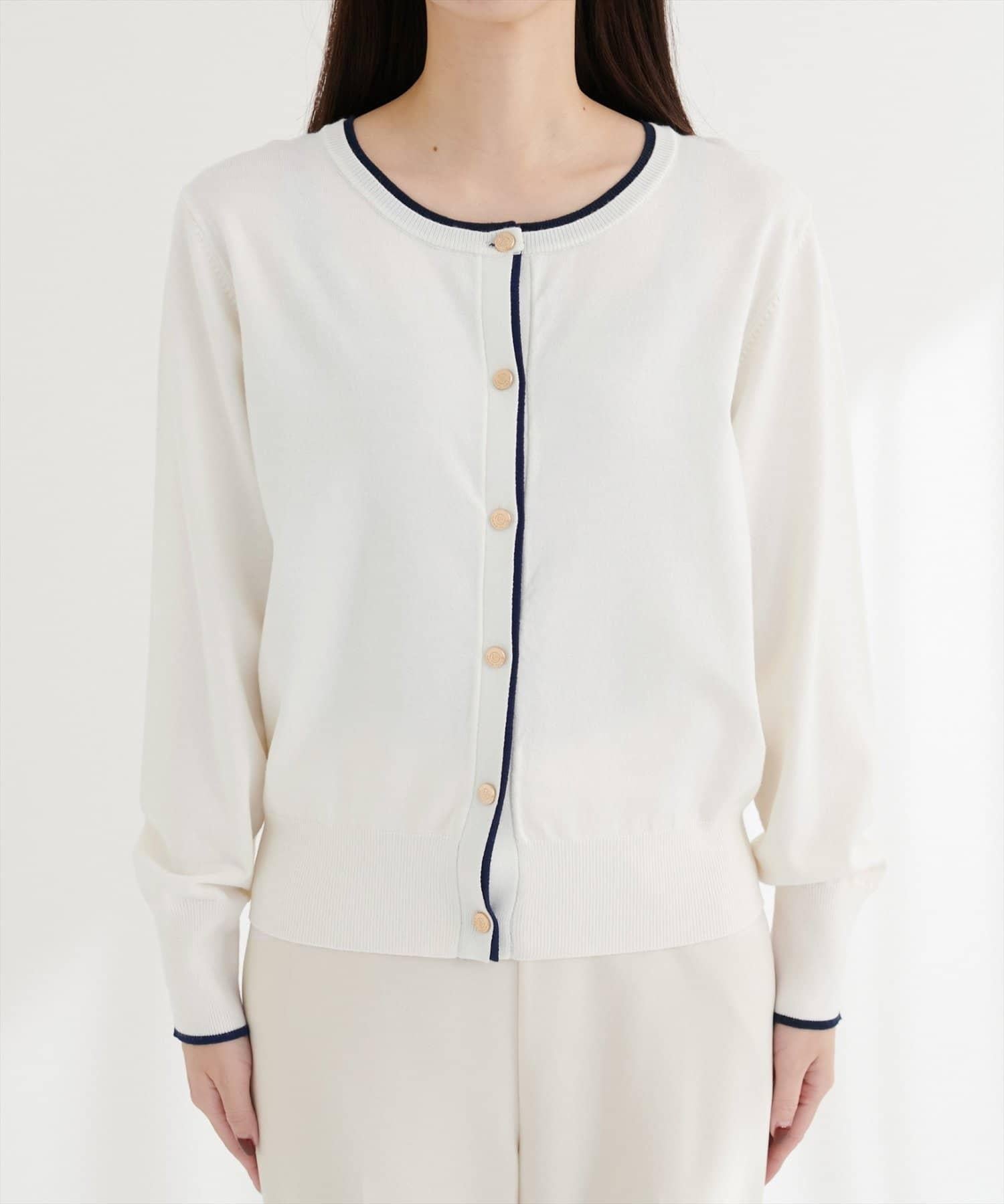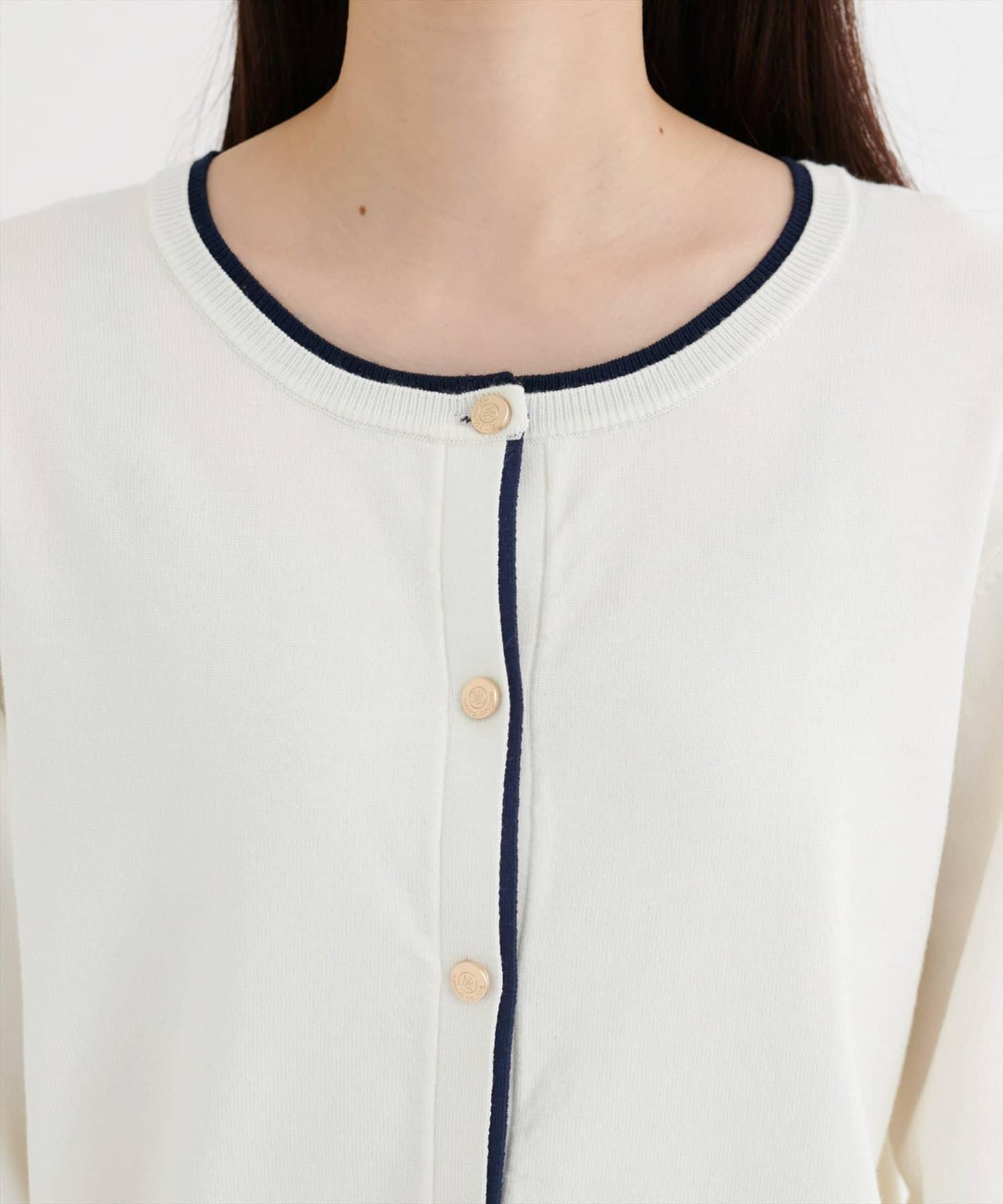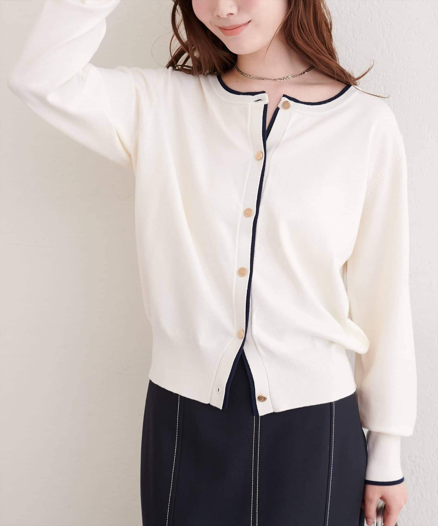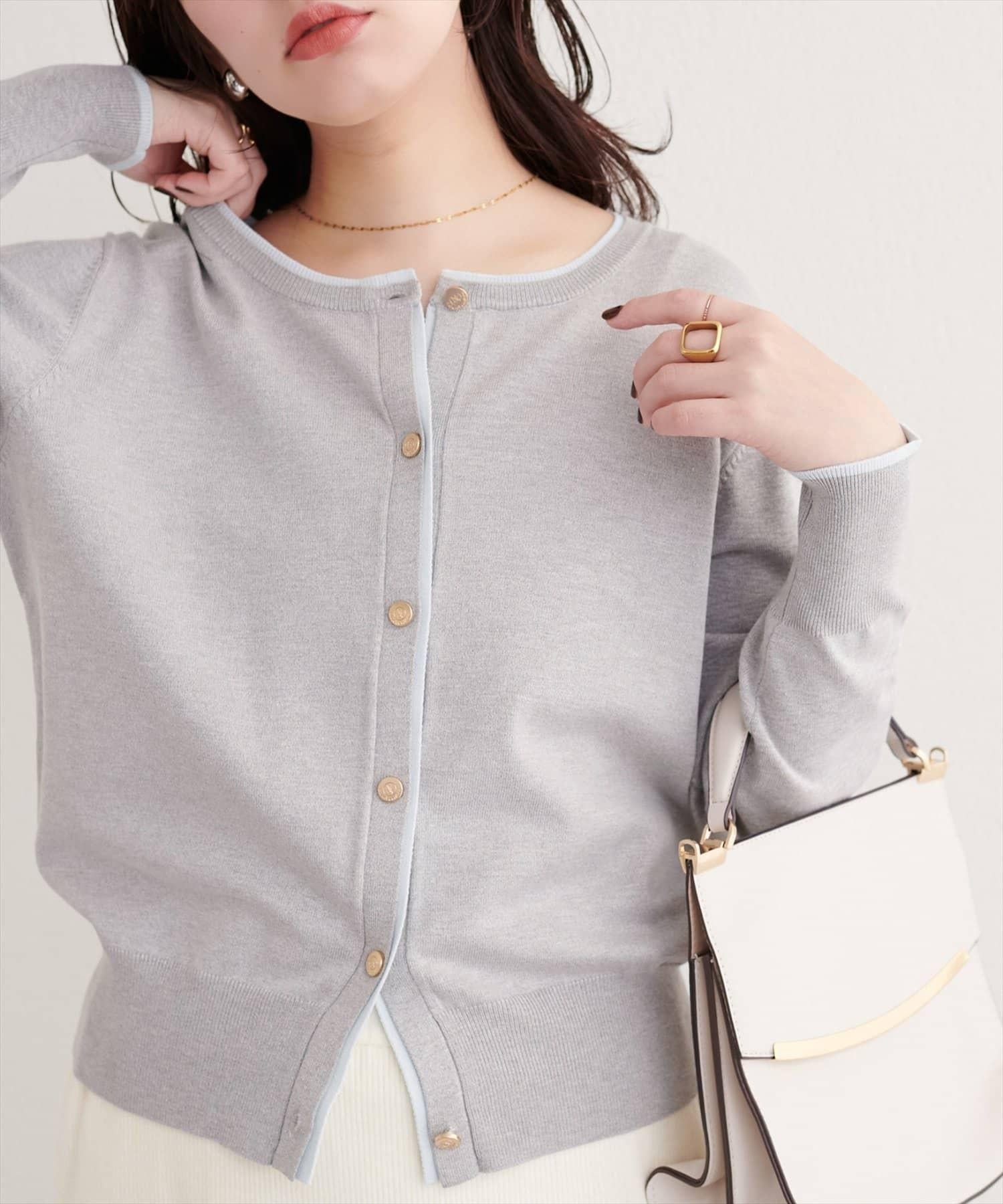 金色紐扣閃耀著優雅的光澤,為整件開衫增添了一絲魅力,使其宛如配飾。